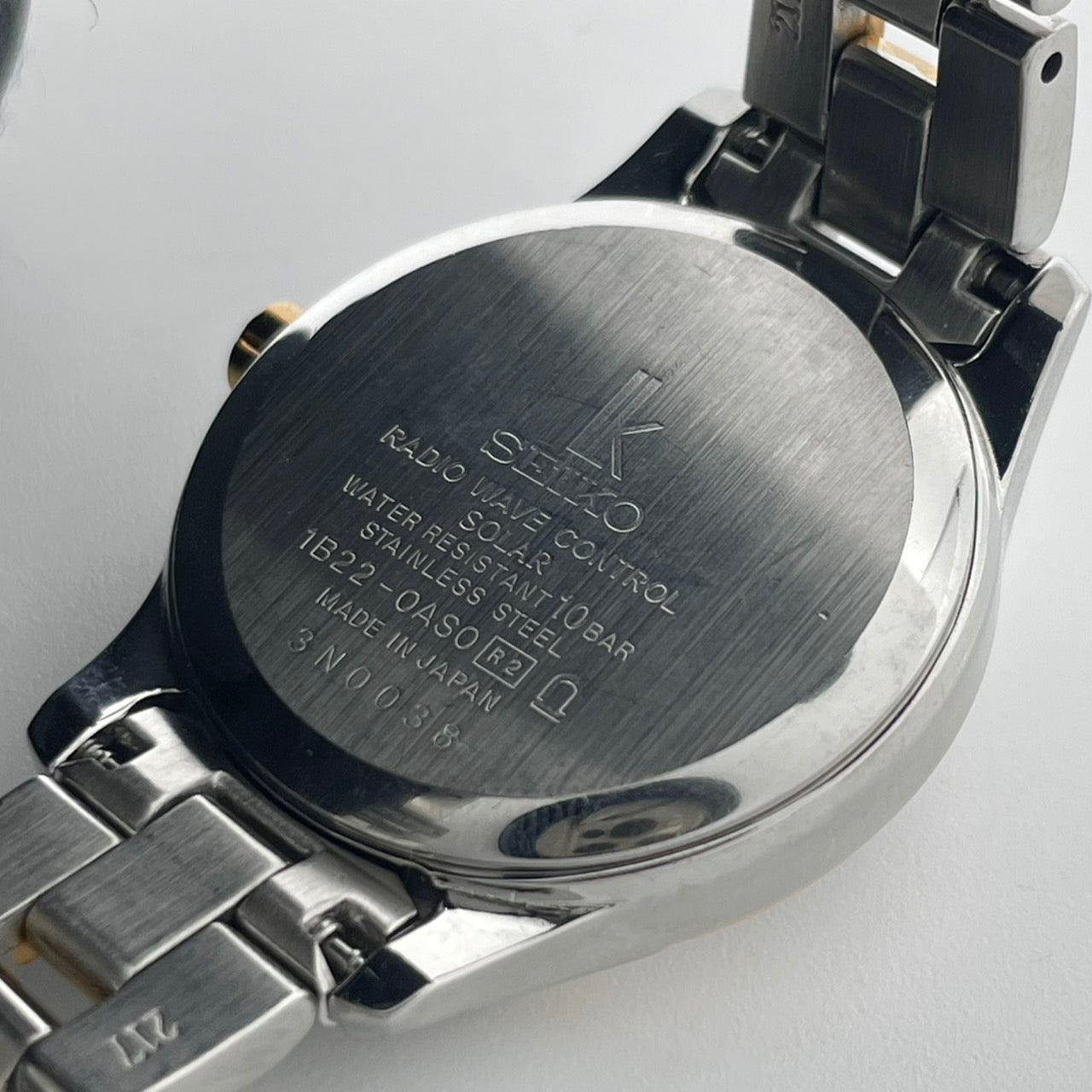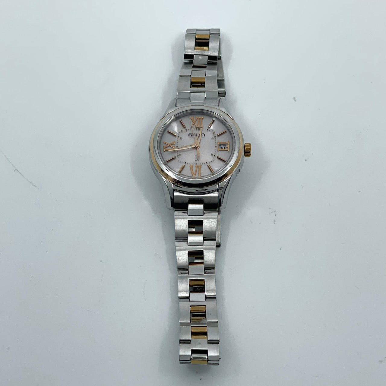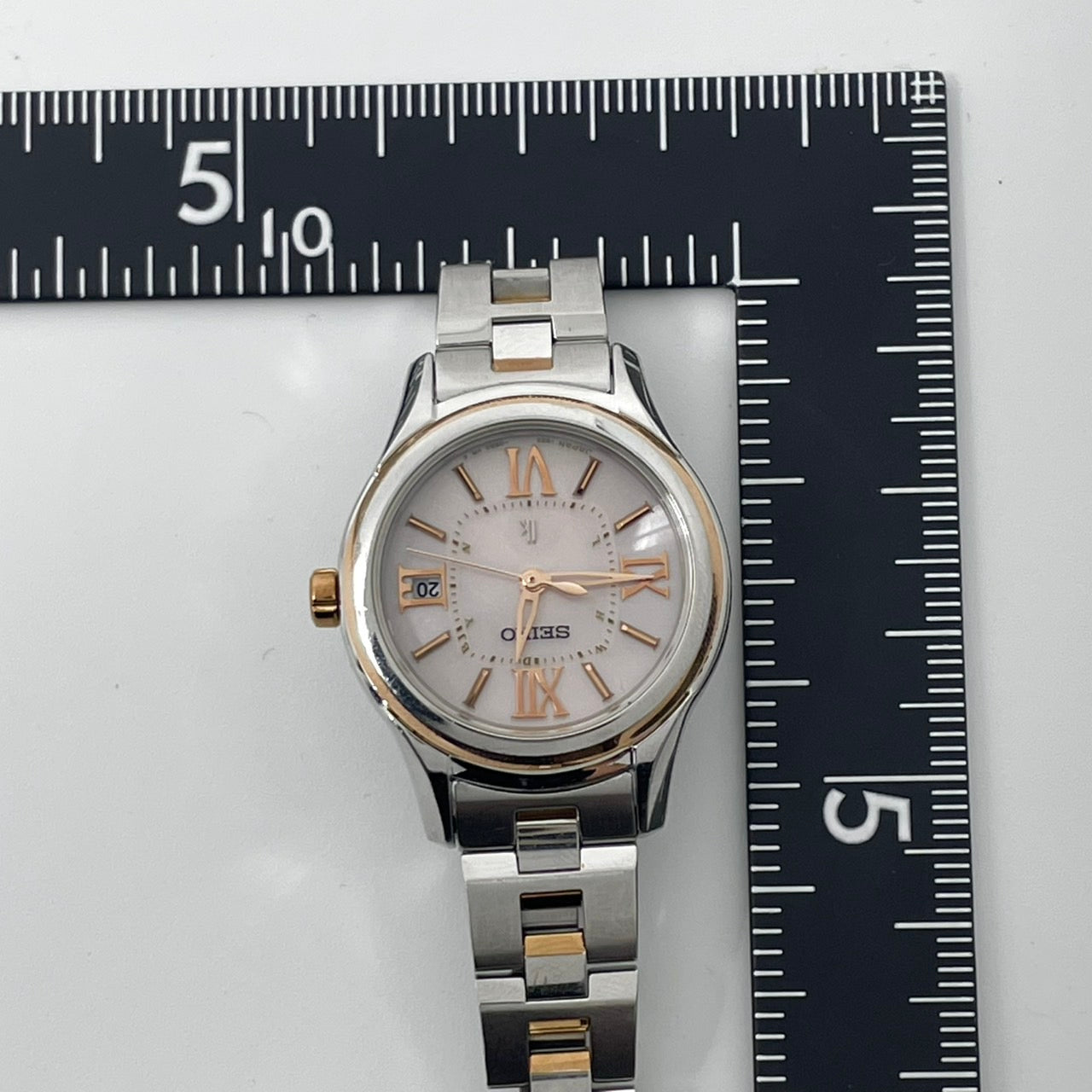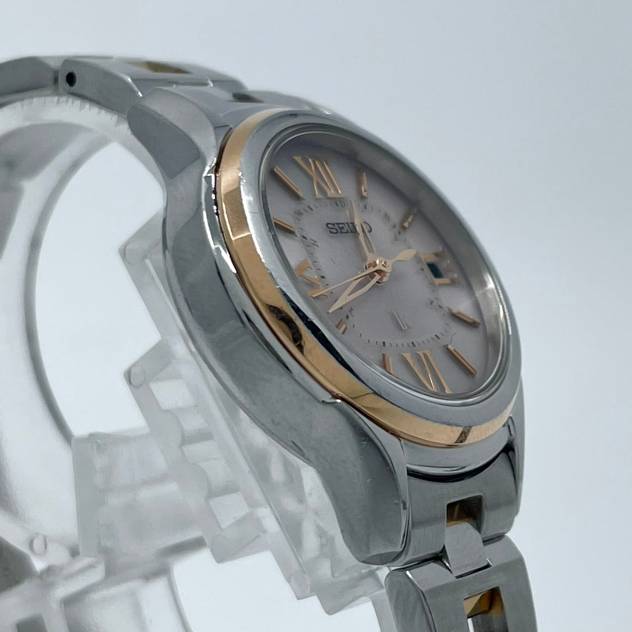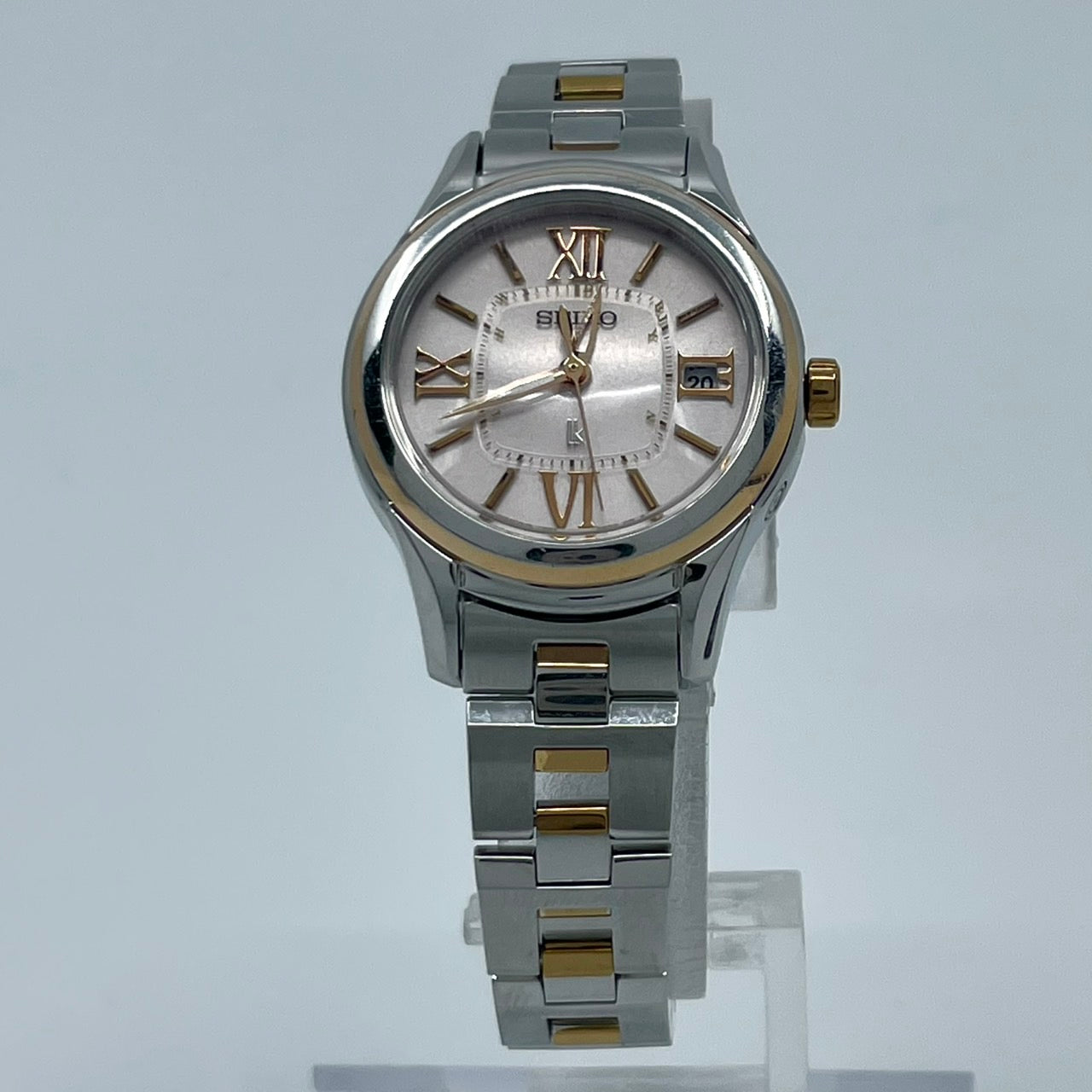 【稼働品/美品】セイコー ルキア 人気モデル 腕時計 1B22-0AS0 電波ソーラー レディース デイト ピンクゴールド コンビカラー ローマ数字 上品 エレガント ビジネス オフィス 高機能 洗練デザイン 手元華やか クリーニング済 G5