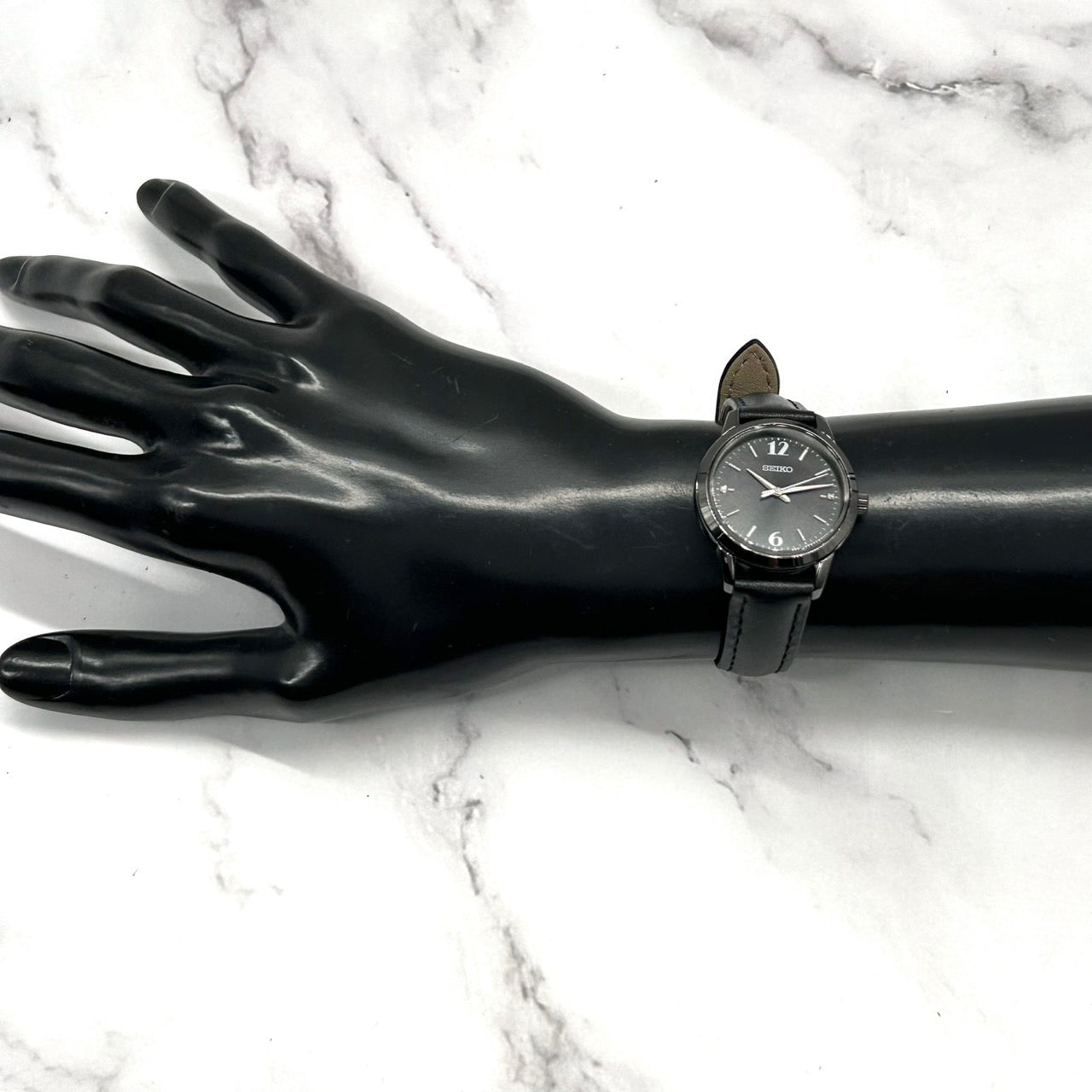 【新品ベルト(社外品)/稼働品/美品】SEIKO セイコー レディース 腕時計 ソーラー V131-0AF0 限定モデル ブラック 黒文字盤 ラウンド アナログ シンプル エレガント クラシック ドレスウォッチ ビジネス 10気圧防水 クリーニング済 G6