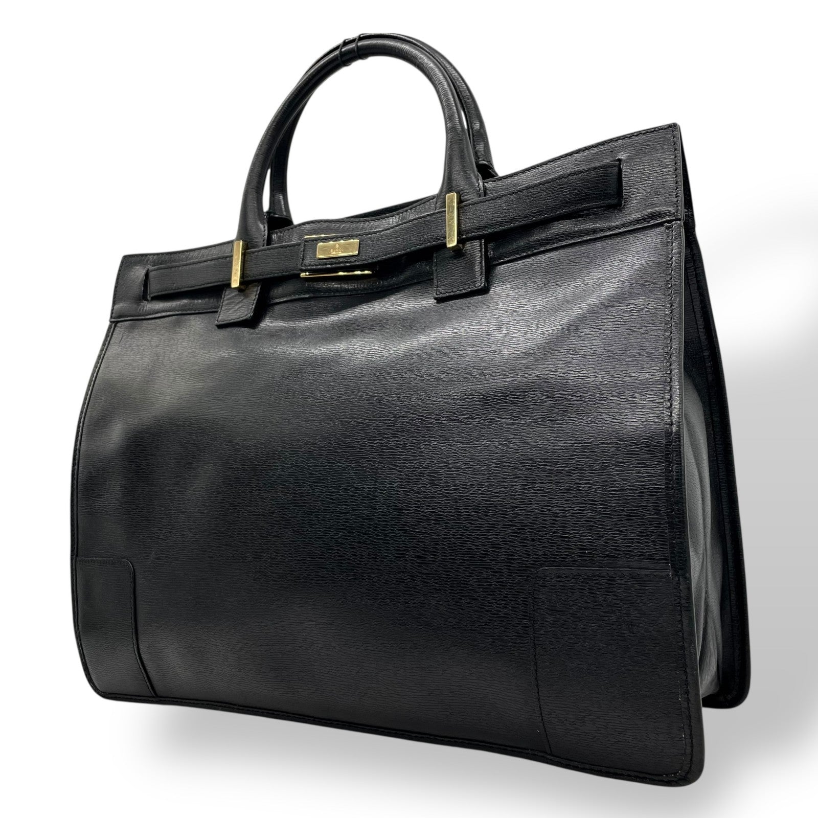 美品 GUCCI グッチ レザー ビジネスバッグ ブラック ゴールド金具 A4収納可 ハンドバッグ メンズ レディース 正規品 D