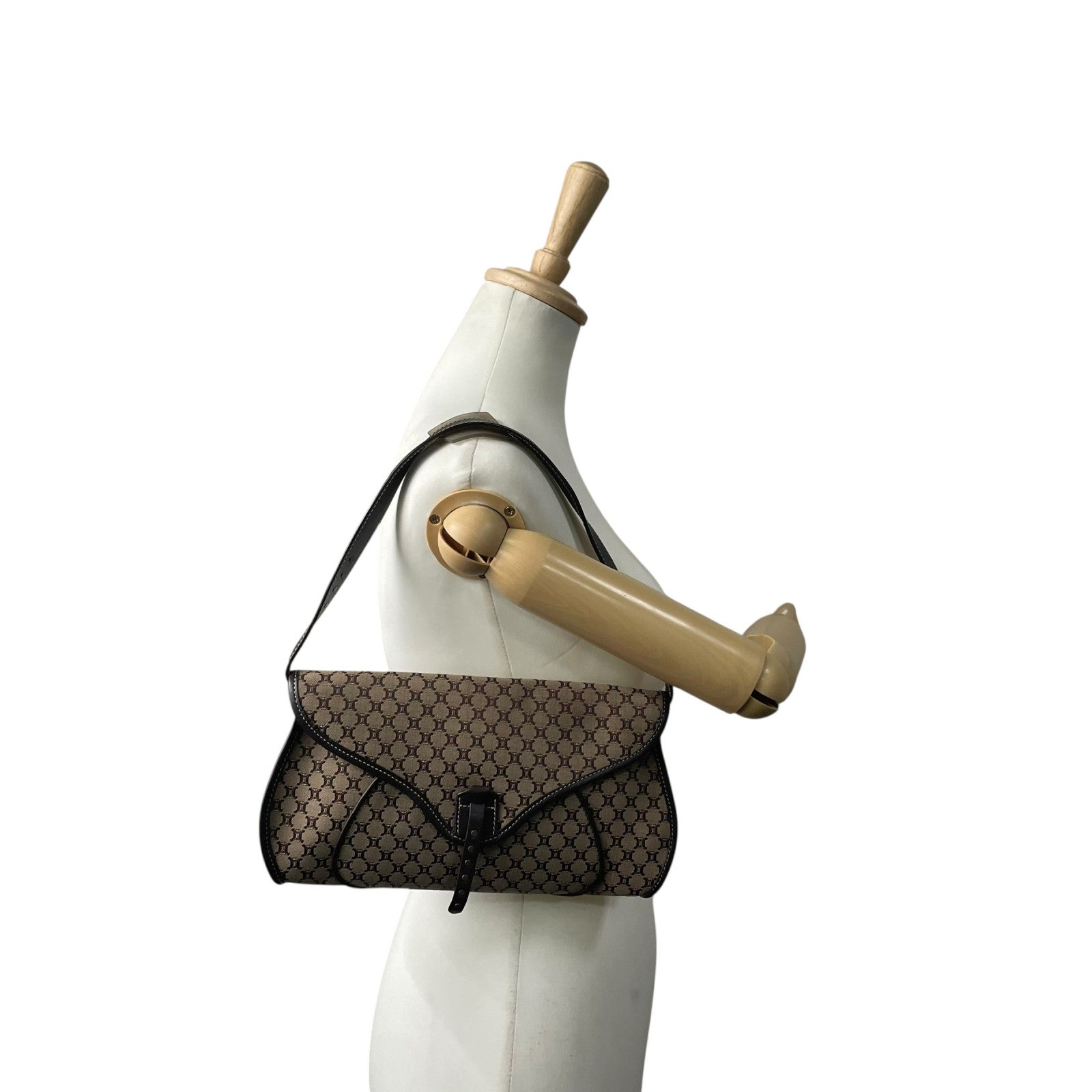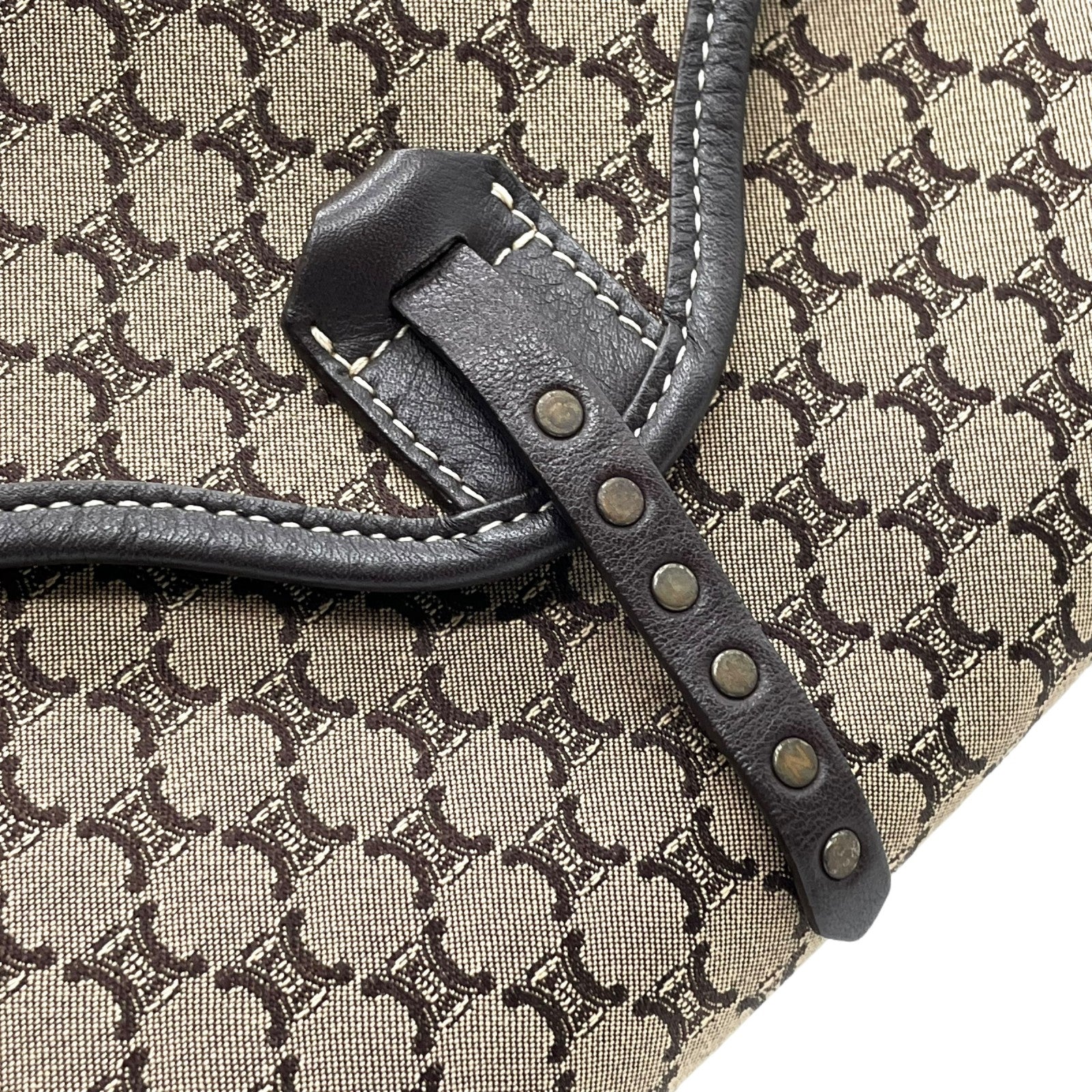 美品 CELINE セリーヌ マカダム トリオンフ ショルダーバッグ キャンバス×レザー ベージュ×ブラウン レディース ヴィンテージ 正規品 K9