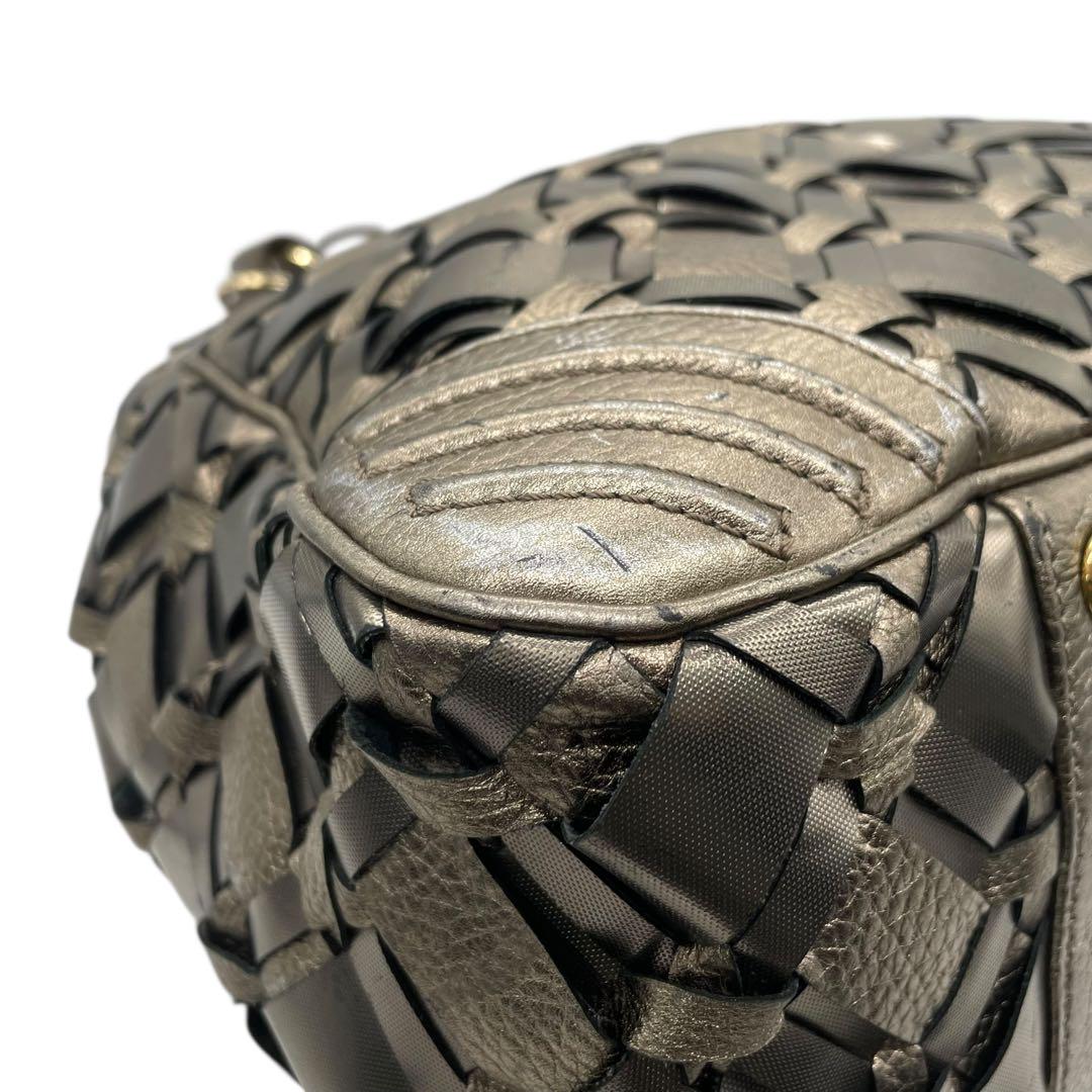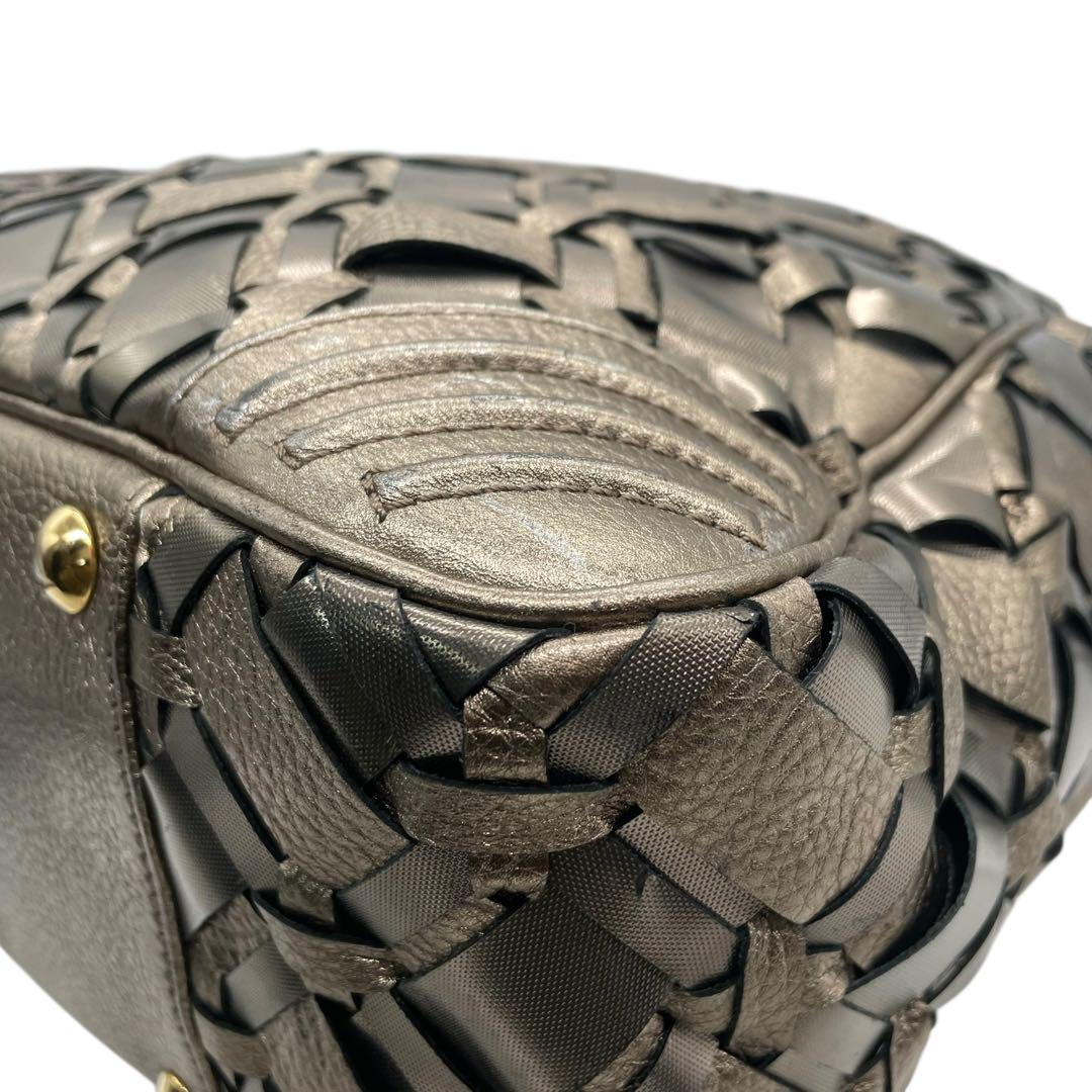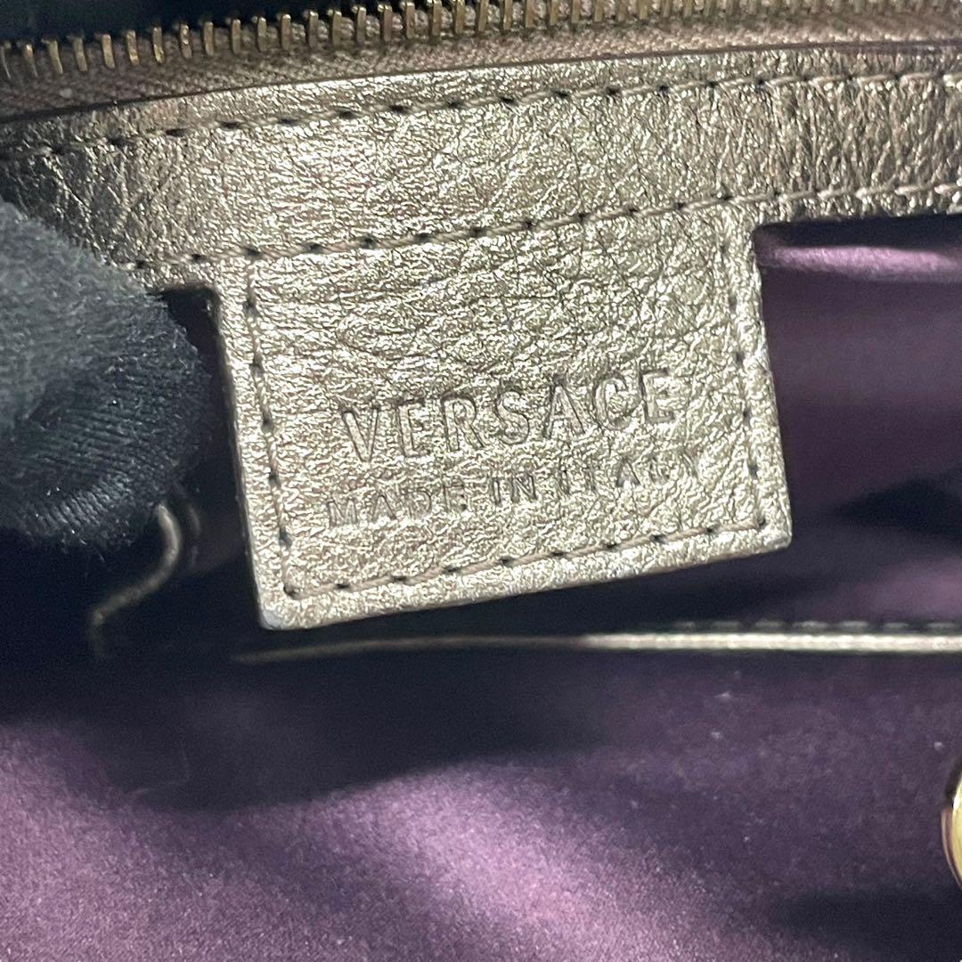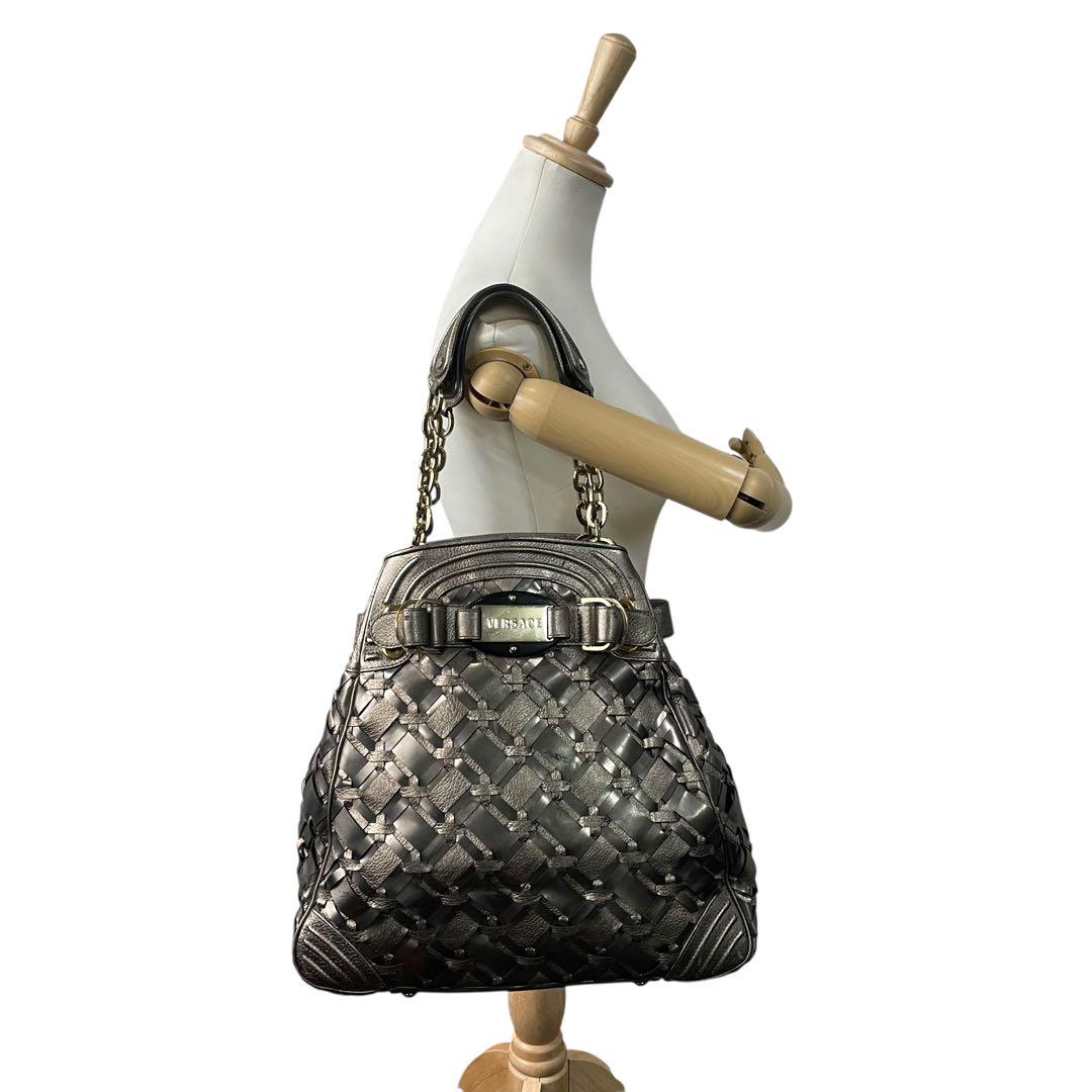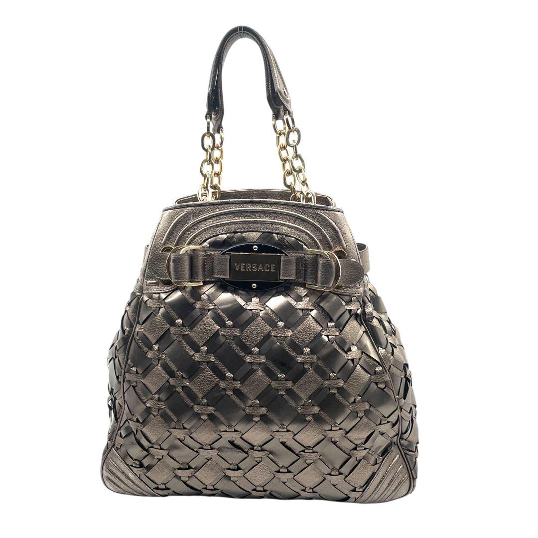 ヴェルサーチ トートバッグ グレー シルバー ブロンズ グラデーションカラー 編み込み レザー T5 肩掛け ワンショルダーバッグ ハンドバッグ ゴールド金具 ロゴ刻印 VERSACE