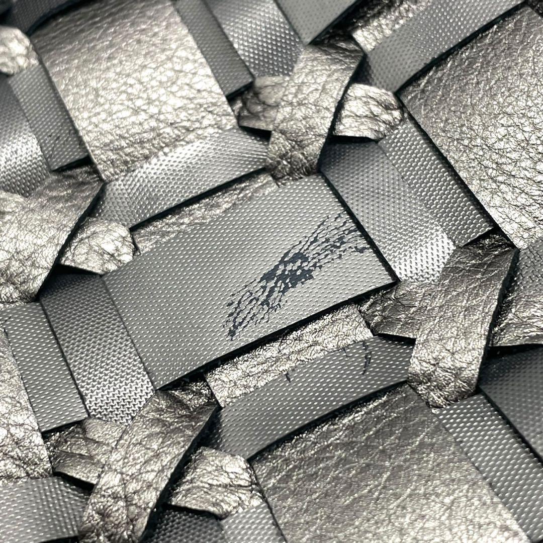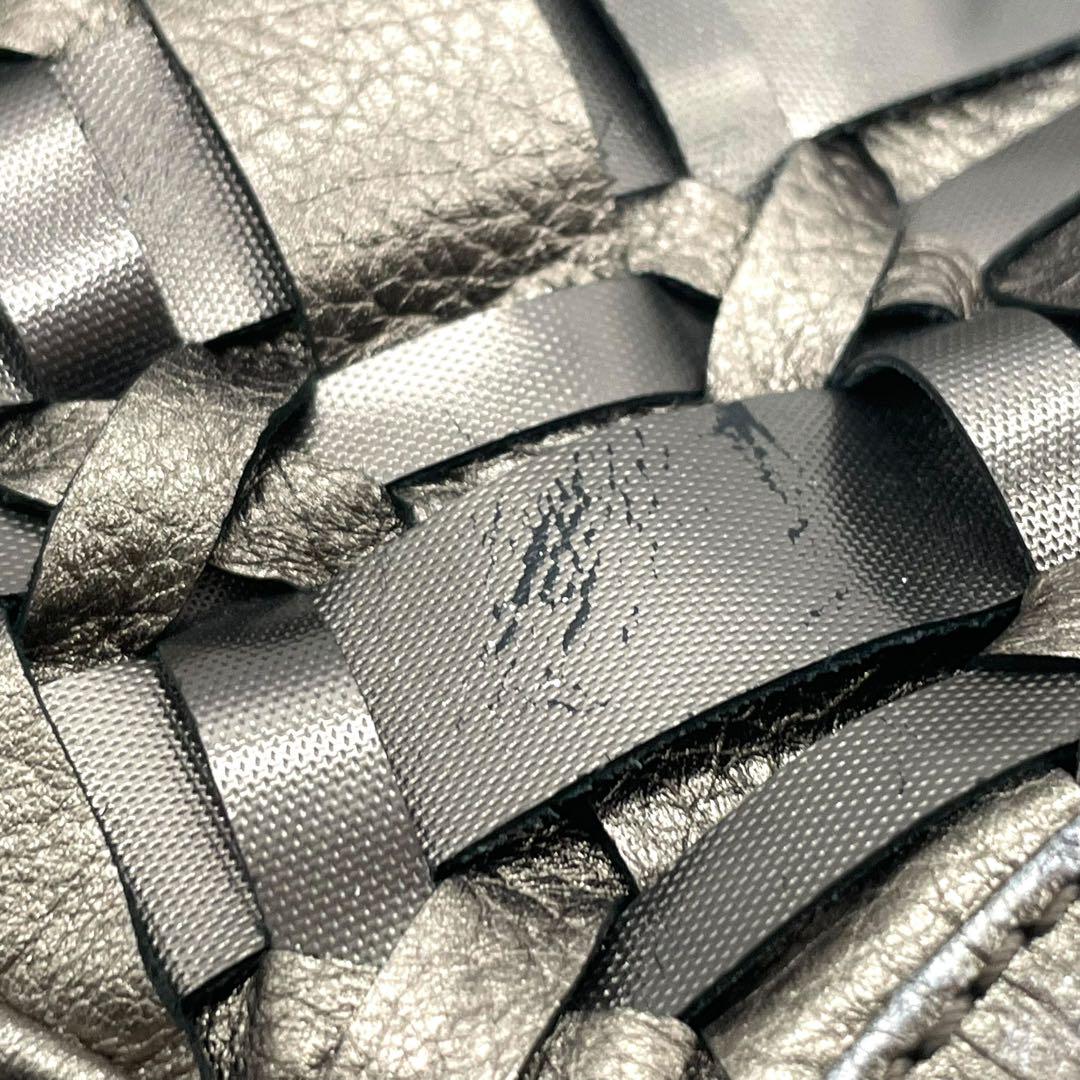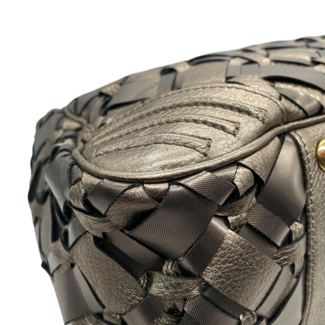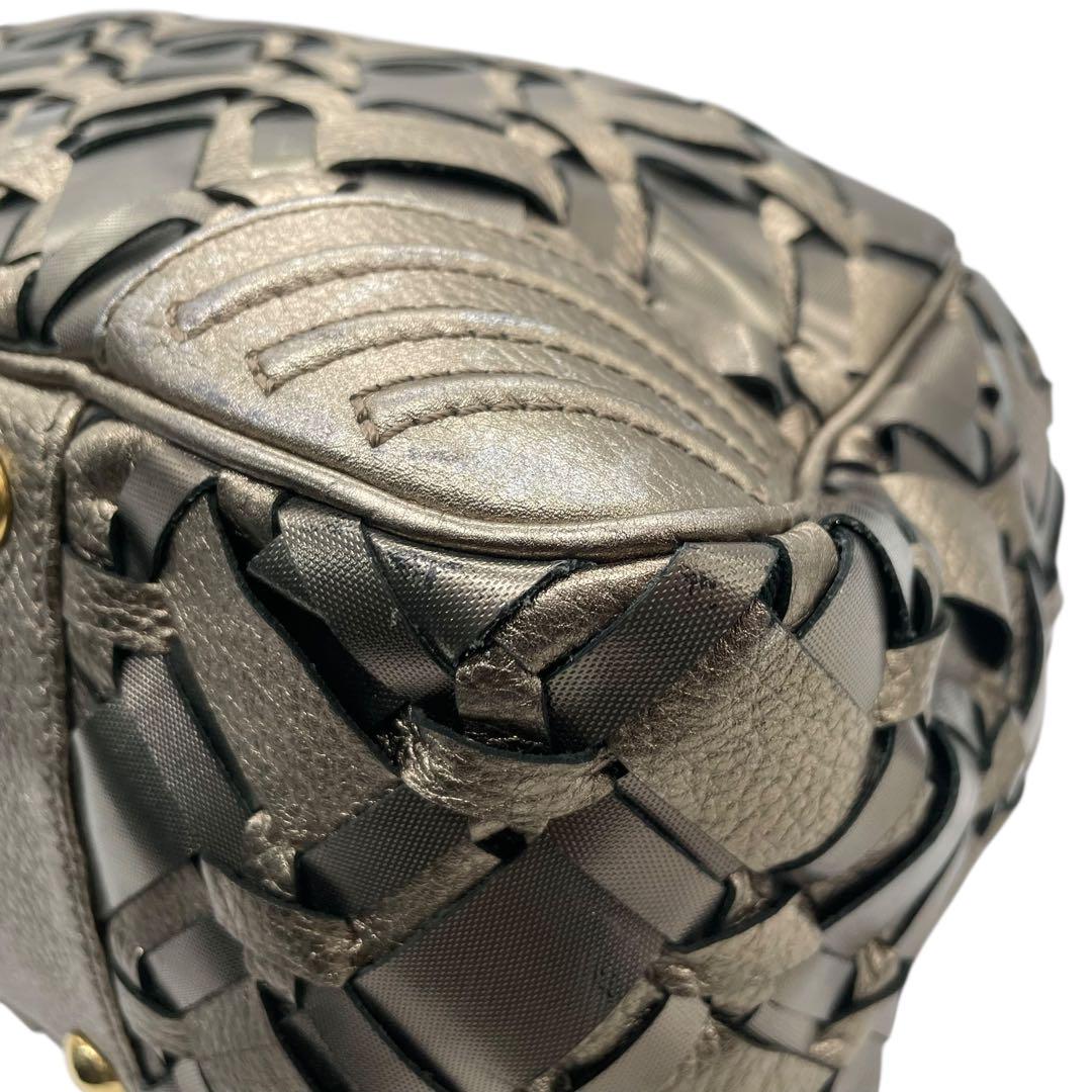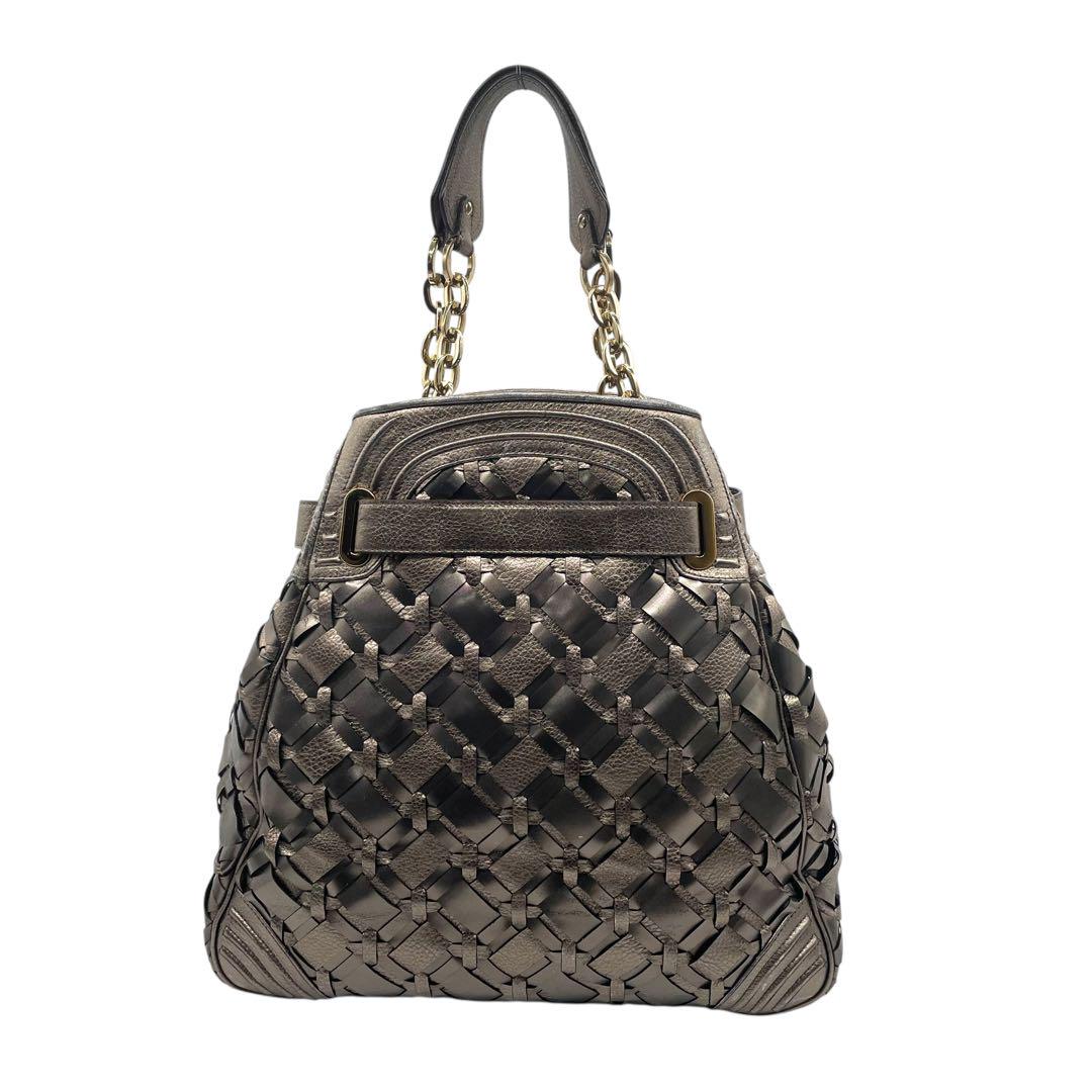 ヴェルサーチ トートバッグ グレー シルバー ブロンズ グラデーションカラー 編み込み レザー T5 肩掛け ワンショルダーバッグ ハンドバッグ ゴールド金具 ロゴ刻印 VERSACE
