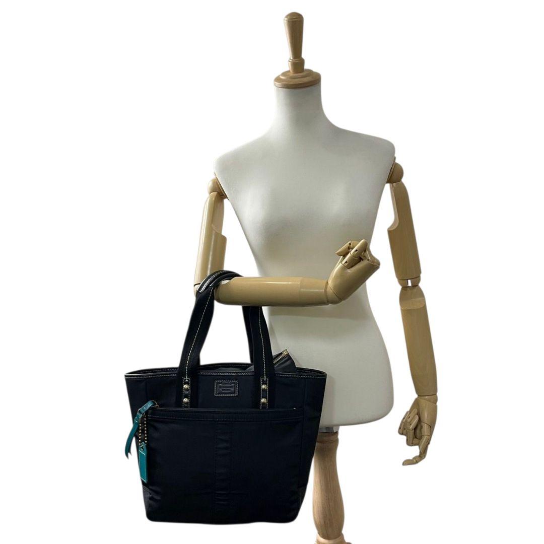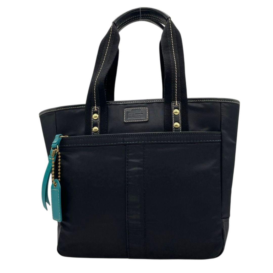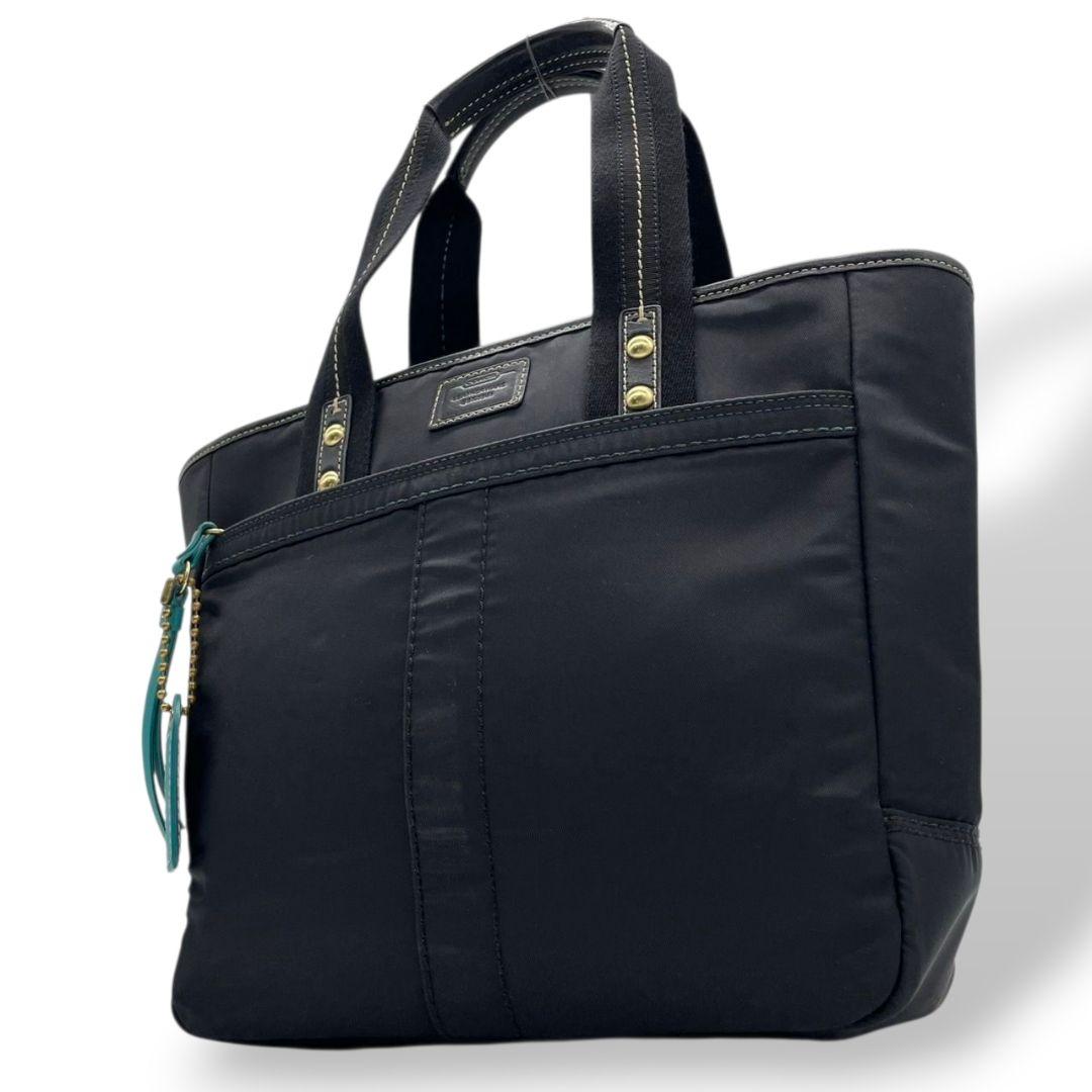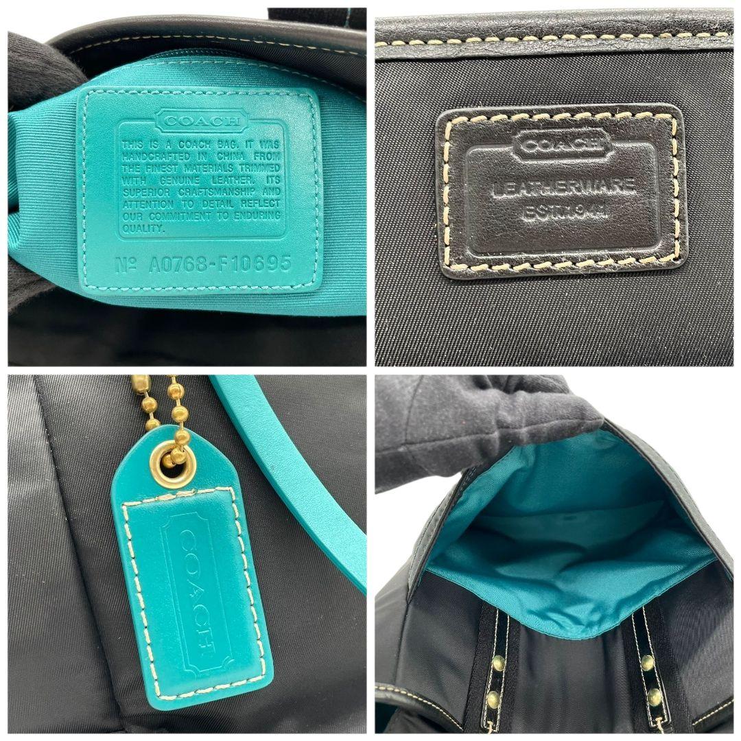 コーチ トートバッグ 黒 ナイロン ワンショルダー A4収納 u13 ハンドバッグ ロゴプレート レザー 本革 ブラック 自立可 肩掛け可 肩かけ可 ゴールド金具 チャーム付き COACH F10695