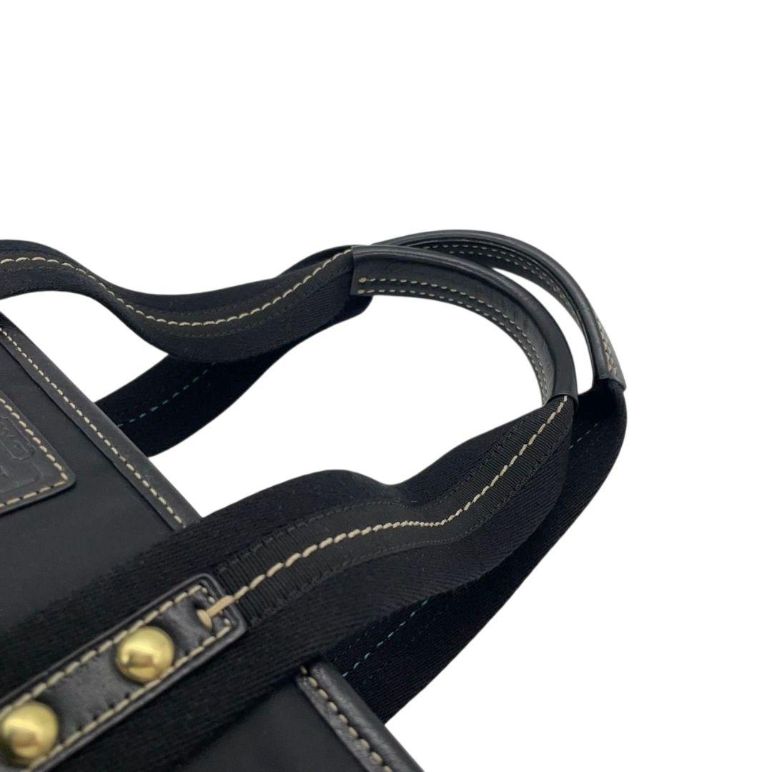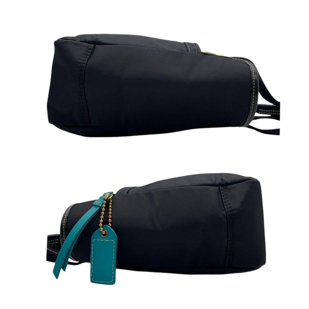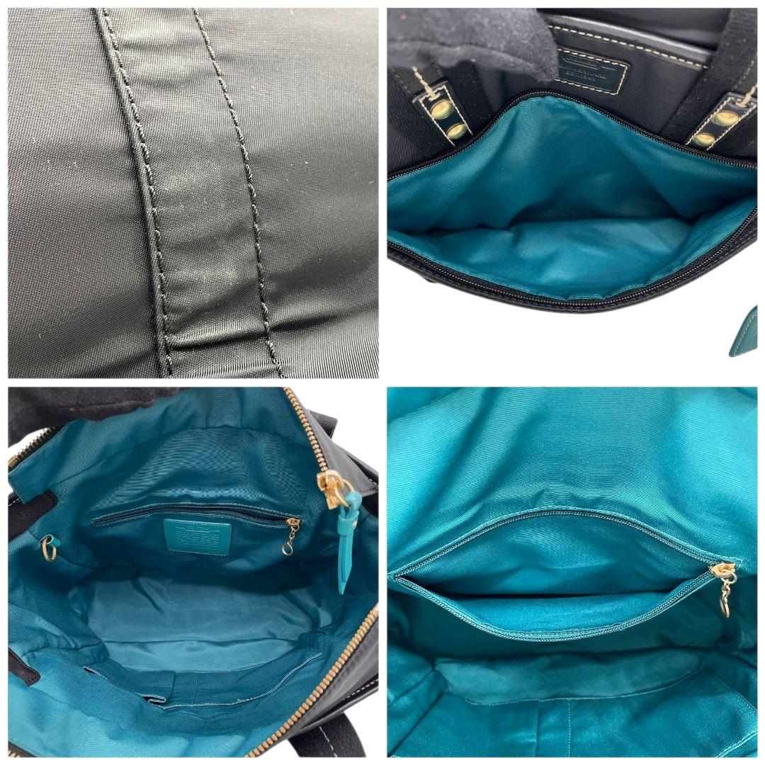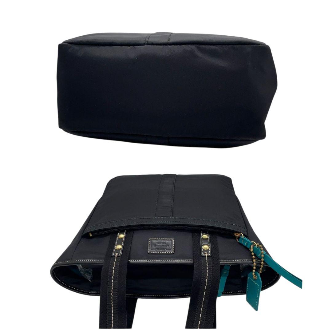 コーチ トートバッグ 黒 ナイロン ワンショルダー A4収納 u13 ハンドバッグ ロゴプレート レザー 本革 ブラック 自立可 肩掛け可 肩かけ可 ゴールド金具 チャーム付き COACH F10695