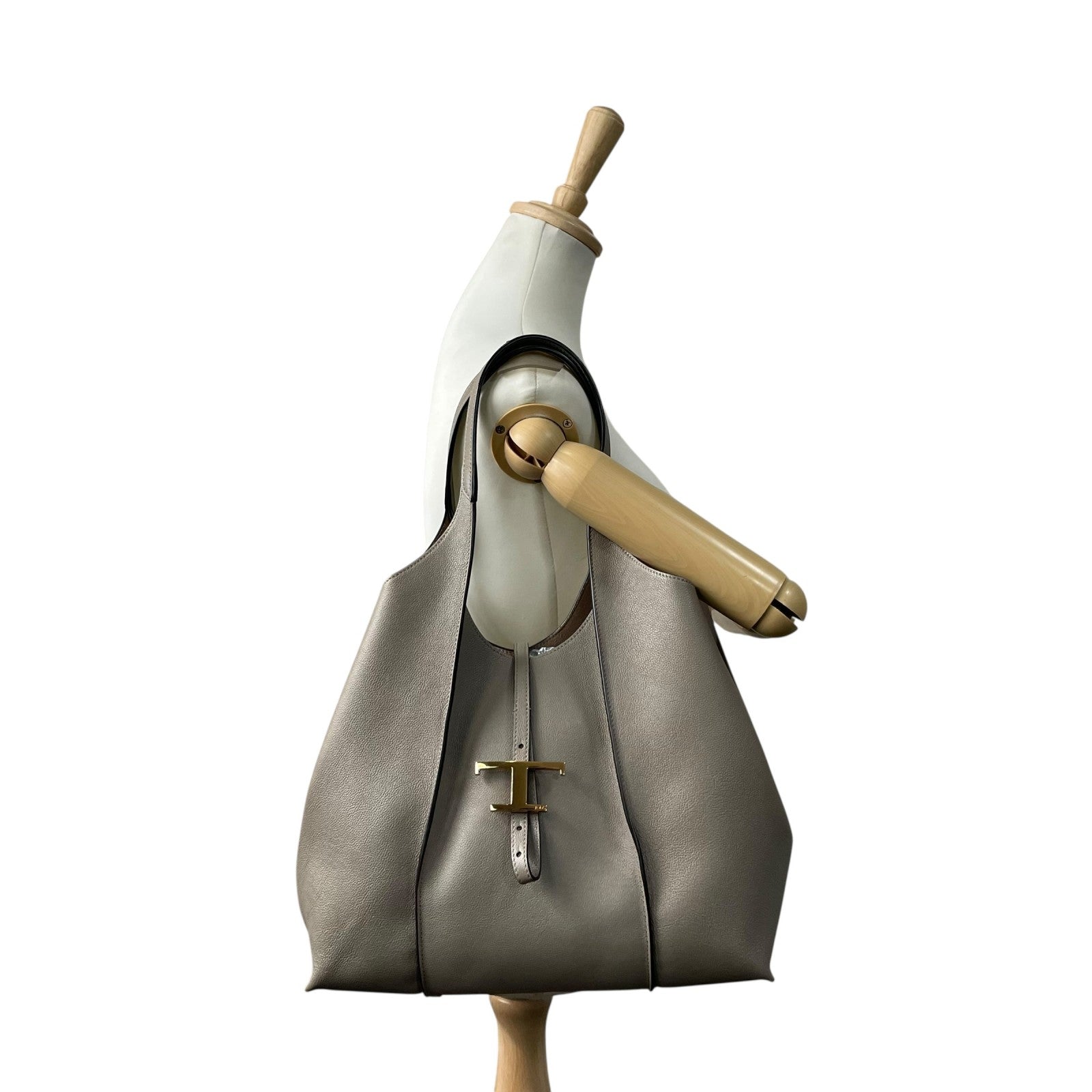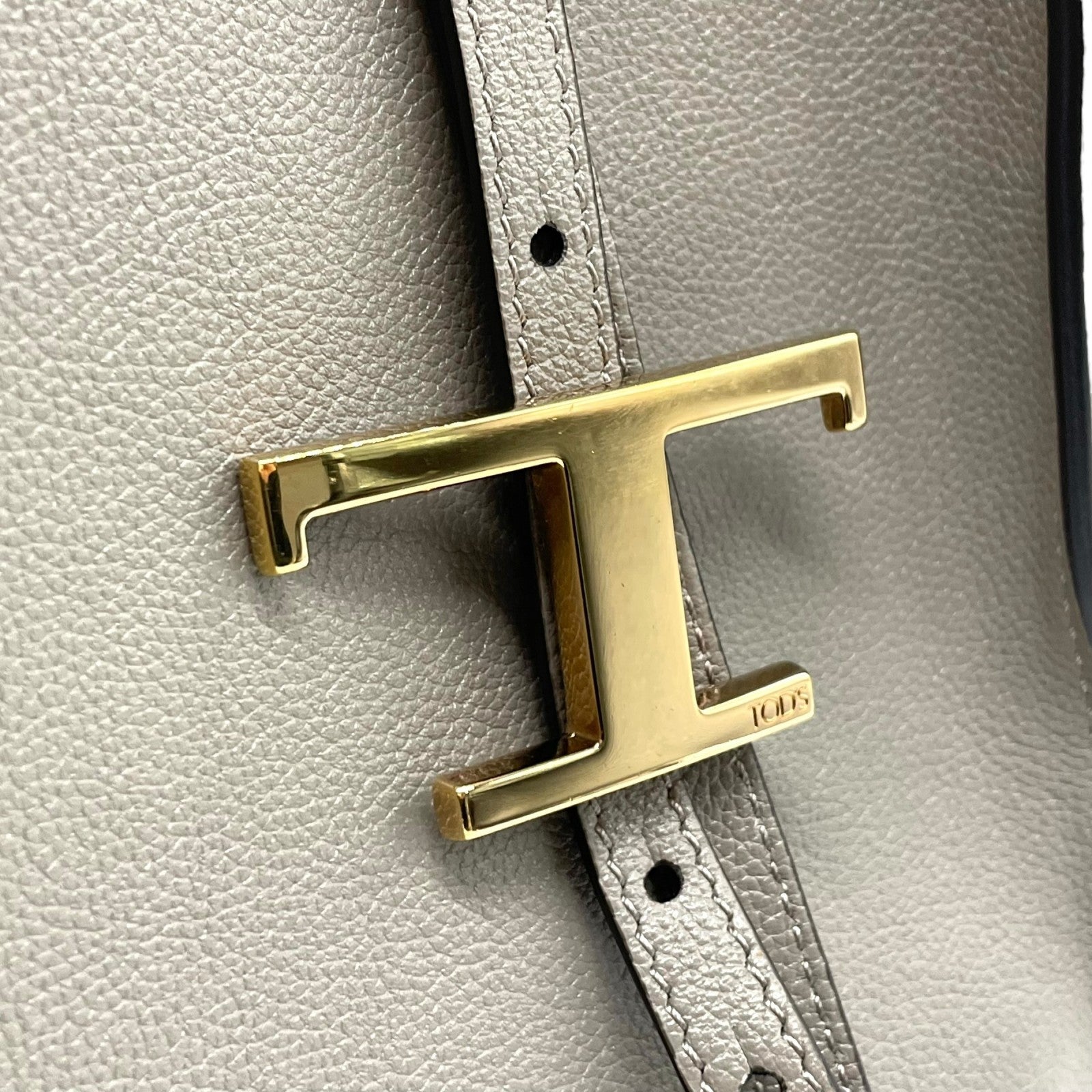 極美品 TOD'S トッズ T タイムレス レザー トートバッグ グレージュ ゴールド金具 ポーチ付き 大容量 肩掛け可 レディース 正規品 D