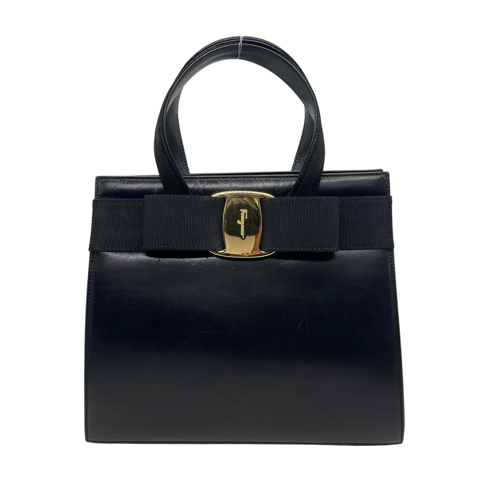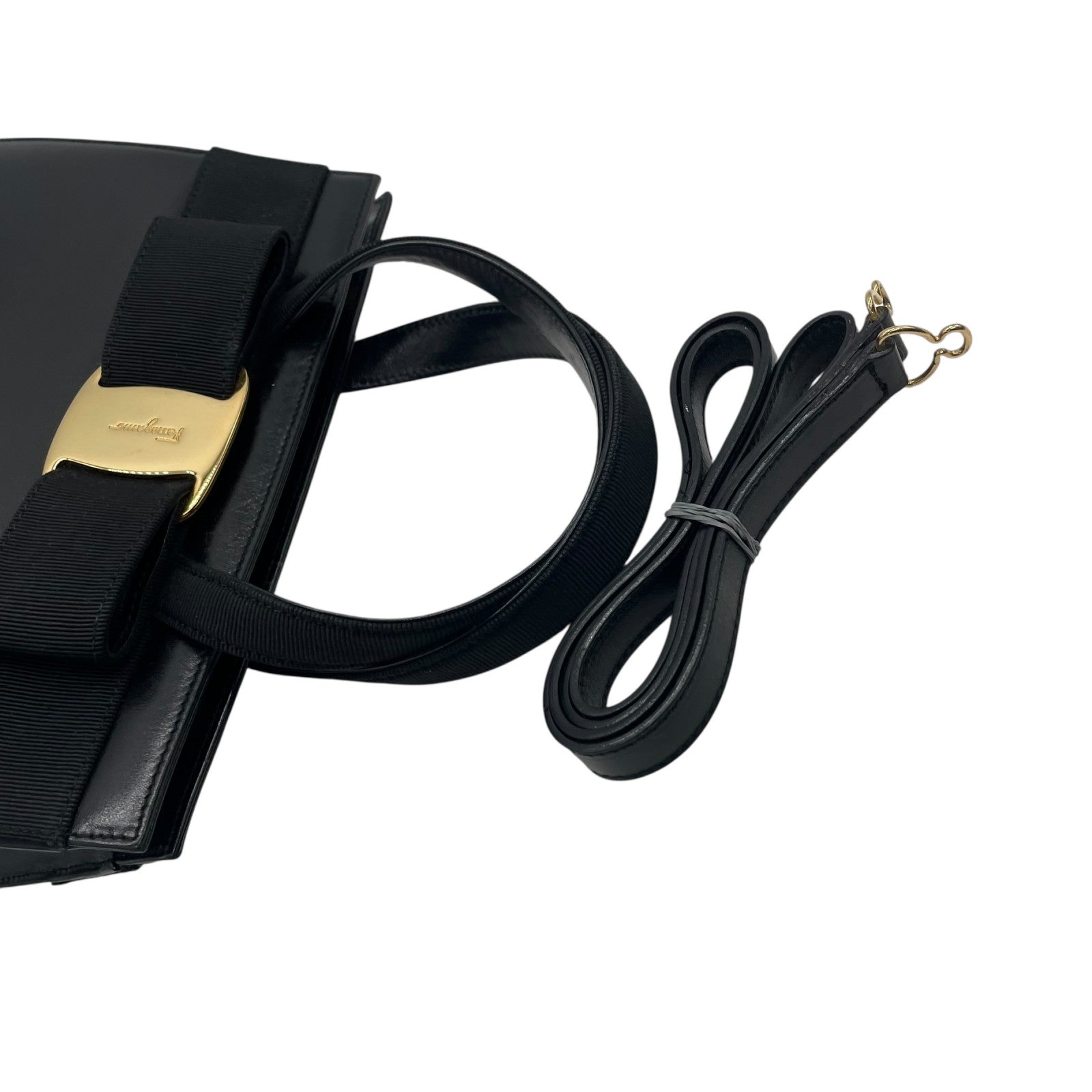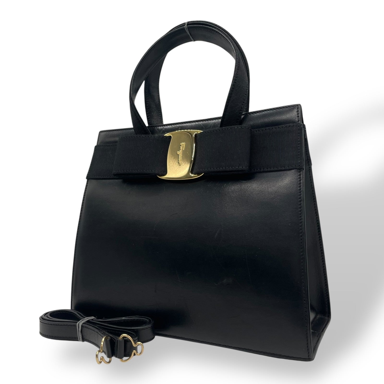 サルヴァトーレ フェラガモ ハンドバッグ フォーマルバッグ ヴァラリボン 2WAY 黒 ショルダーバッグ 斜め掛け ゴールド金具 自立 ブラック レザー ヴィンテージ C