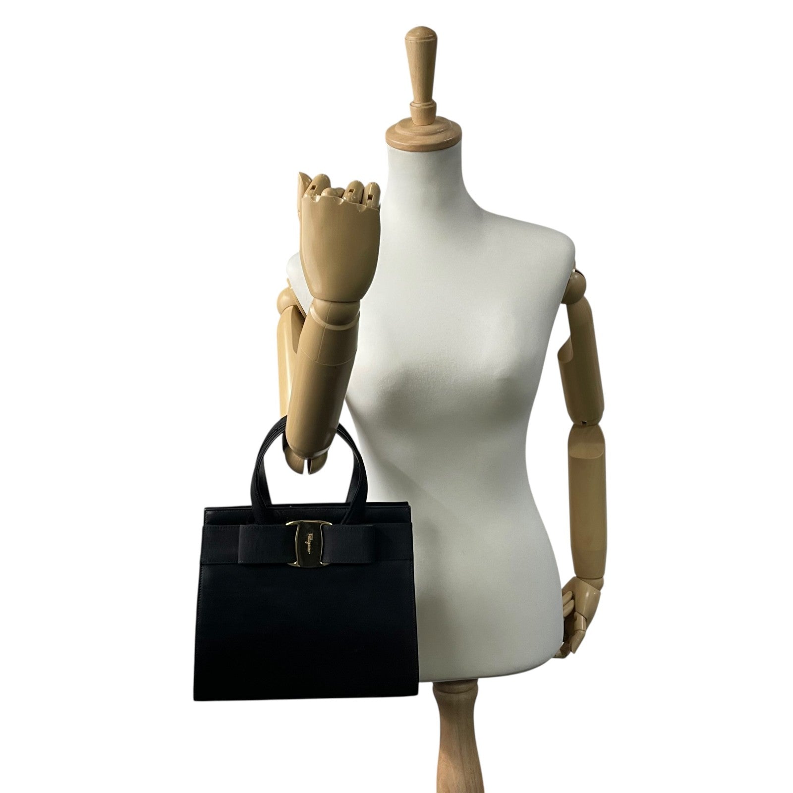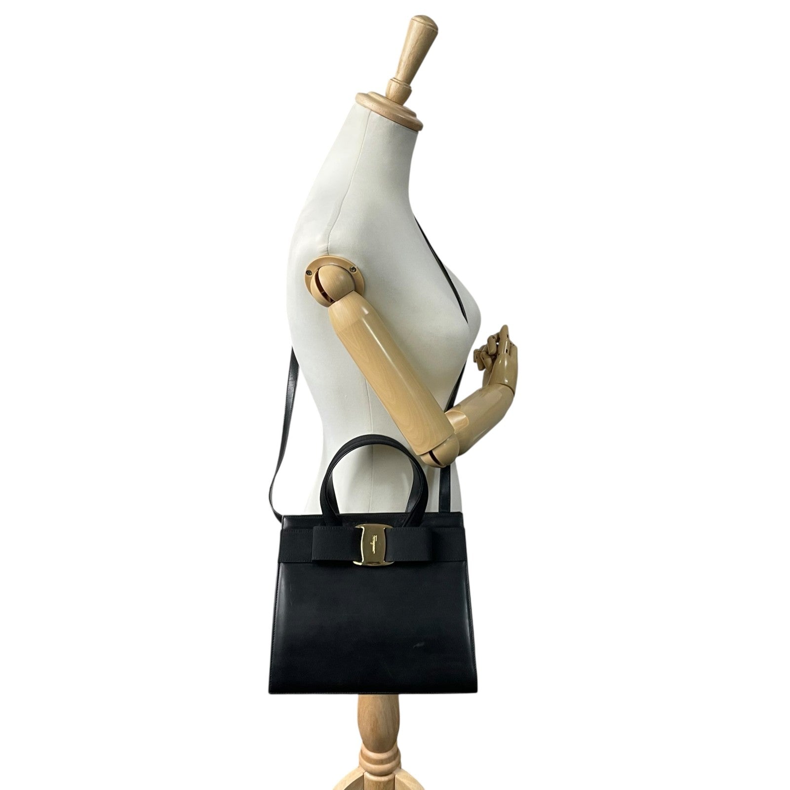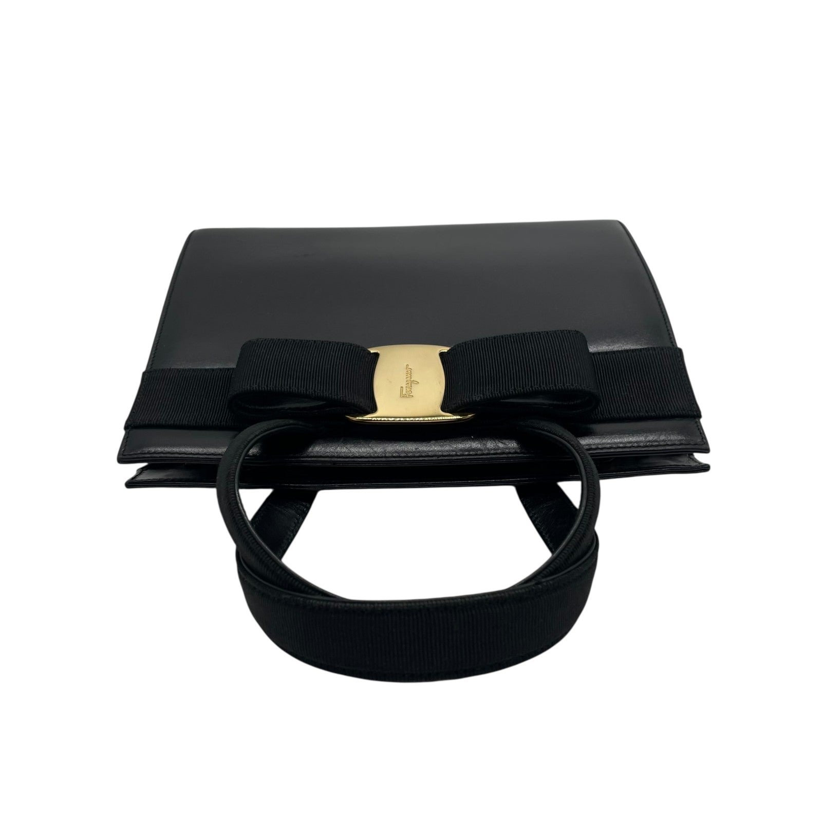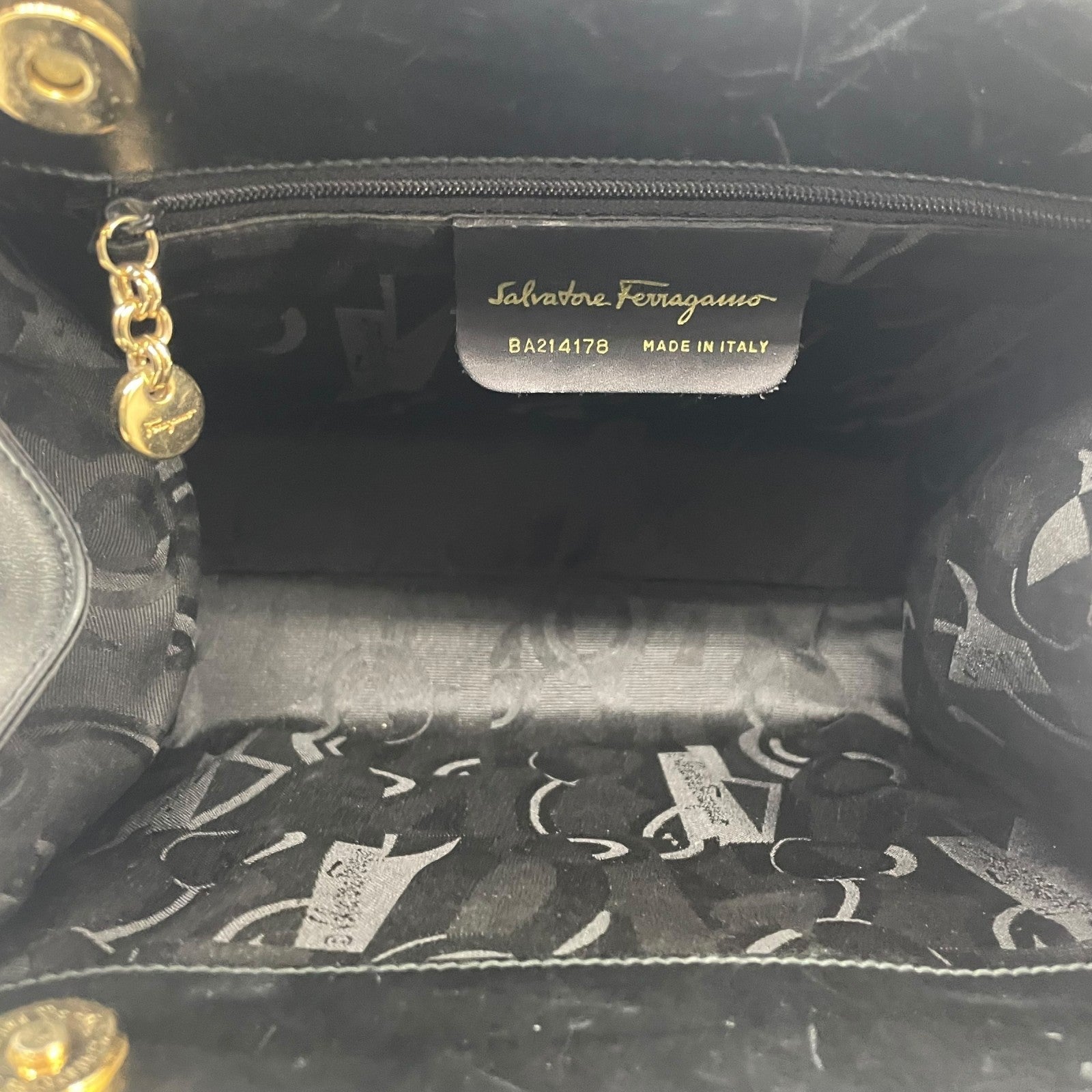 サルヴァトーレ フェラガモ ハンドバッグ フォーマルバッグ ヴァラリボン 2WAY 黒 ショルダーバッグ 斜め掛け ゴールド金具 自立 ブラック レザー ヴィンテージ C