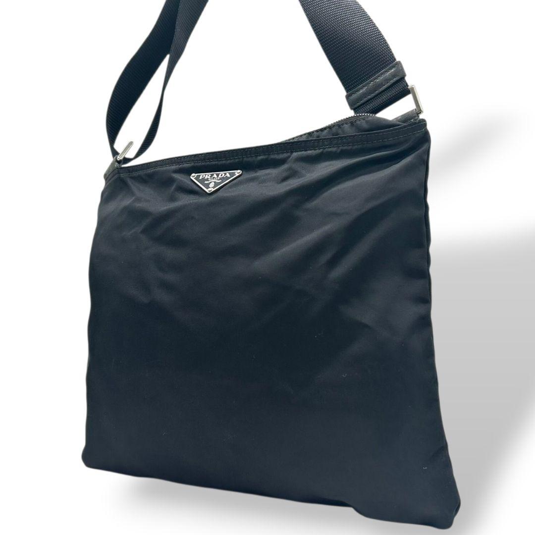 PRADA プラダ ショルダーバッグ ナイロン 黒 ブラック 三角ロゴプレート 斜め掛け可 シルバー金具 メンズ レディース ユニセックス