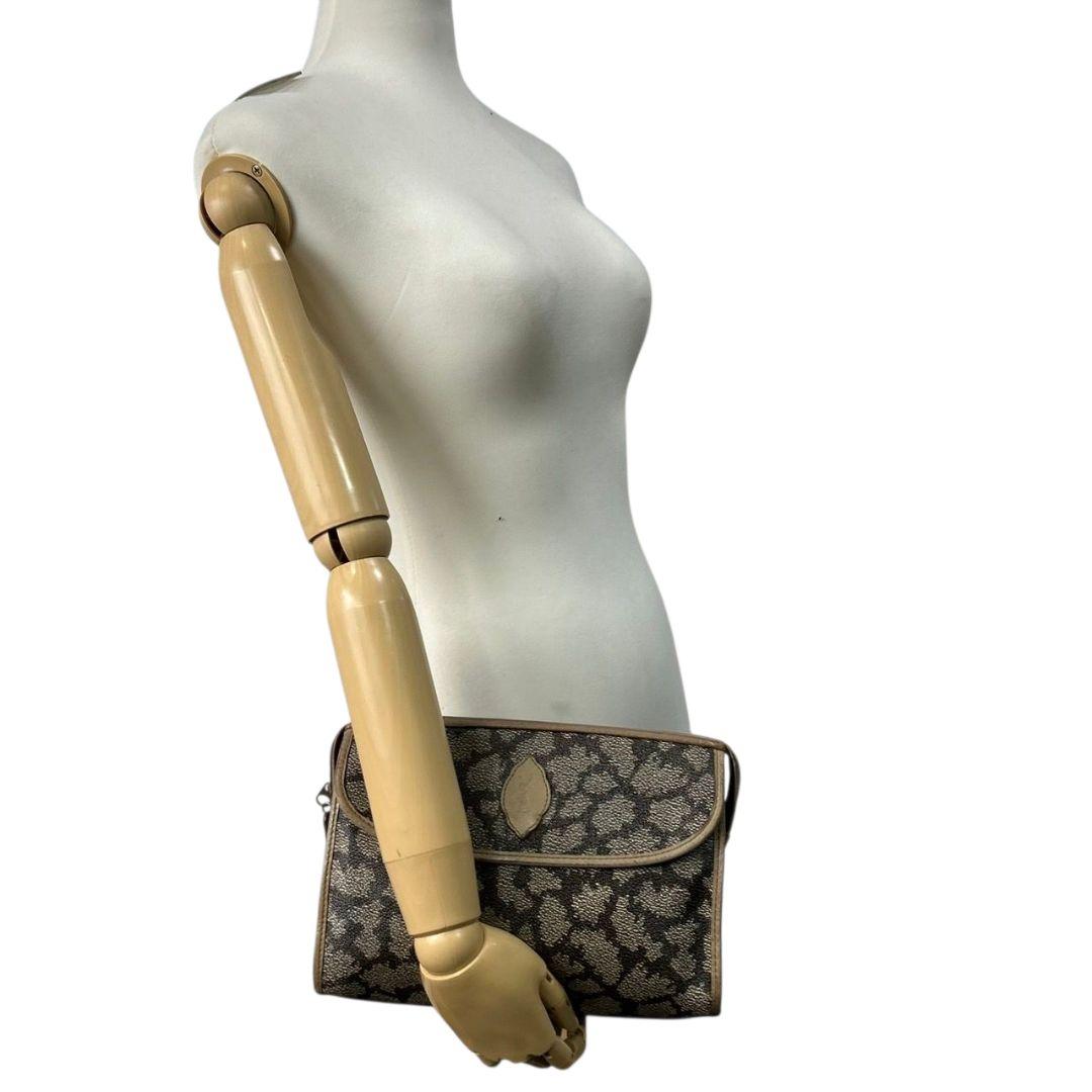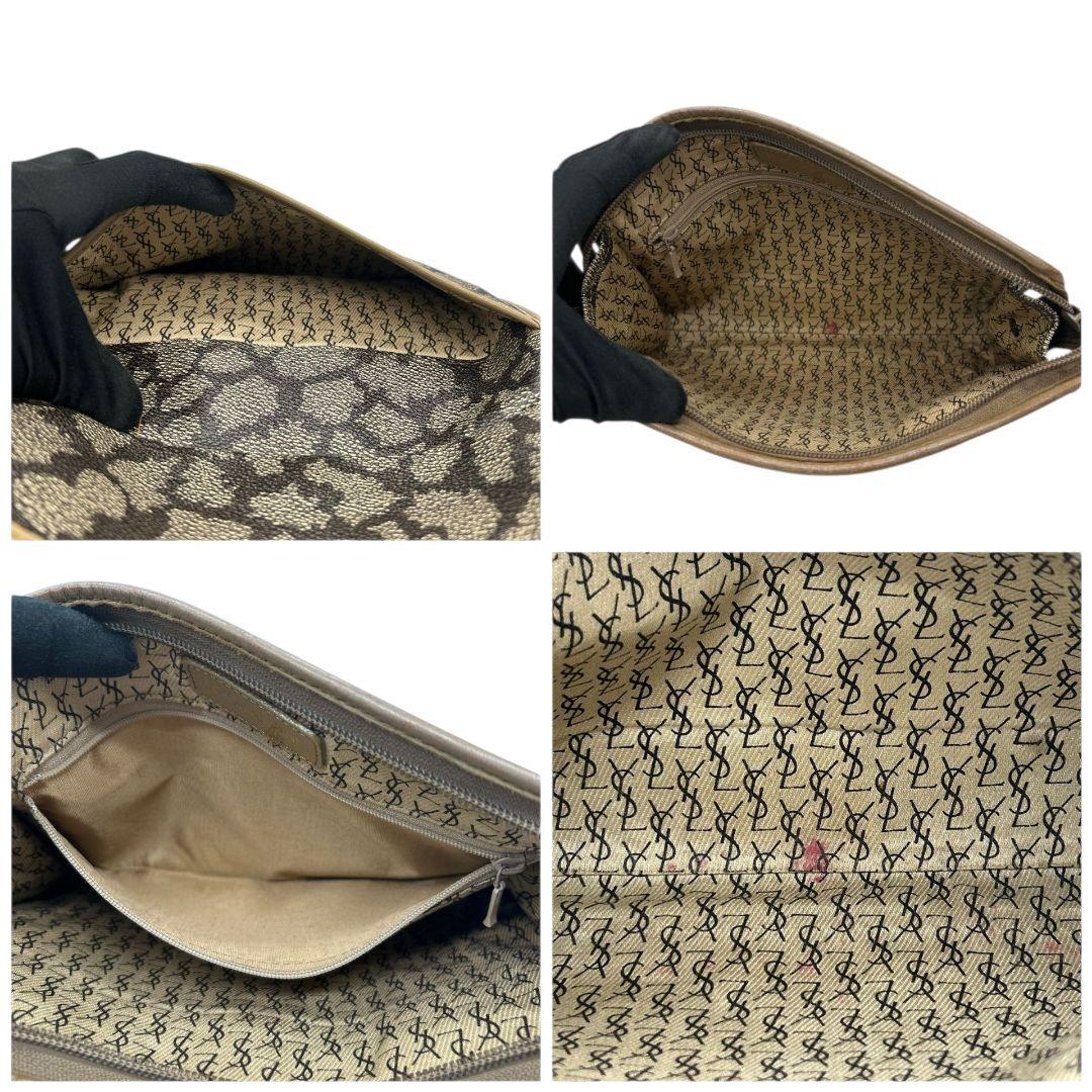 イヴサンローラン ポーチ 茶 総柄 YSLロゴ セカンドバッグ PVC s48 クラッチバッグ YVES SAINT LAURENT レザー 本革 ゴールド金具 ロゴプレート ブラウン ベージュ ヴィンテージ