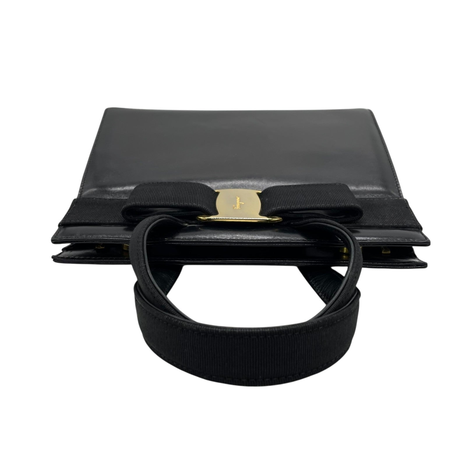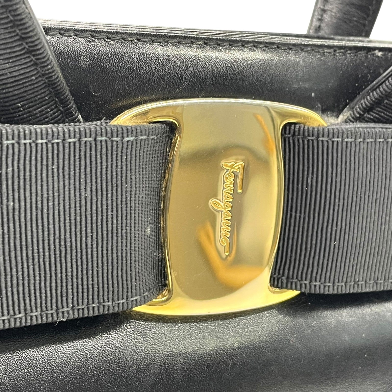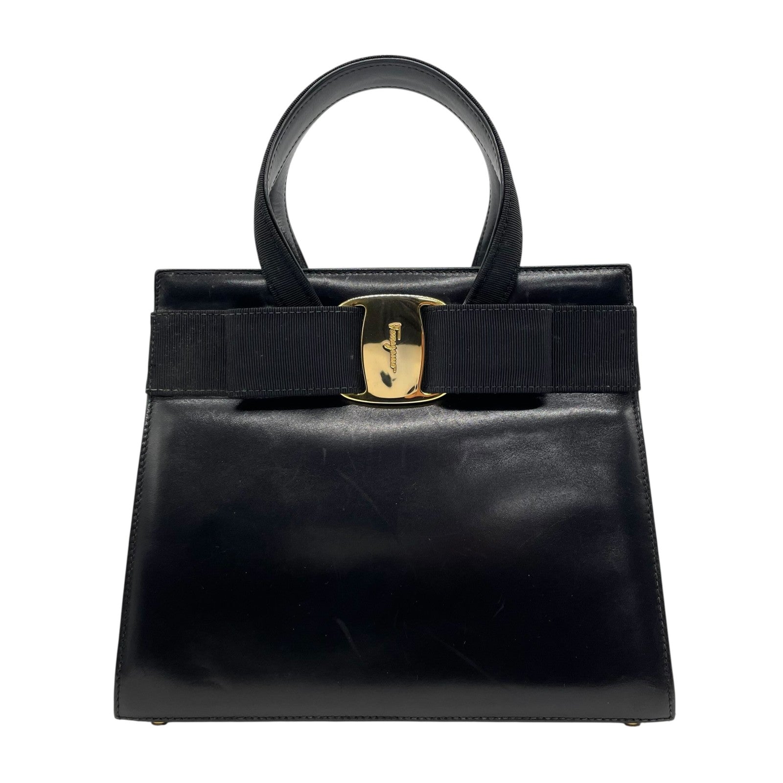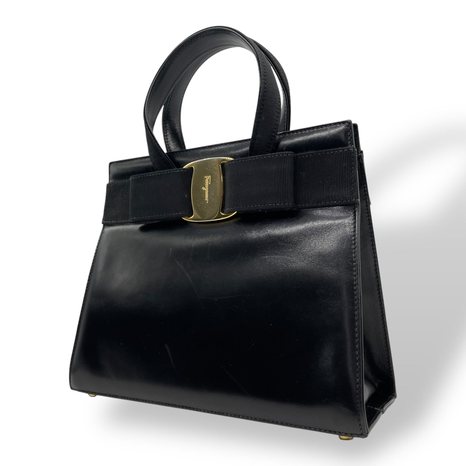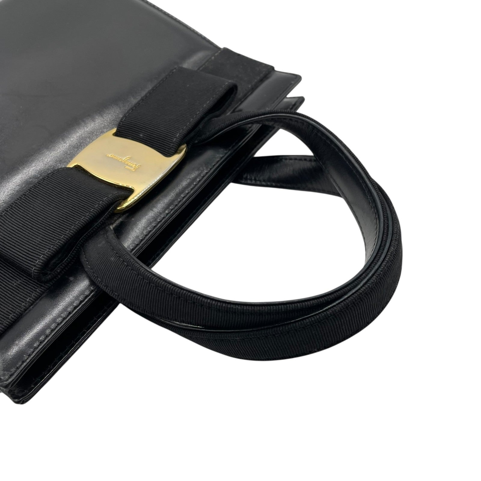 美品 サルヴァトーレ フェラガモ ハンドバッグ フォーマルバッグ ヴァラリボン 黒 ゴールド金具 自立 ブラック レザー 本革 ヴィンテージ B