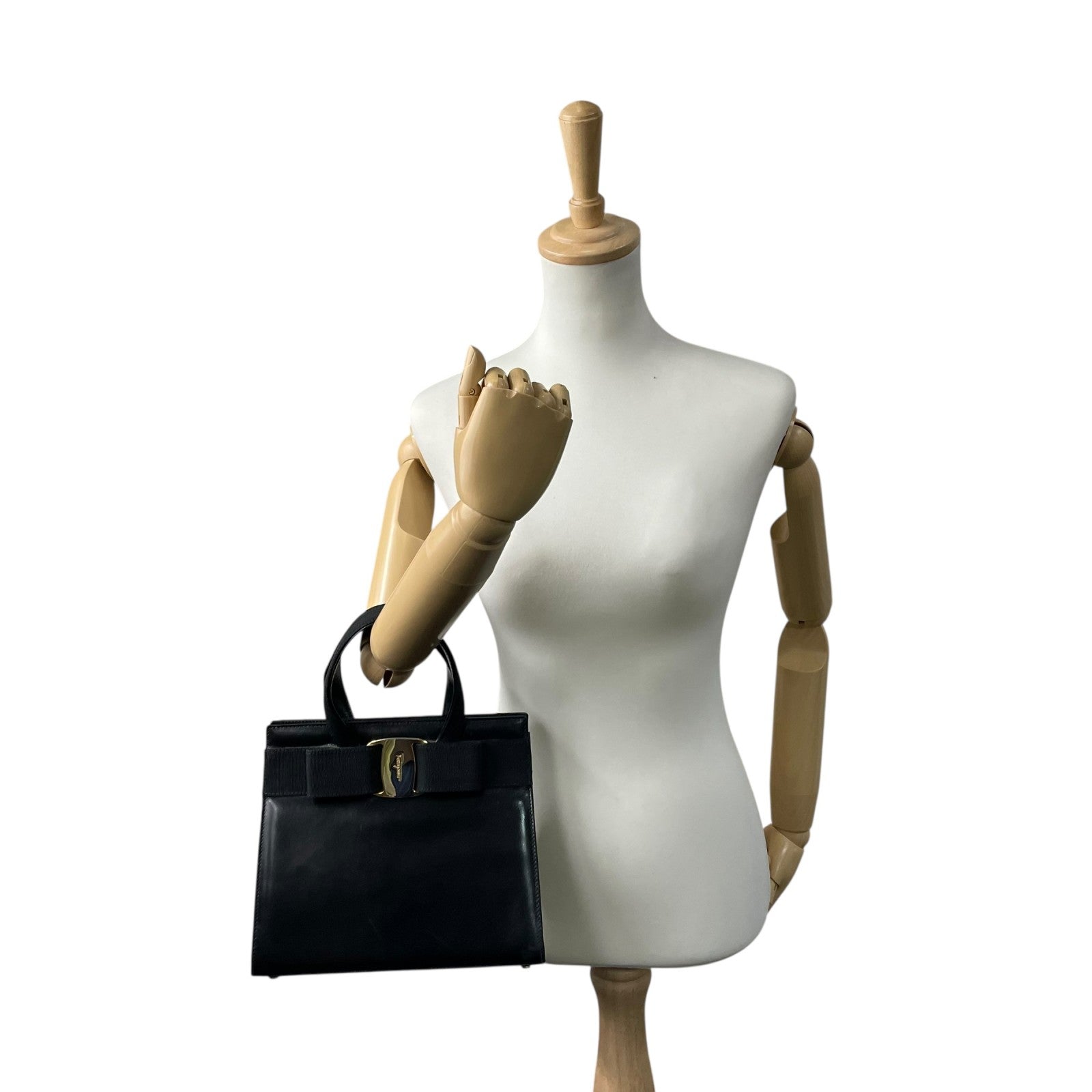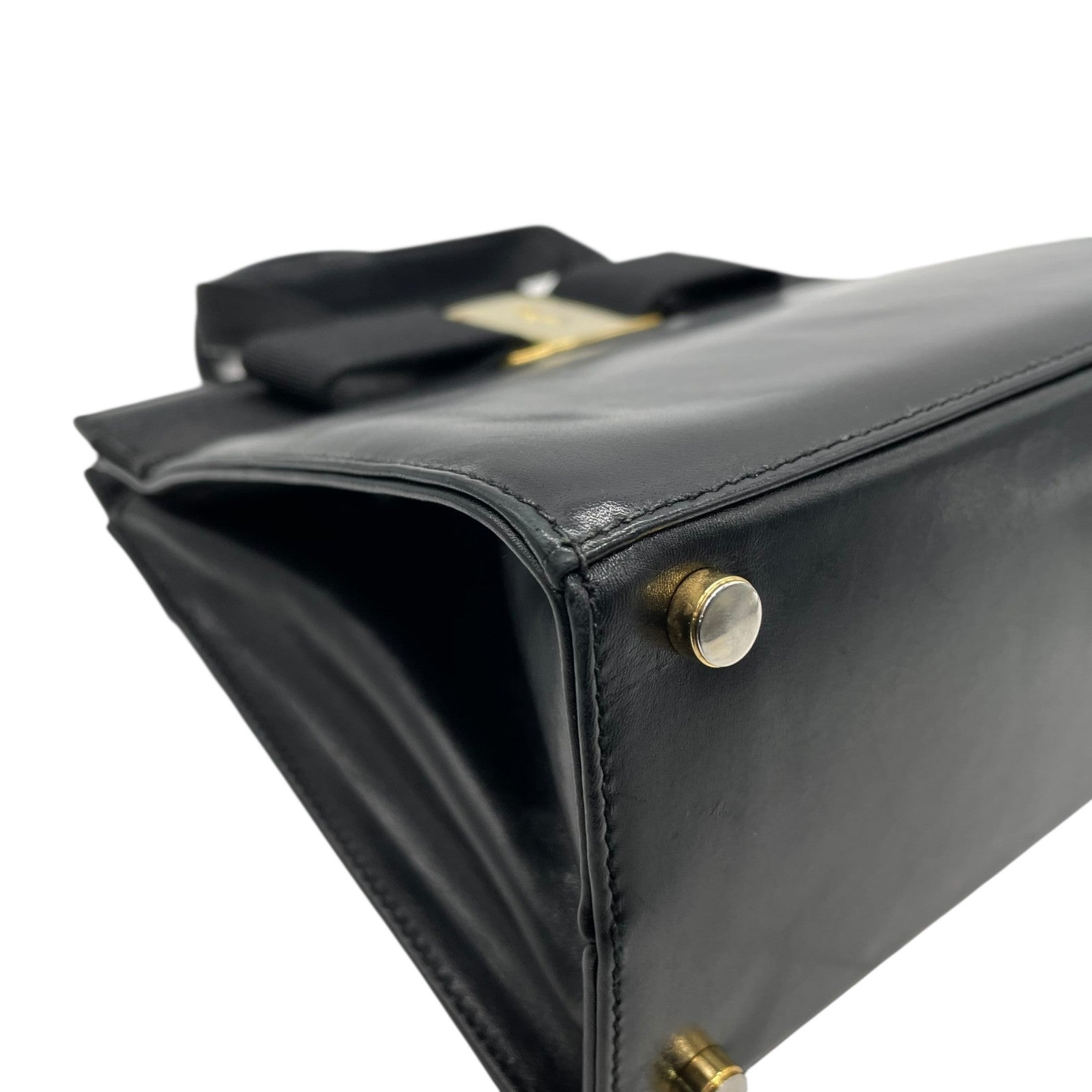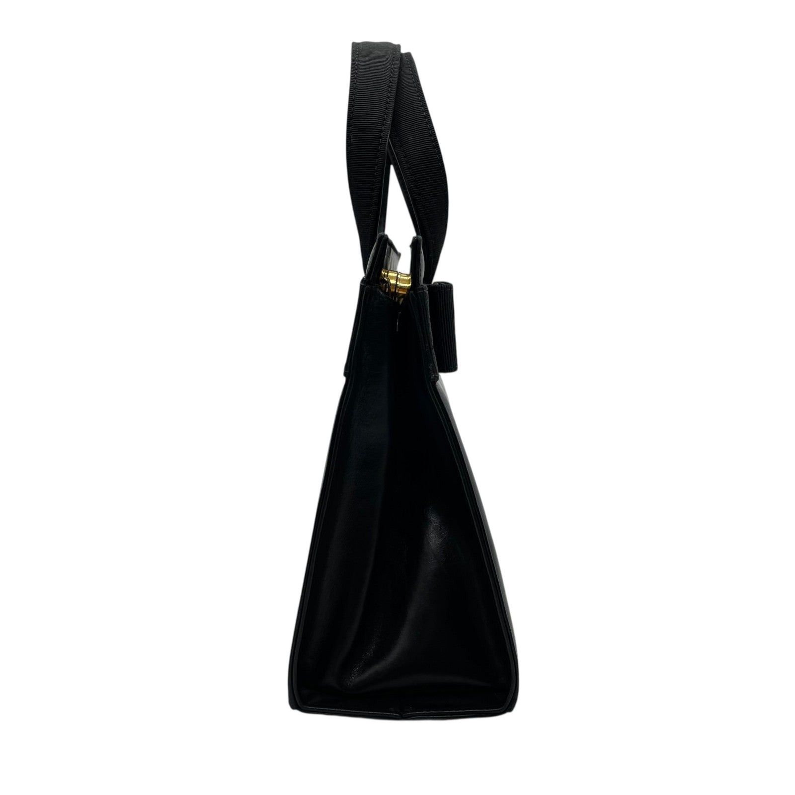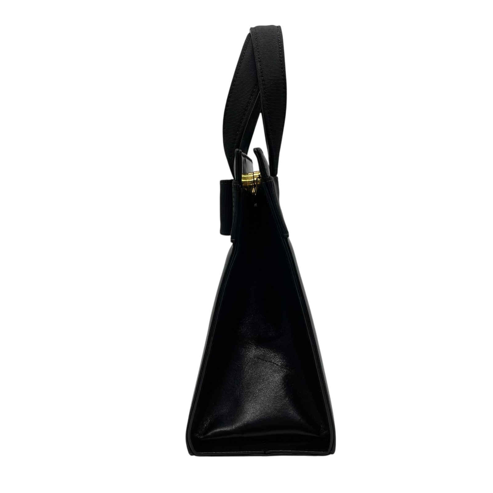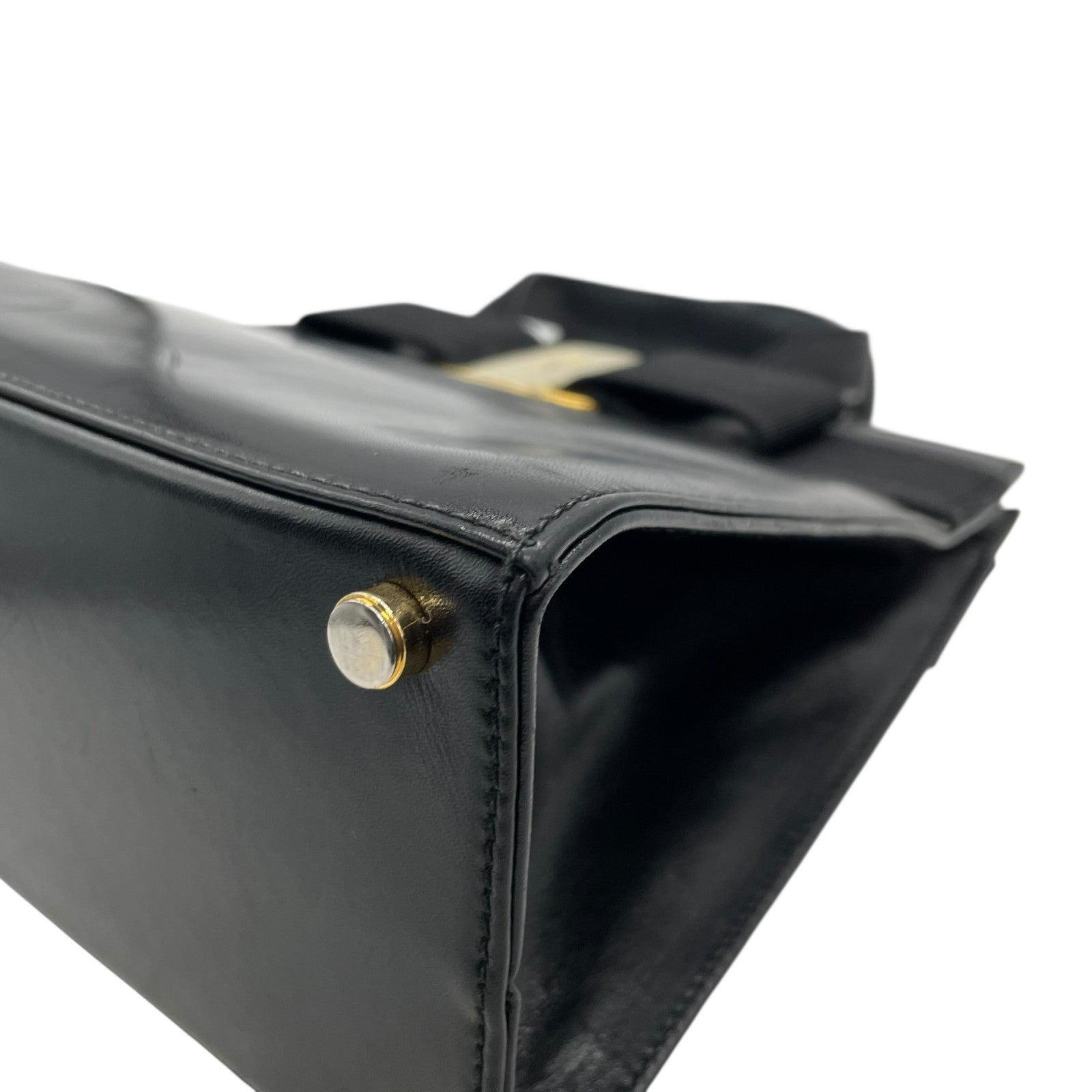 美品 サルヴァトーレ フェラガモ ハンドバッグ フォーマルバッグ ヴァラリボン 黒 ゴールド金具 自立 ブラック レザー 本革 ヴィンテージ B