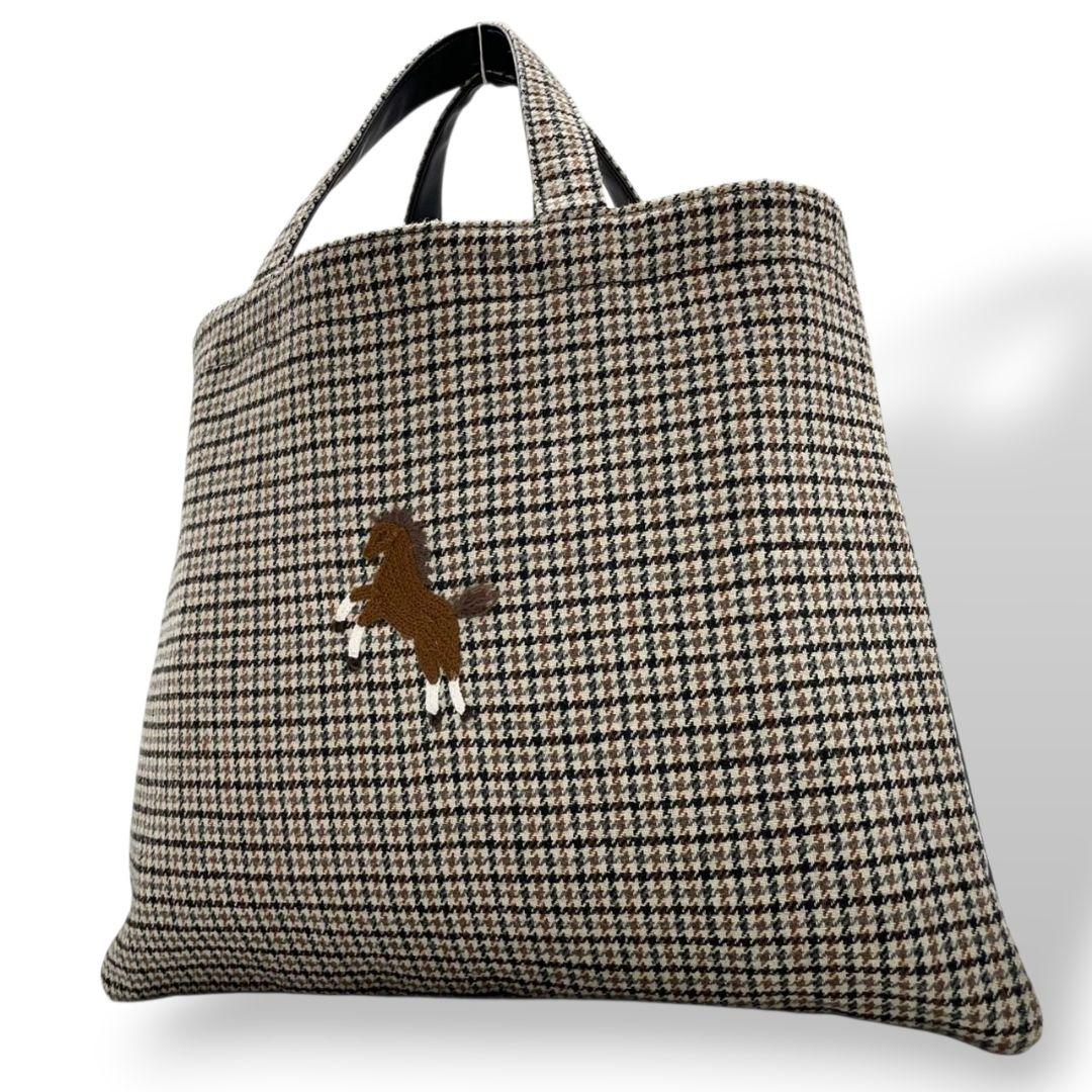 美品 セブンテン トートバッグ 千鳥格子 馬柄 ブラウン ブラック ベージュ マルチカラー ハンドバッグ レザー 本革