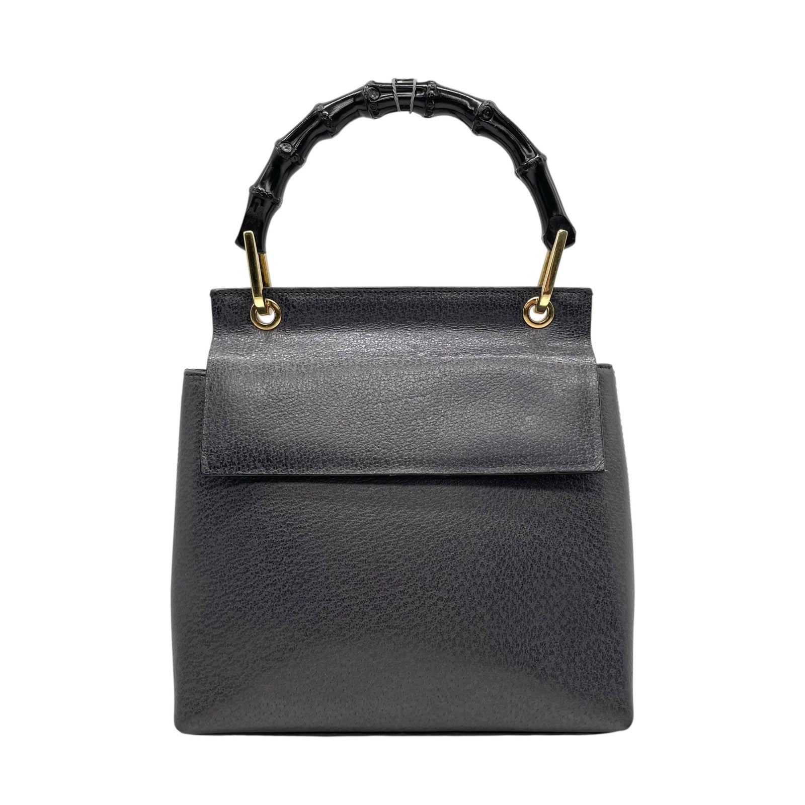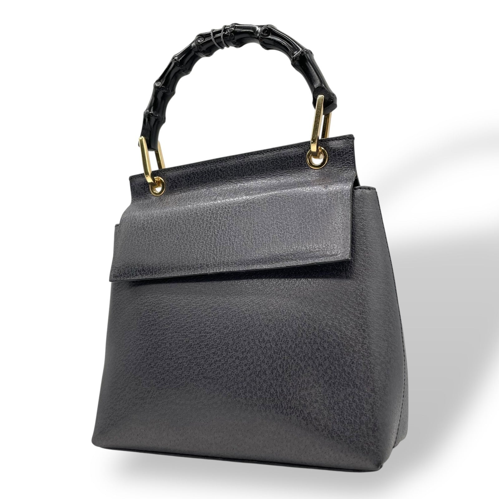 美品 GUCCI グッチ ハンドバッグ バンブー 黒×ネイビー 自立 ゴールド金具 ヴィンテージ オールド金具 フォーマルバッグ D2