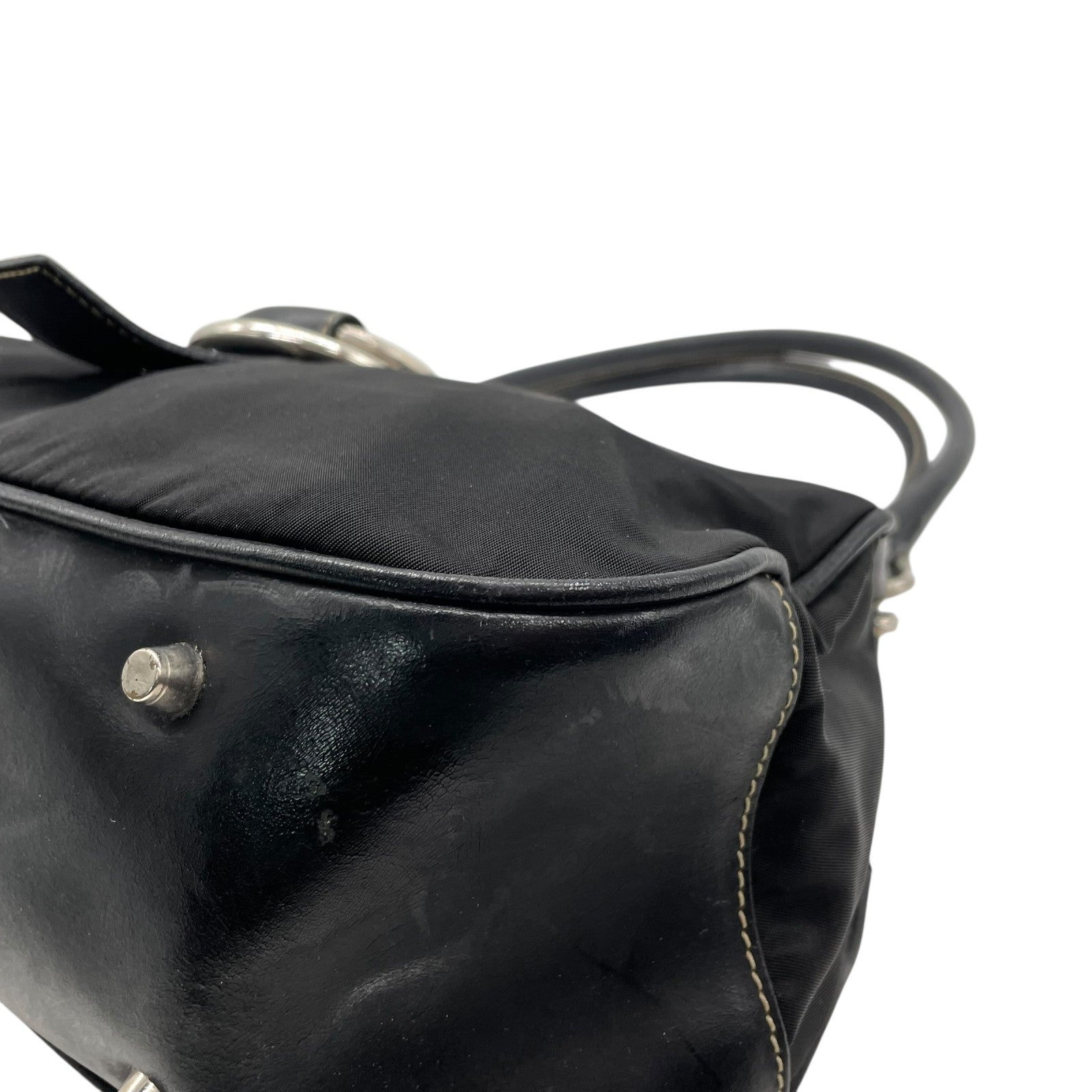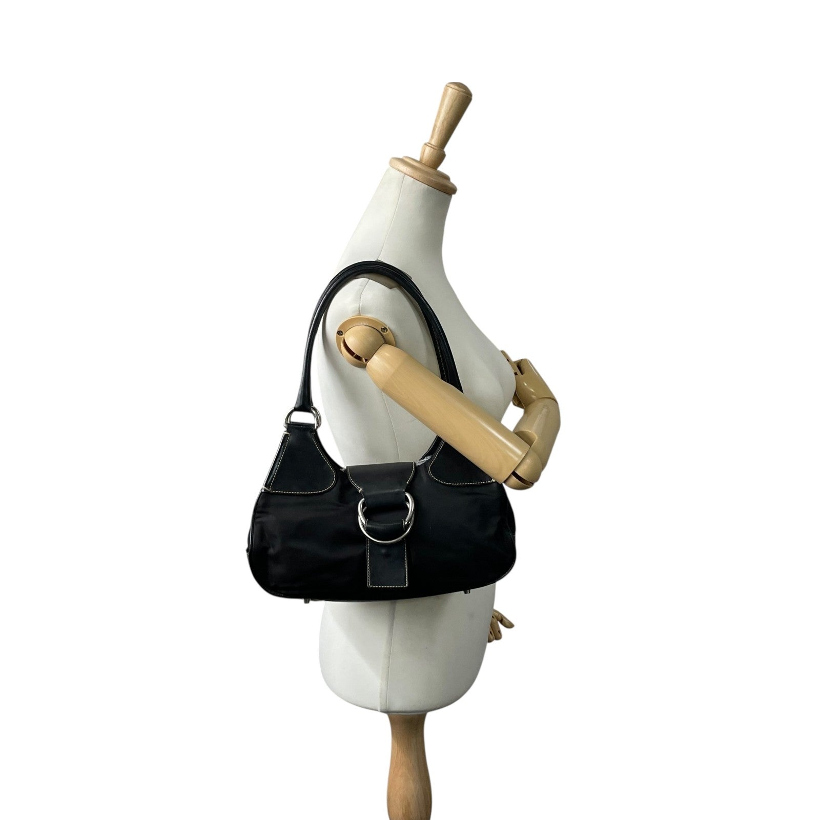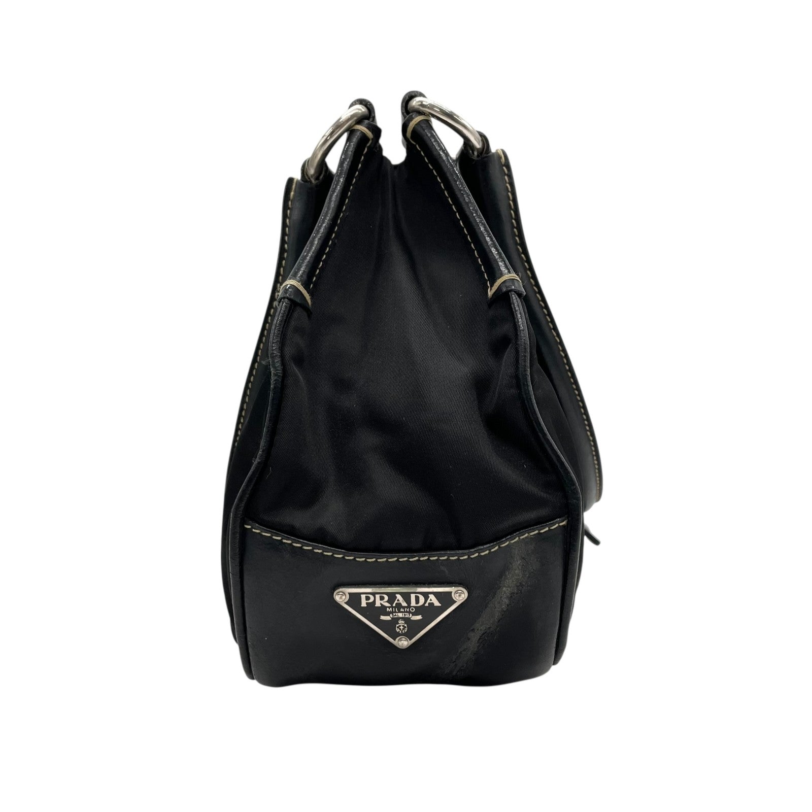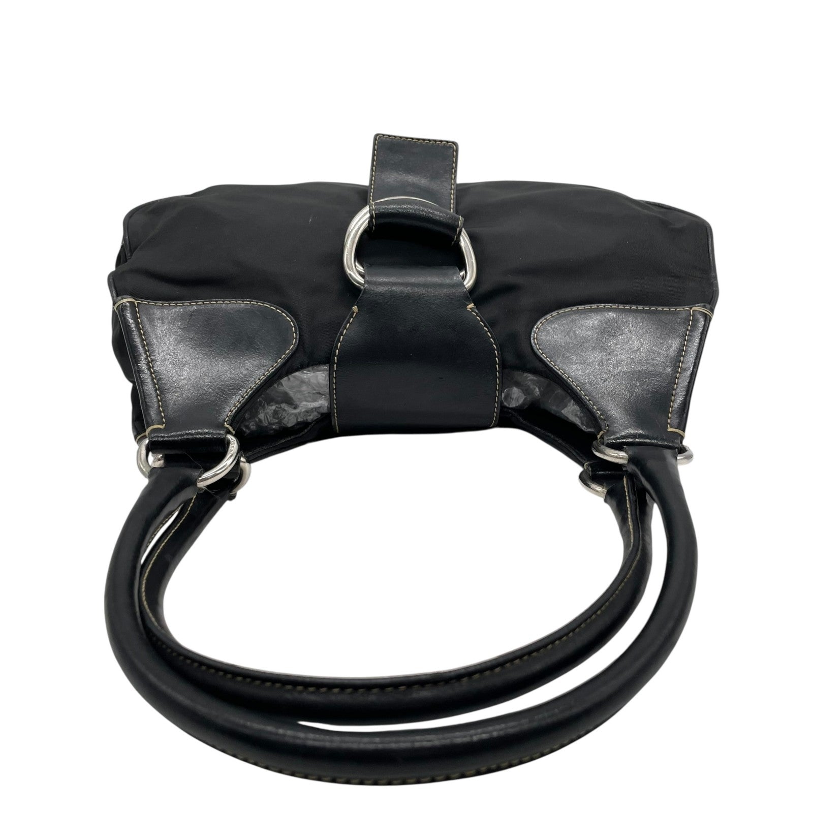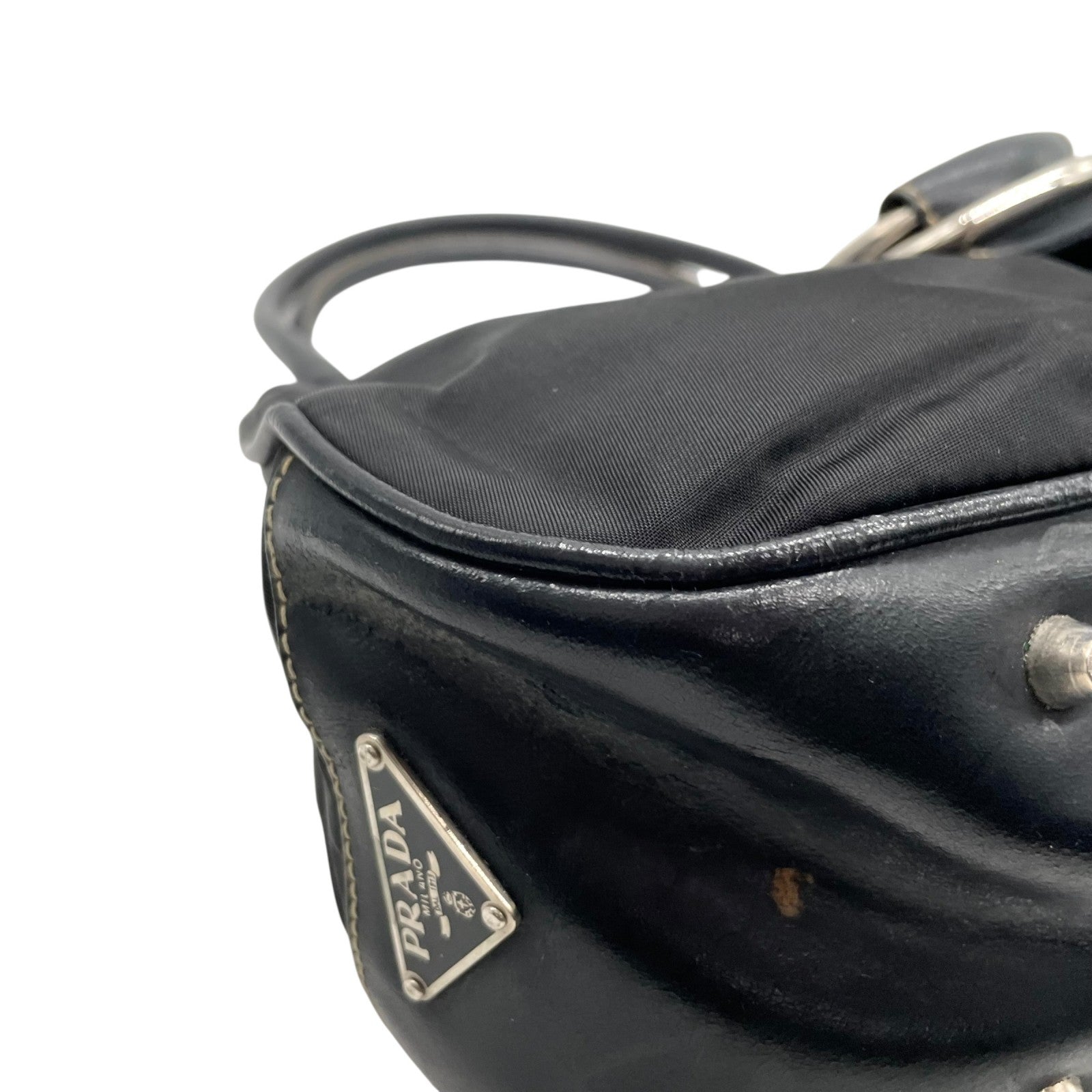 PRADA プラダ ワンショルダーバッグ ショルダーバッグ 黒 ブラック 肩掛け シルバー金具 ベルトデザイン フラップ ナイロン×レザー 三角ロゴ トライアングルロゴ ヴィンテージ テスート D1