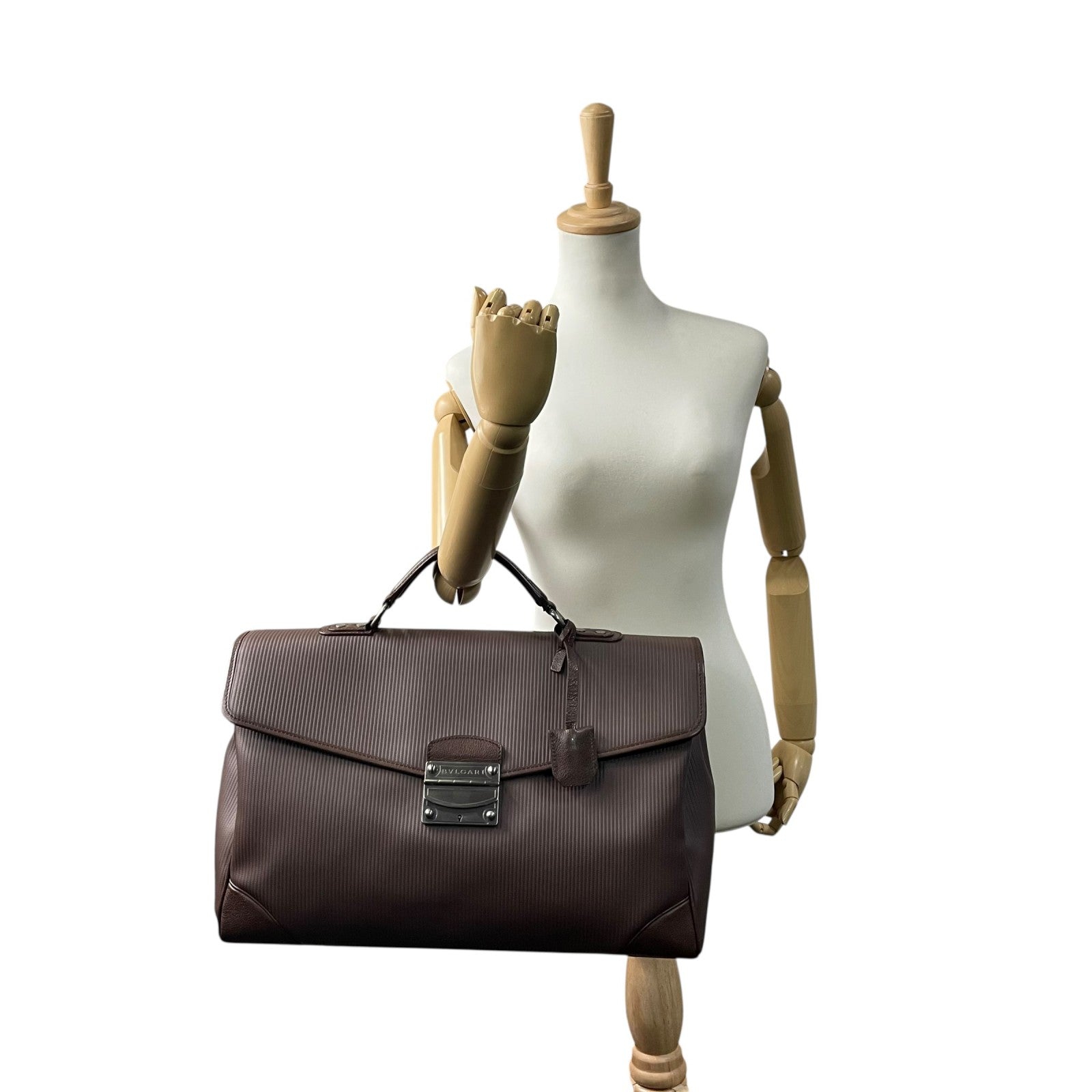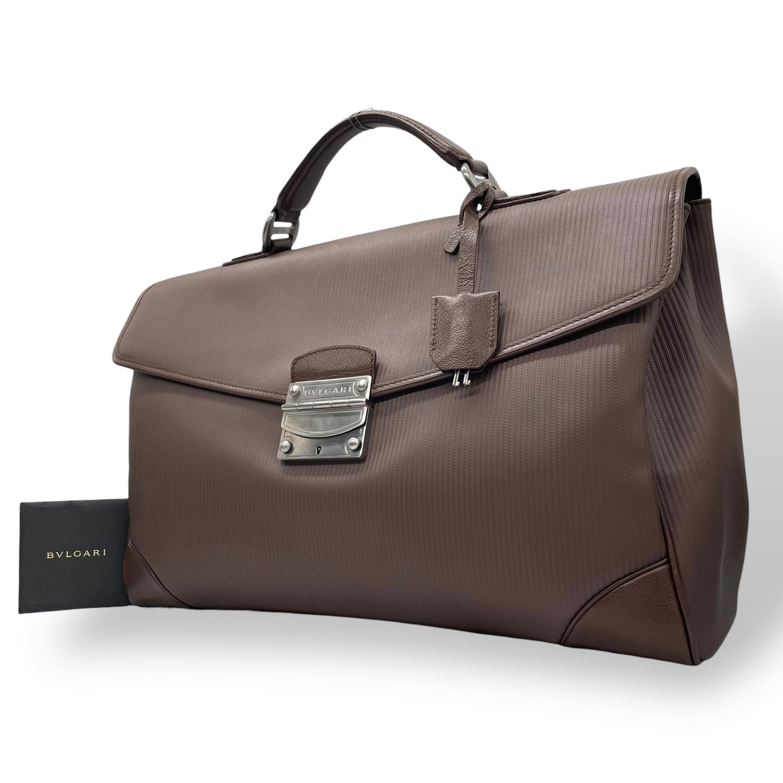 美品 ブルガリ BVLGARI ビジネスバッグ ハンドバッグ ブリーフケース レザー 本革 ブラウン 書類鞄 A4収納 シルバー金具 ユニセックス 大容量 C