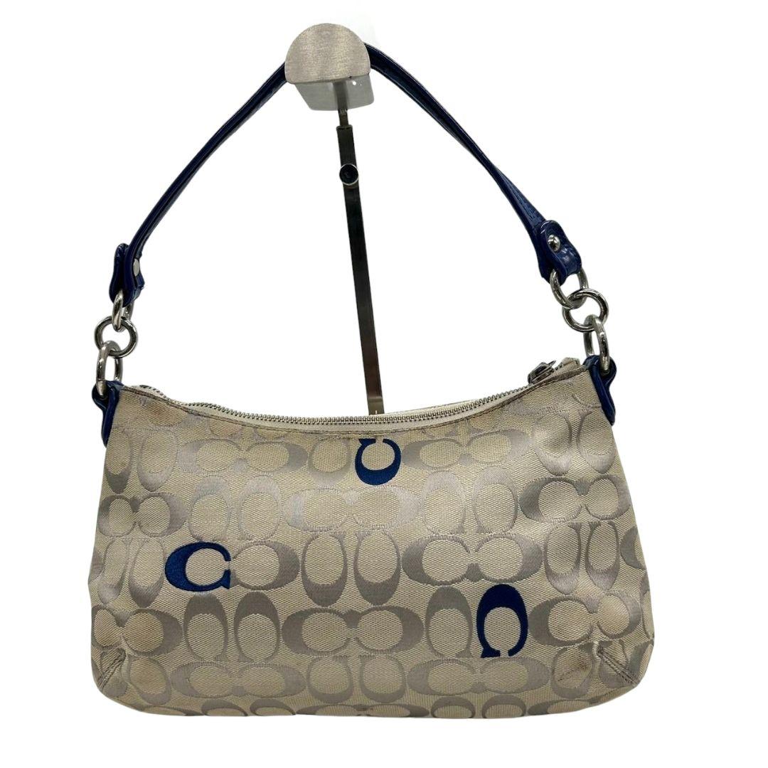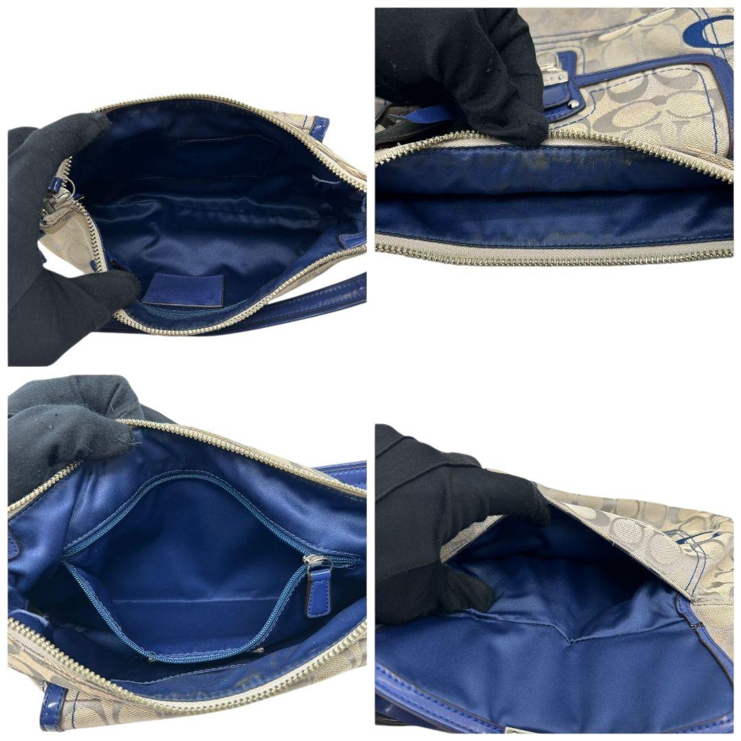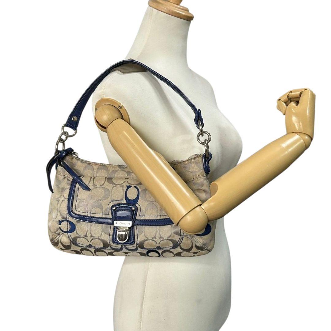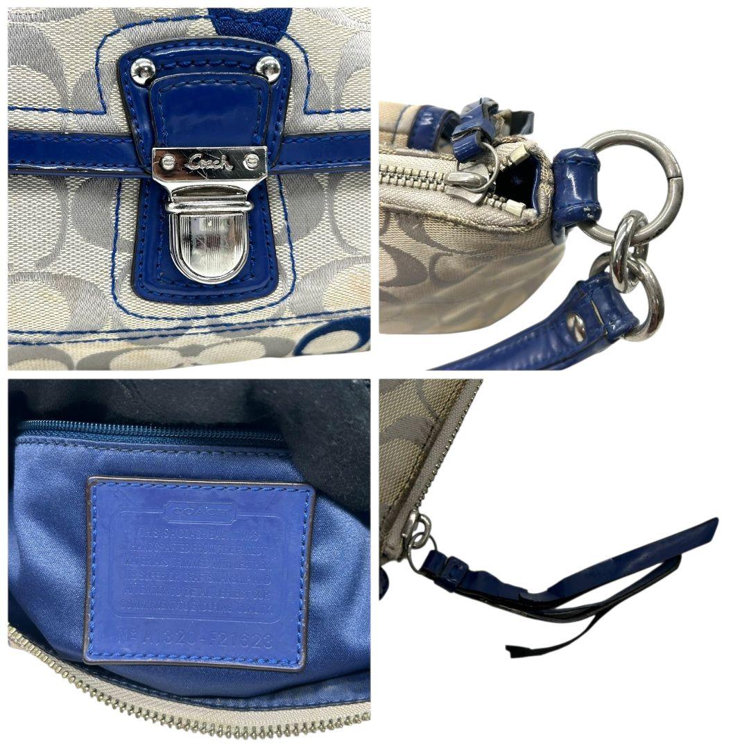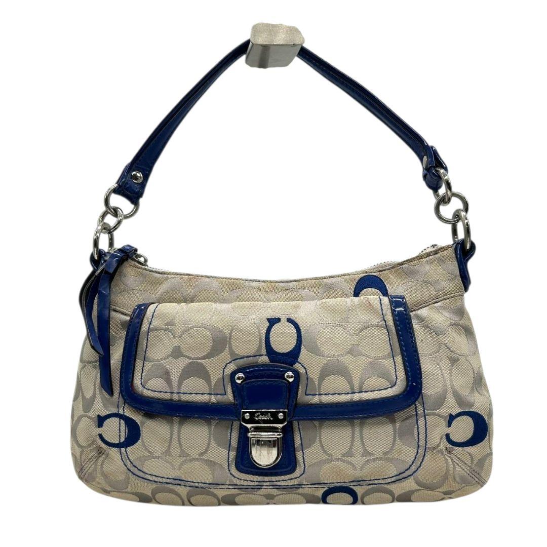 コーチ ハンドバッグ 白 シグネチャー キャンバス ロック金具 ワンショルダー トートバッグ 肩掛け可 肩かけ可 レザー 本革 ホワイト ネイビー COACH F21623 s20 上品