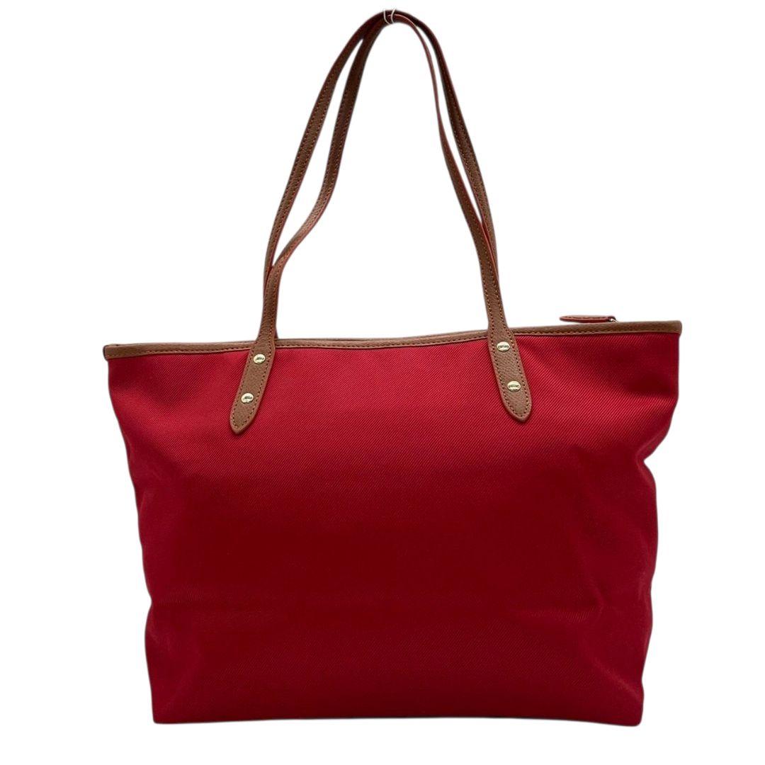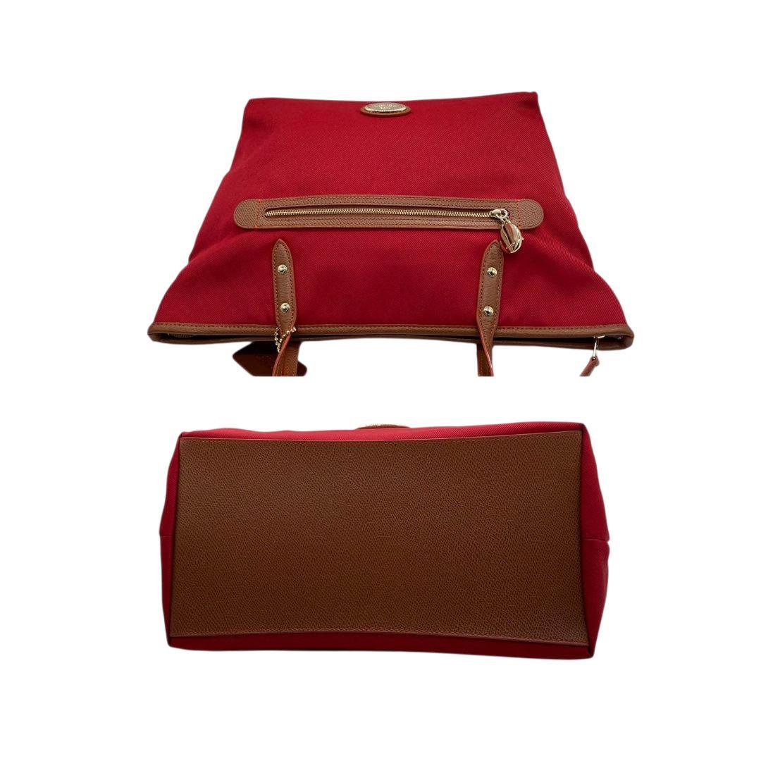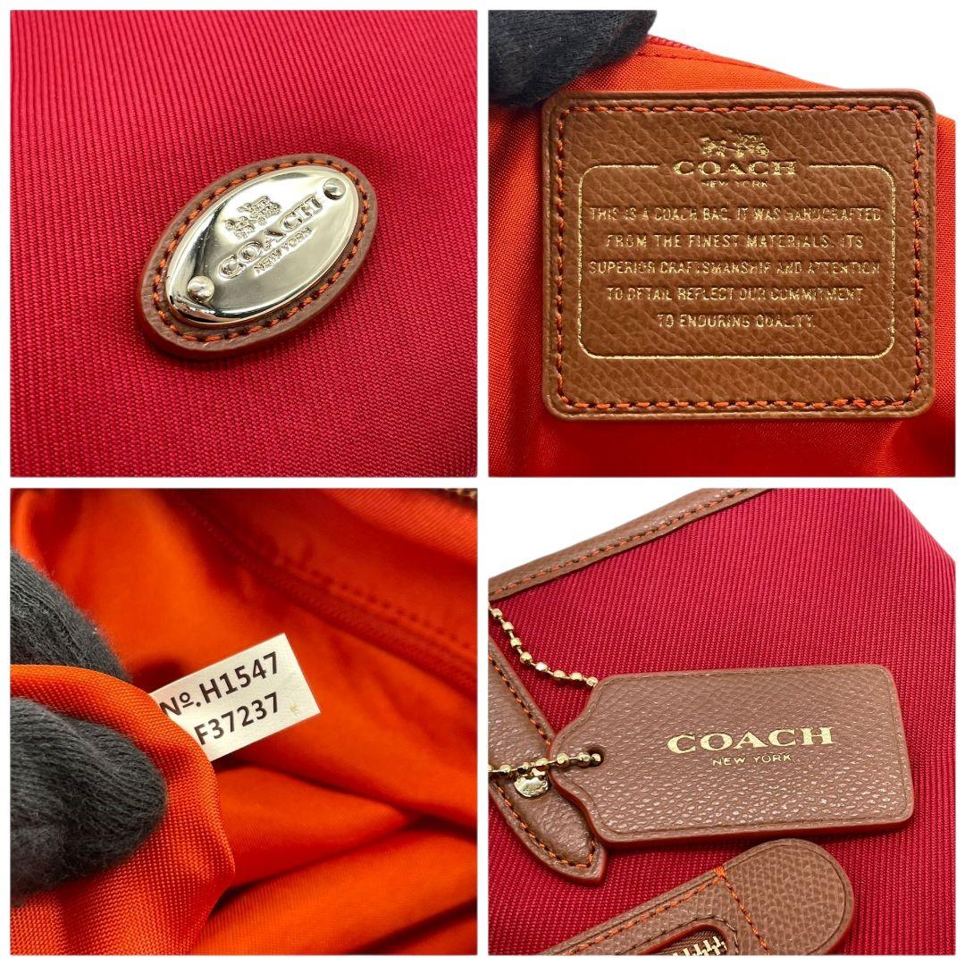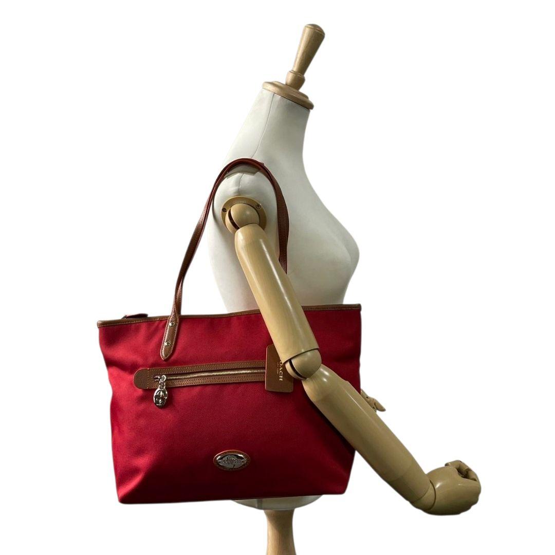 美品 コーチ トートバッグ 赤 A4収納 ワンショルダー キャンバス u16 ハンドバッグ 肩掛け可 肩かけ可 レッド レザー ゴールド金具 ロゴプレート ロゴタグ チャーム付き COACH F37237