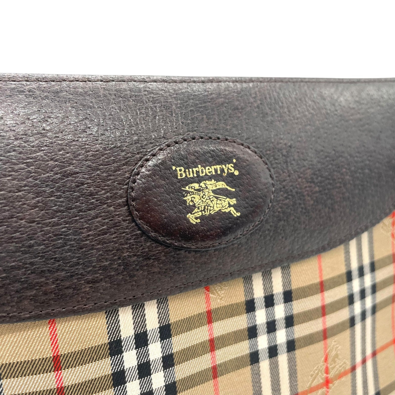 極美品 Burberry バーバリー クラッチバッグ ノバチェック シャドーホース ブラウン キャンバス×レザー ヴィンテージ 箱付き ホースロゴ セカンドバッグ ユニセックス メンズ レディース A1
