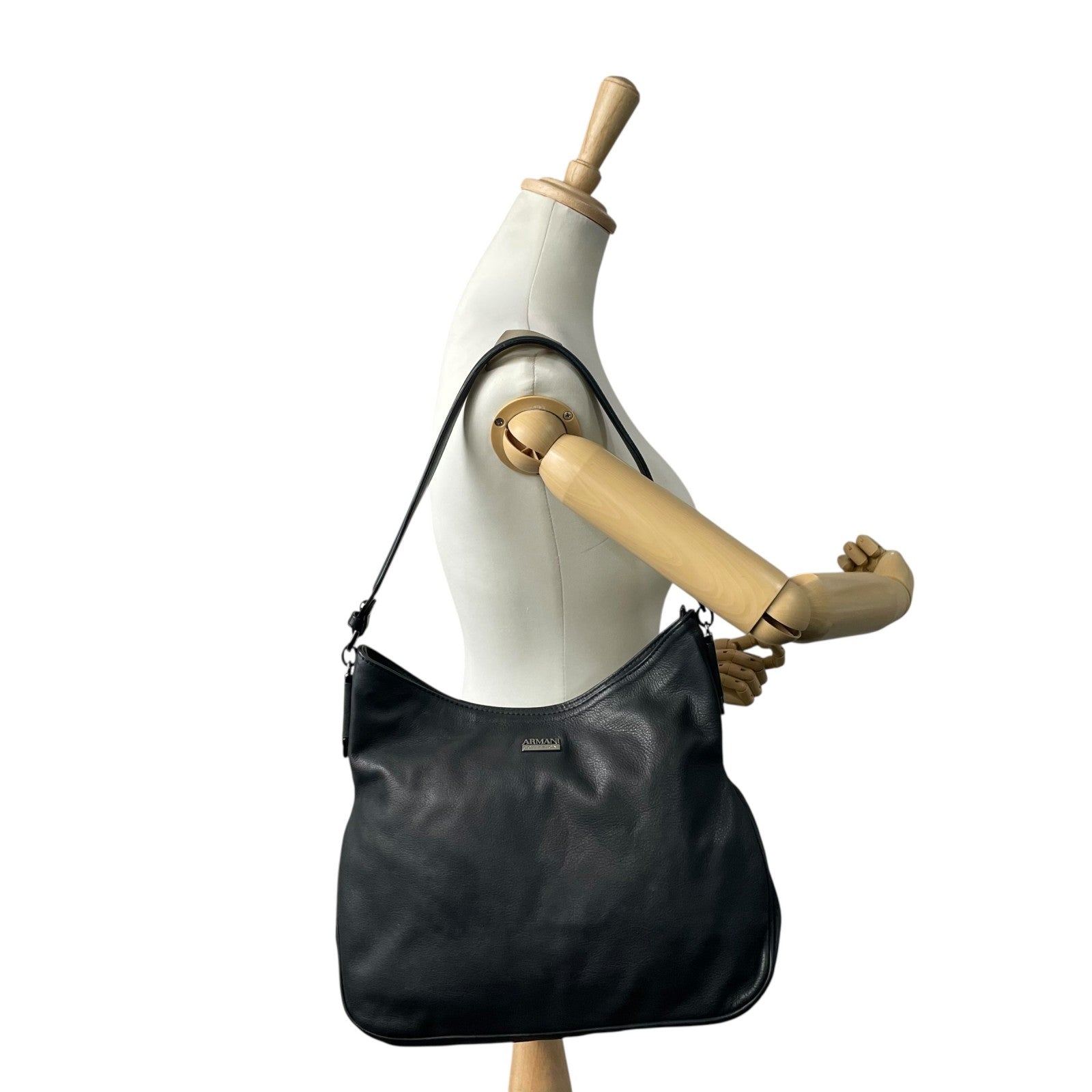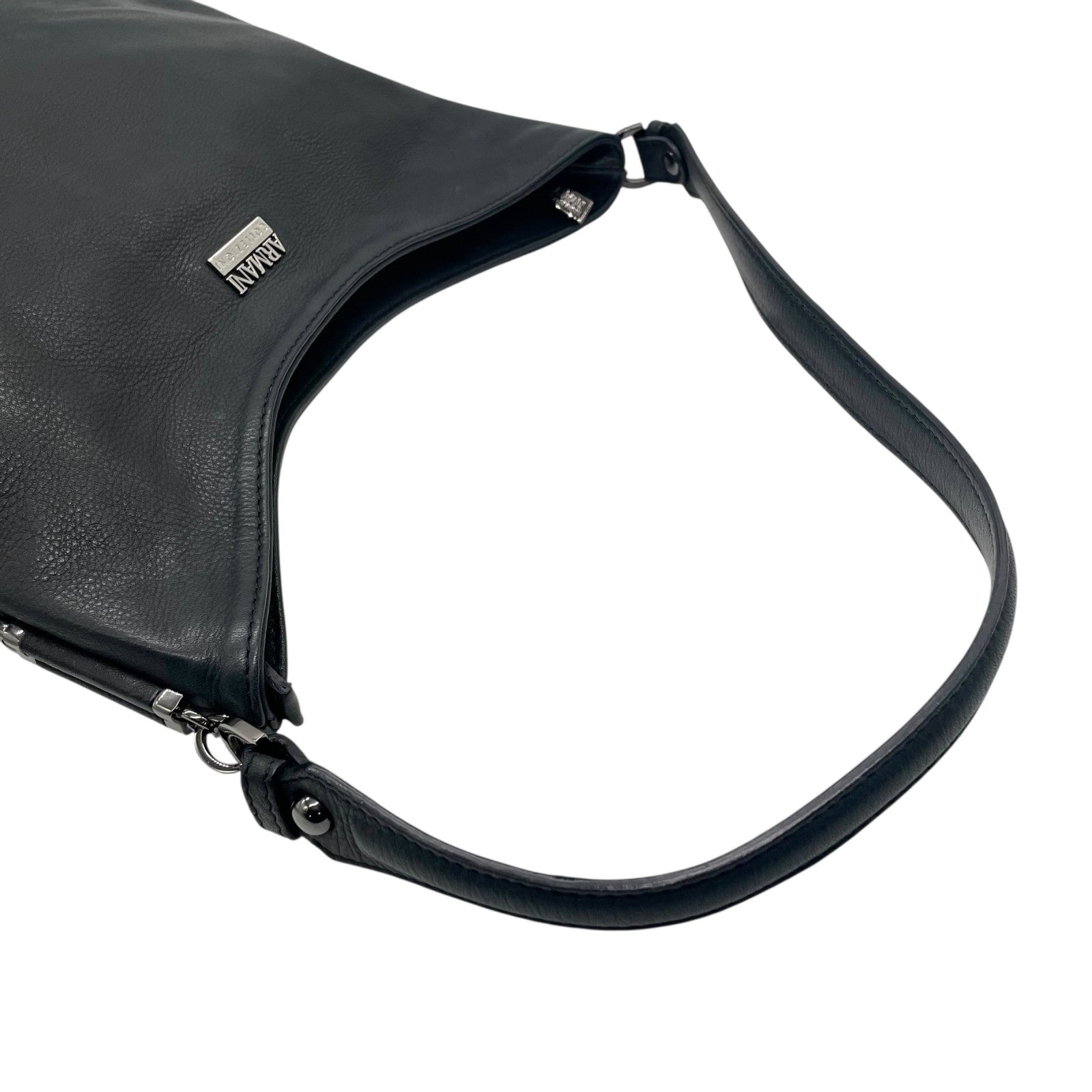 極美品 ARMANI COLLEZIONI アルマーニ コレッツォーニ レザー ワンショルダー ショルダーバッグ ブラック 本革 シルバー金具 ユニセックス メンズ レディース A1