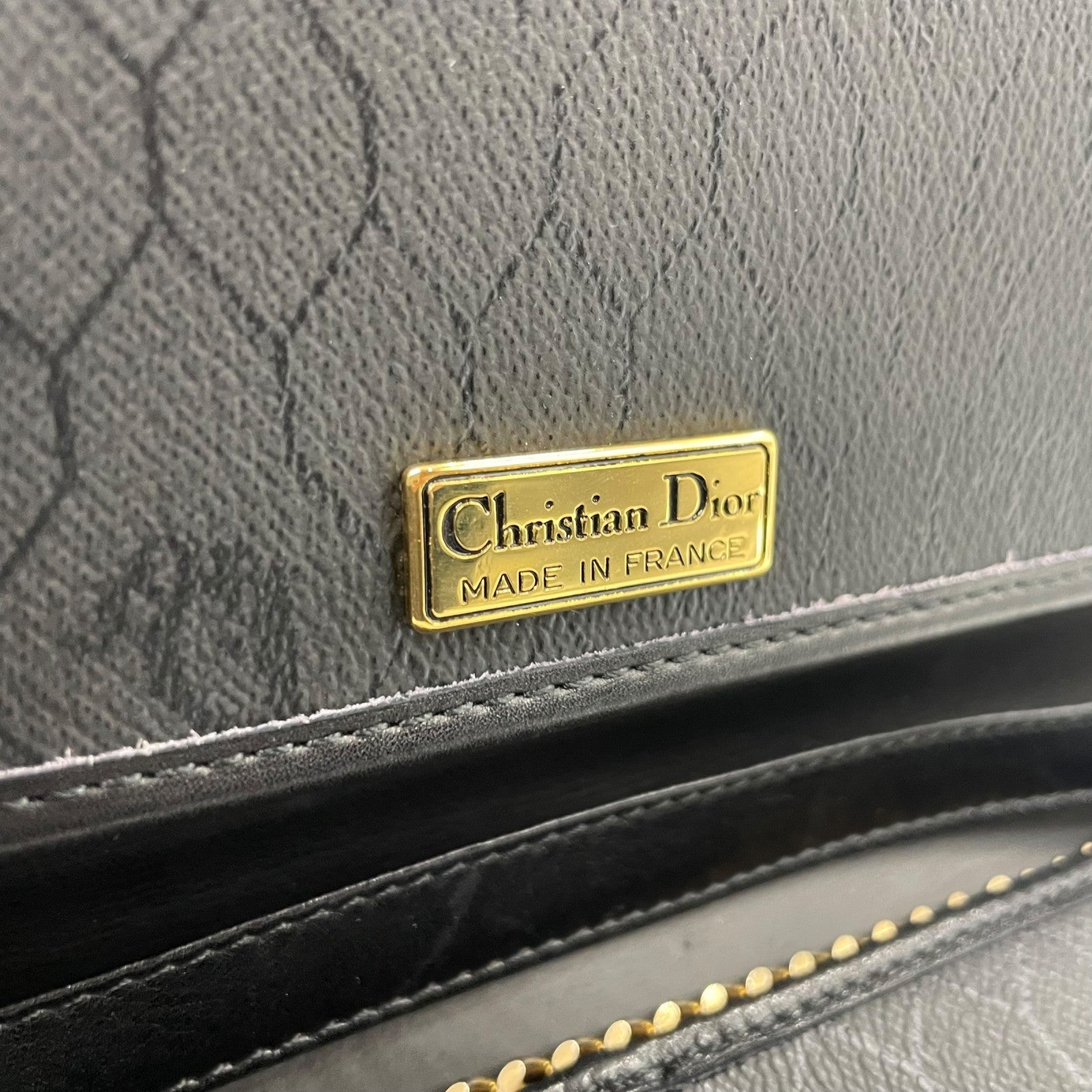 Christian Dior クリスチャンディオール ショルダーバッグ ハニカム柄 ブラック 黒 PVC×レザー チェーンショルダー クロスボディ 斜め掛け ゴールド金具 ヴィンテージ D7
