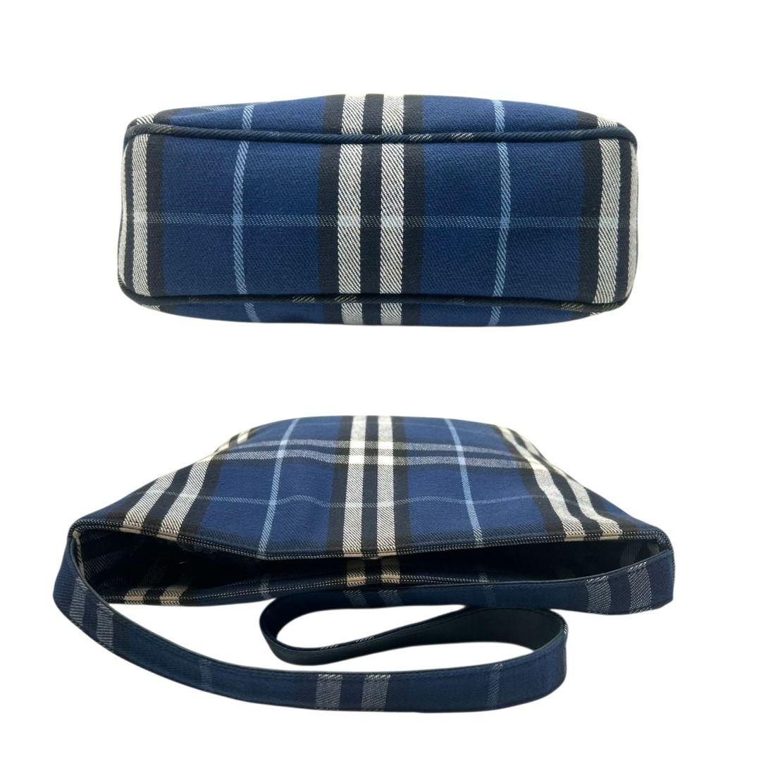 バーバリー チェック柄 キャンバス ショルダーバッグ ブルー ネイビー ホースロゴ ワンショルダー トートバッグ ハンドバッグ 総柄