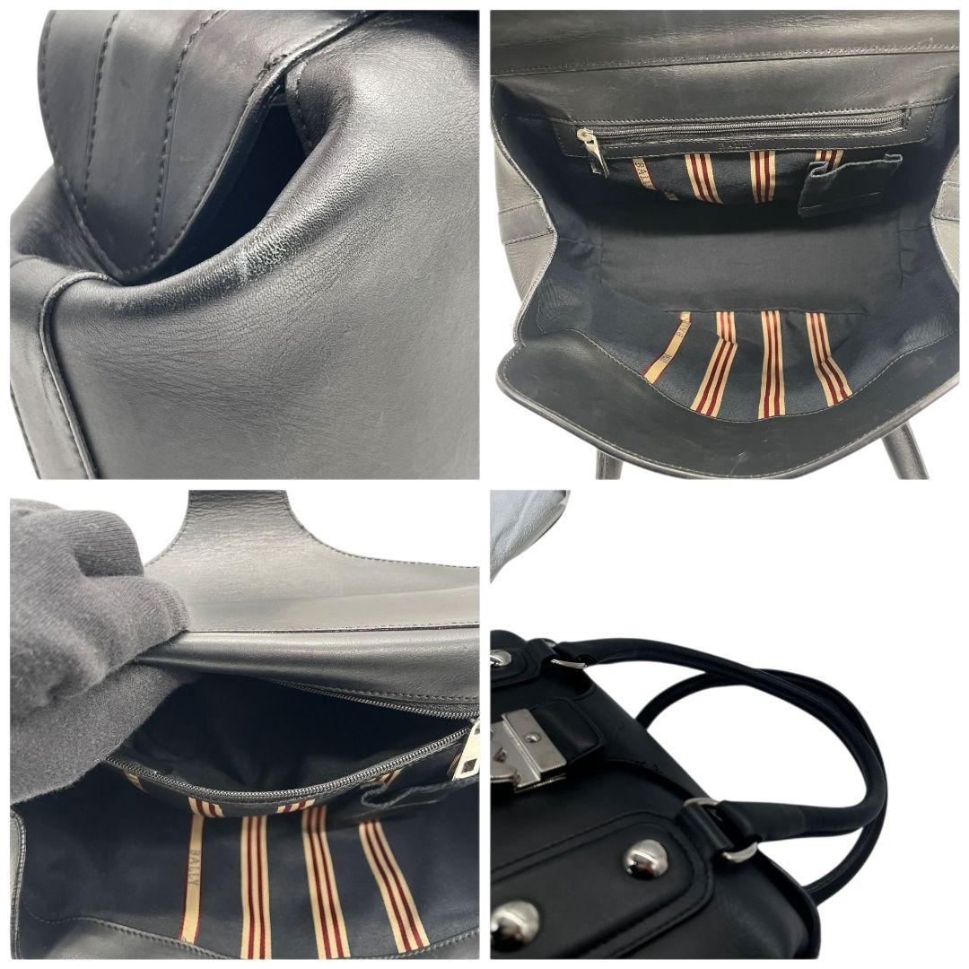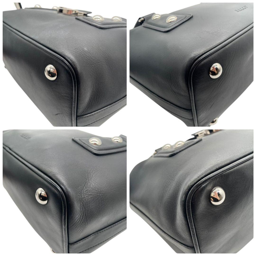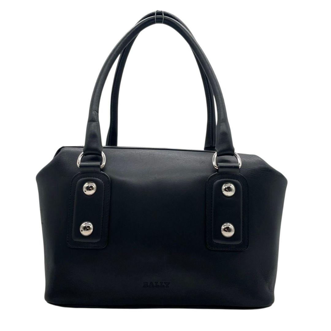 バリー ハンドバッグ 黒 レザー 本革 ワンショルダー トートバッグ ターンロック シルバー金具 スタッズ 肩掛け可 肩かけ可 ブラック BALLY u12 上品 高級感