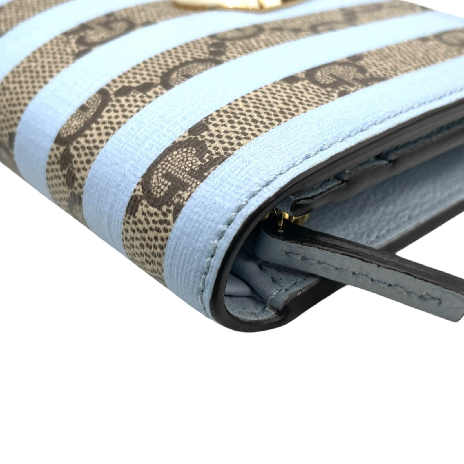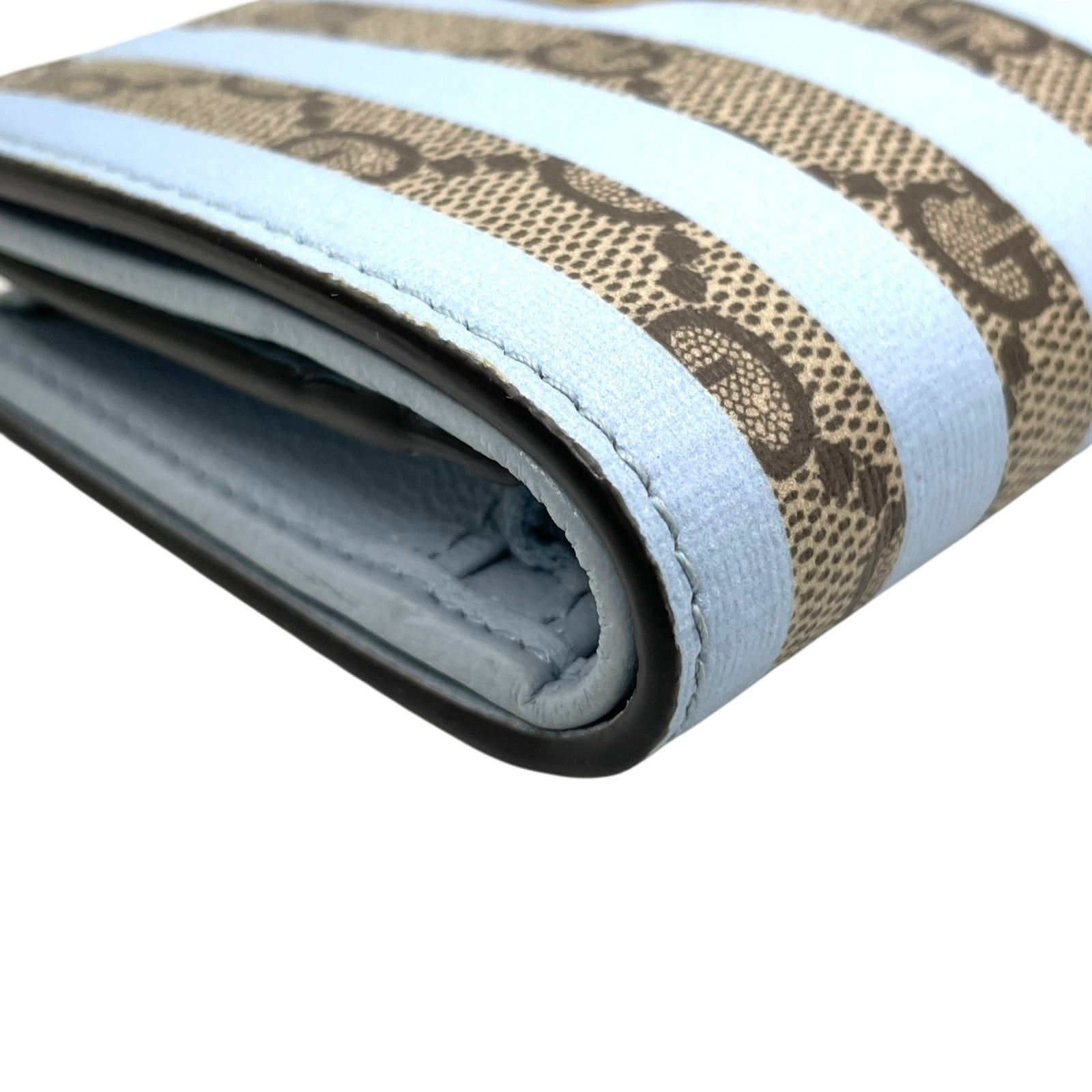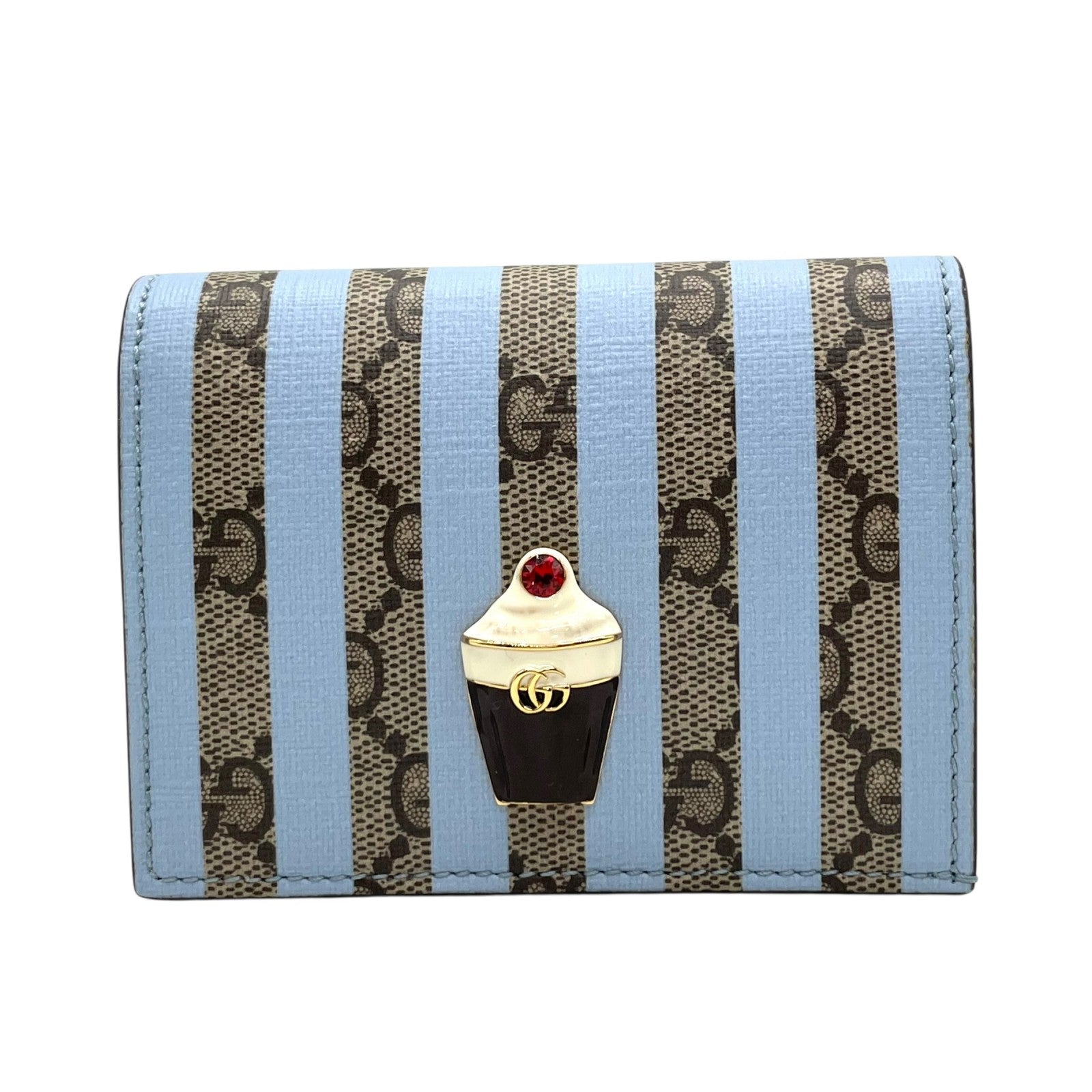 【新品同様】 GUCCI グッチ GGスプリーム アイスクリーム 二つ折り財布 コンパクトウォレット ベージュ×ライトブルー PVC レザー レディース 701489 M2