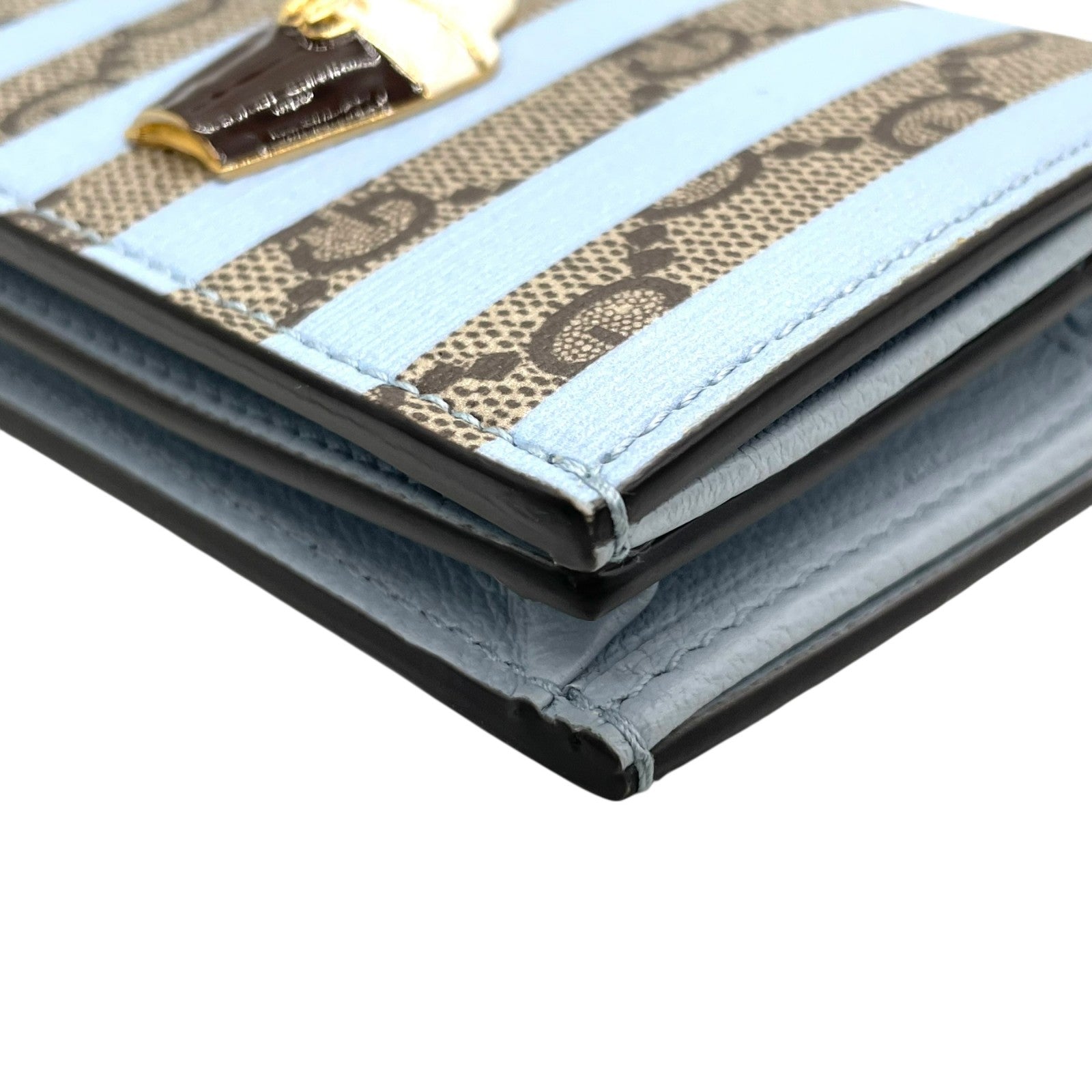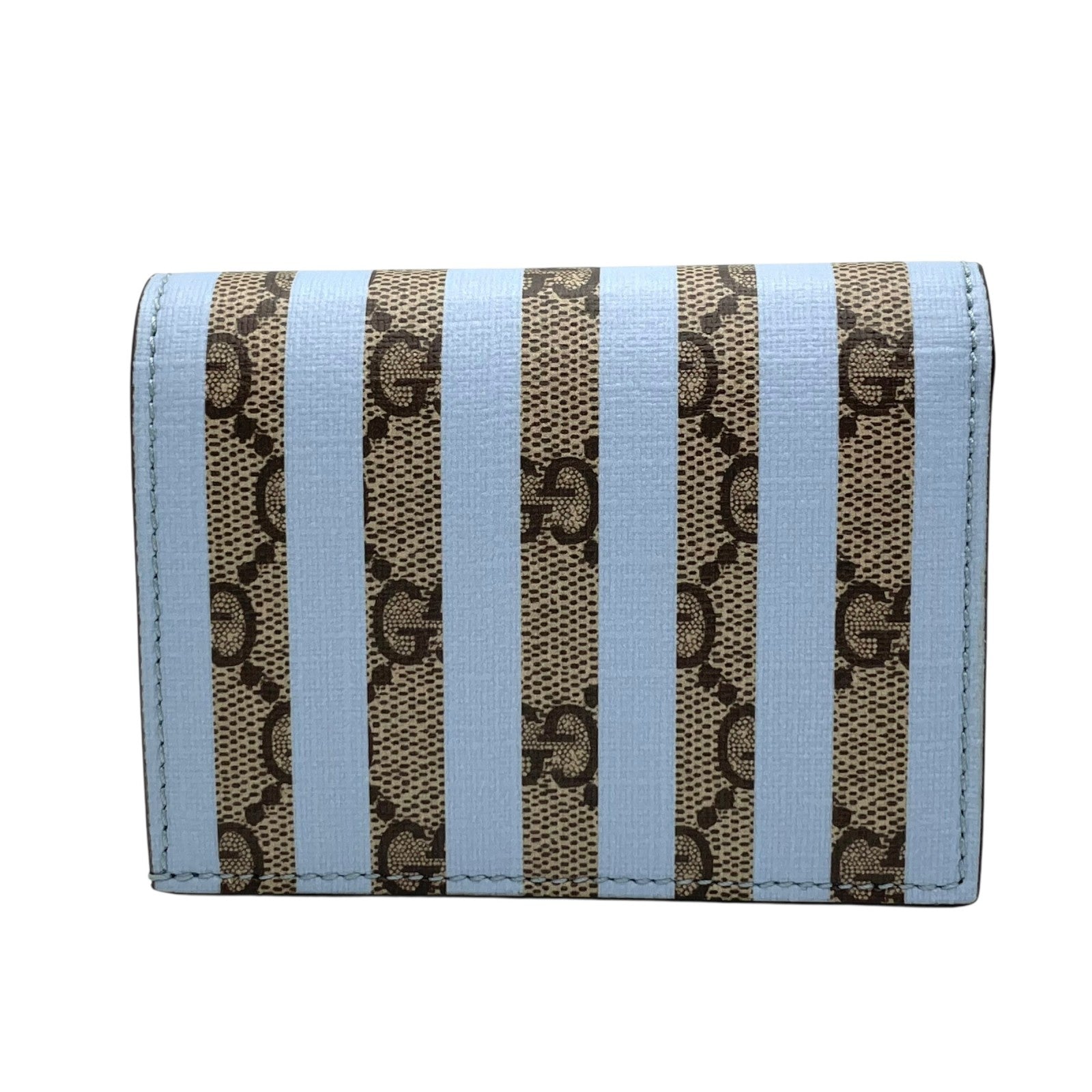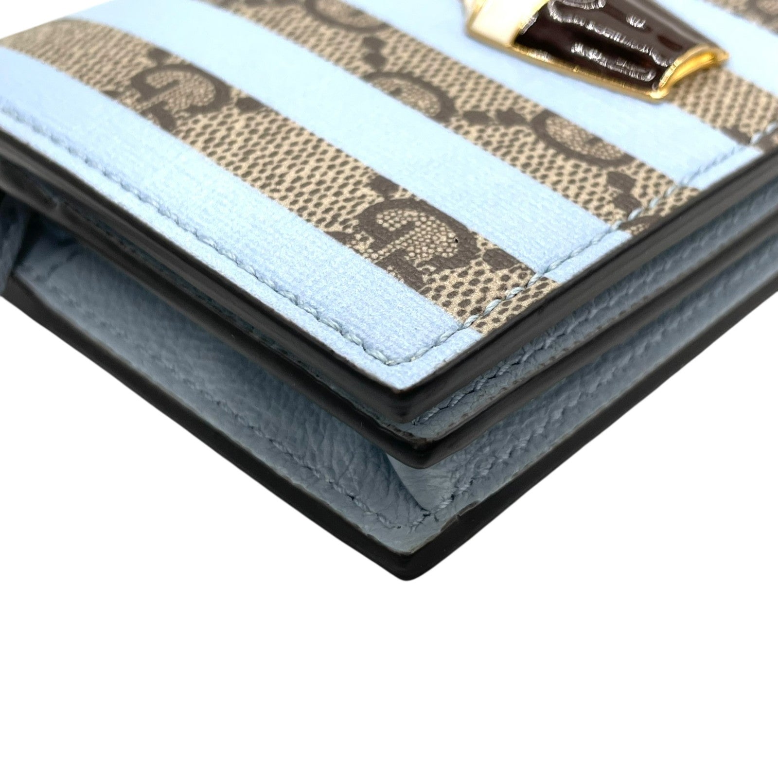 【新品同様】 GUCCI グッチ GGスプリーム アイスクリーム 二つ折り財布 コンパクトウォレット ベージュ×ライトブルー PVC レザー レディース 701489 M2