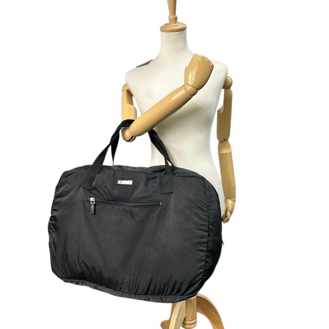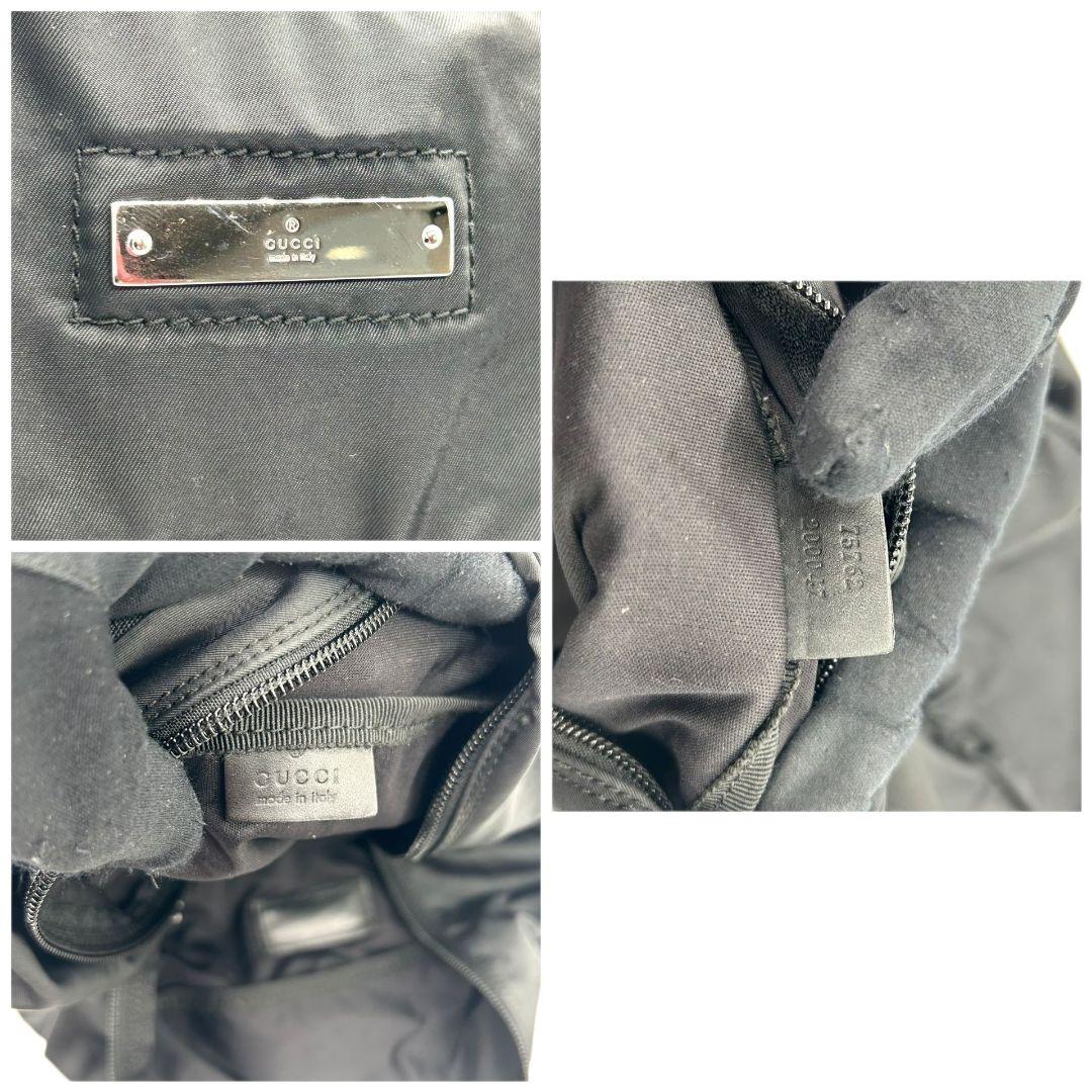 GUCCI グッチ ボストンバッグ ナイロン 黒 ブラック A4収納可 自立可 トートバッグ ハンドバッグ ワンショルダー 肩掛け可 ロゴプレート シルバー金具 X2 レディース メンズ
