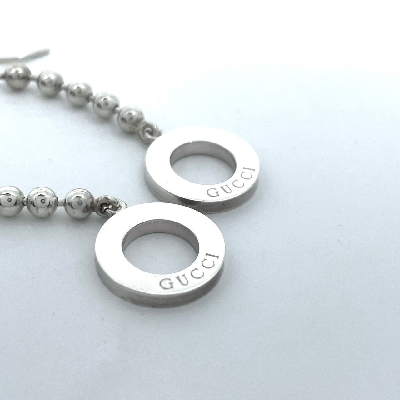 極美品 GUCCI グッチ ピアス ロゴ サークル ボールチェーン シルバー SV925 フック アクセサリー ジュエリー 箱付き レディース I3