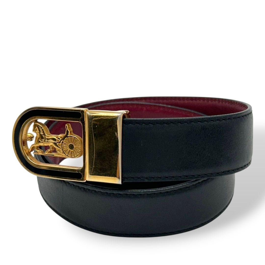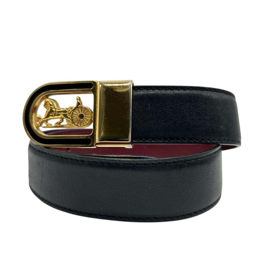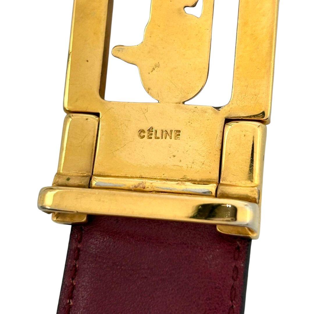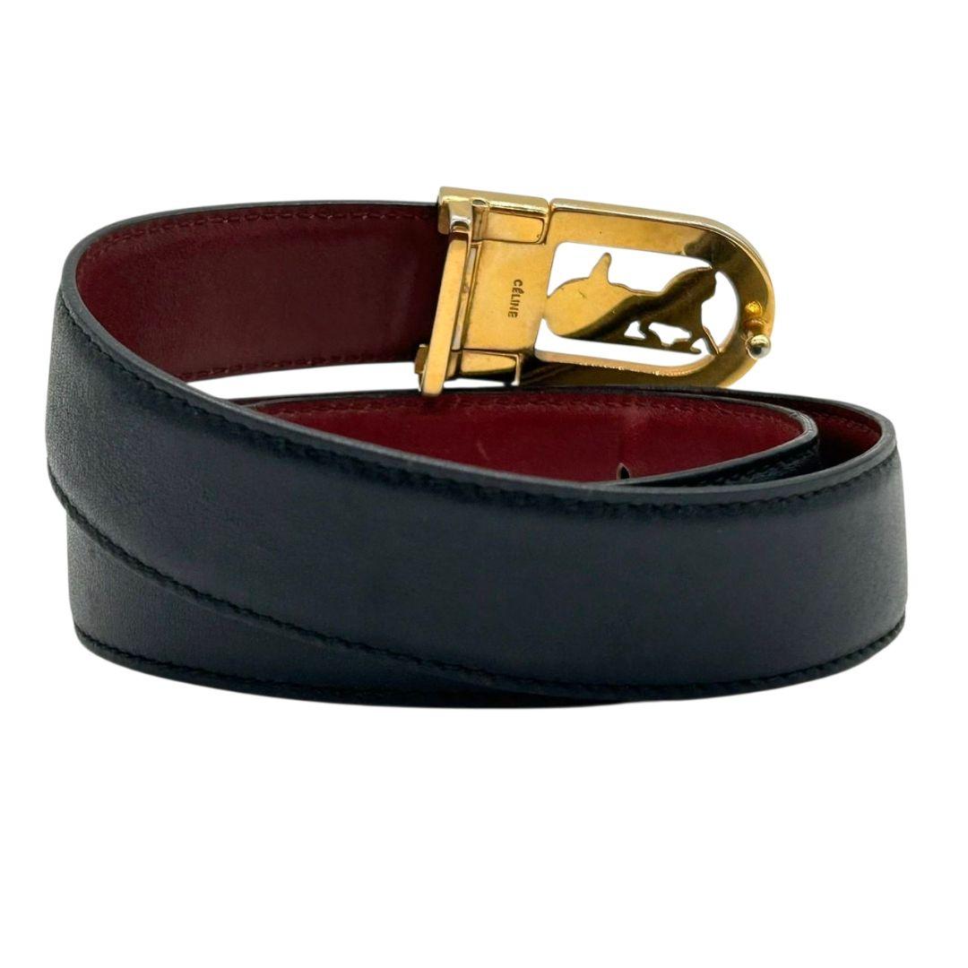 セリーヌ ベルト 黒 ブラック ワインレッド リバーシブル 馬車金具 ゴールド金具 ロゴ PX-2 レザー 本革 高級 ブランド レディース メンズ CELINE