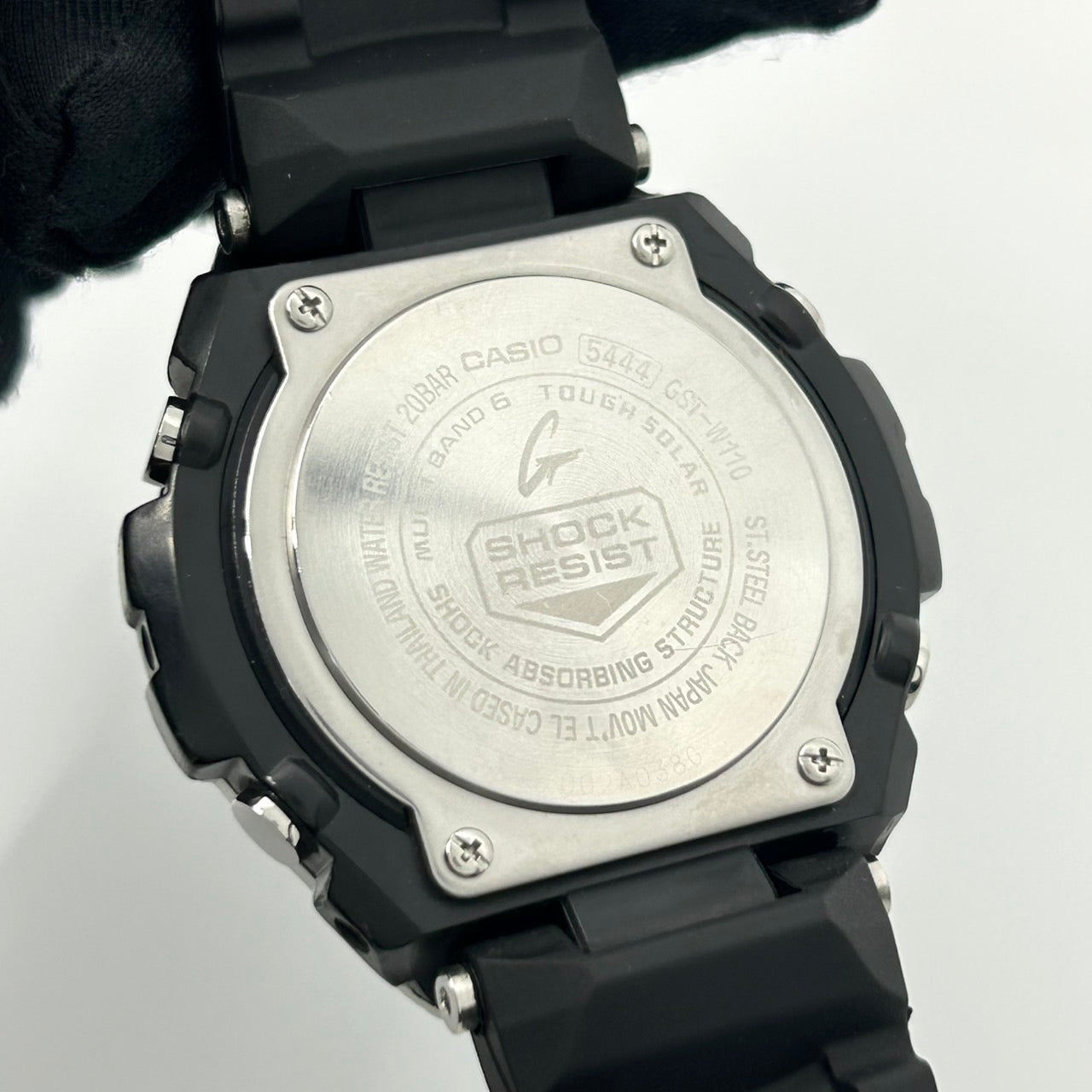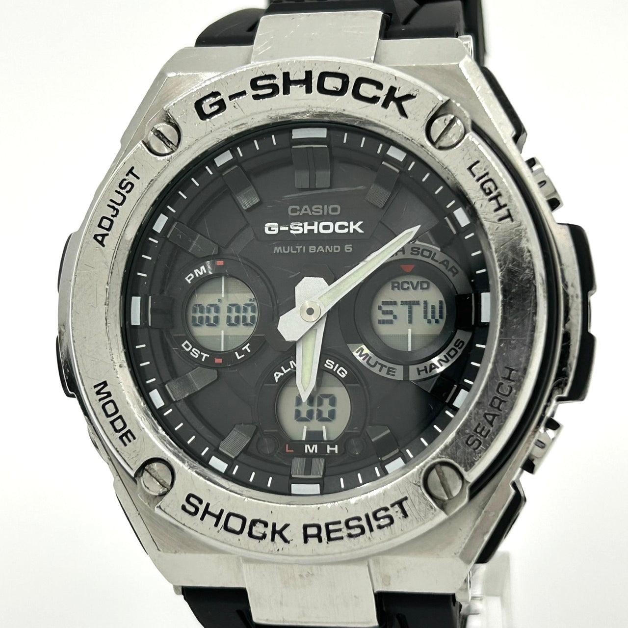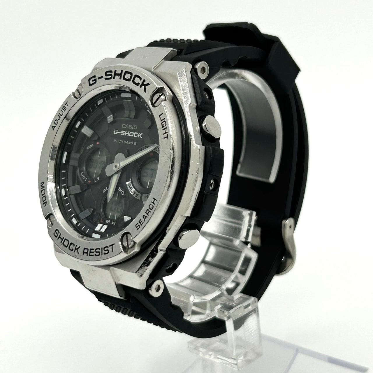【稼働品】カシオ Gショック Gスチール 腕時計 GST-W110 メンズ タフソーラー 電波ソーラー デジアナ MULTI BAND 6 ブラック シルバー ラバーベルト ラウンド 高機能 耐衝撃構造 ストリート アウトドア カジュアル クリーニング済 G3