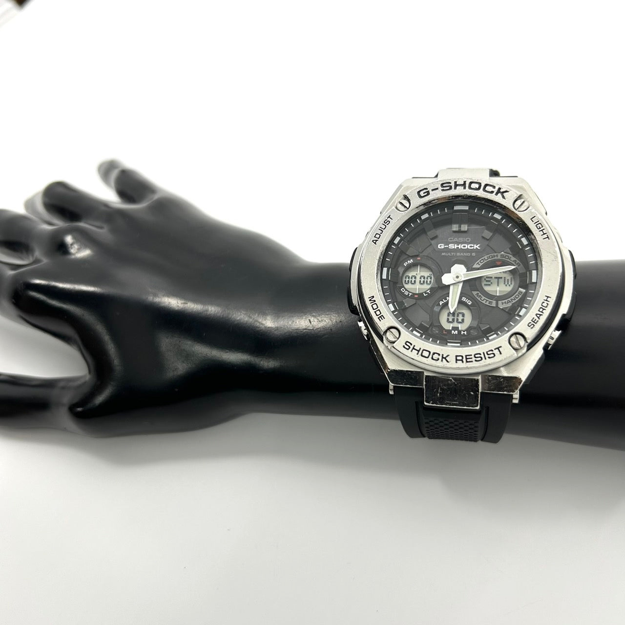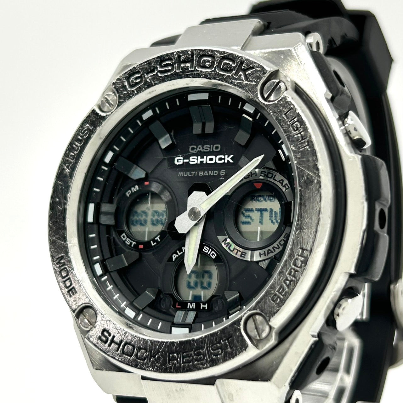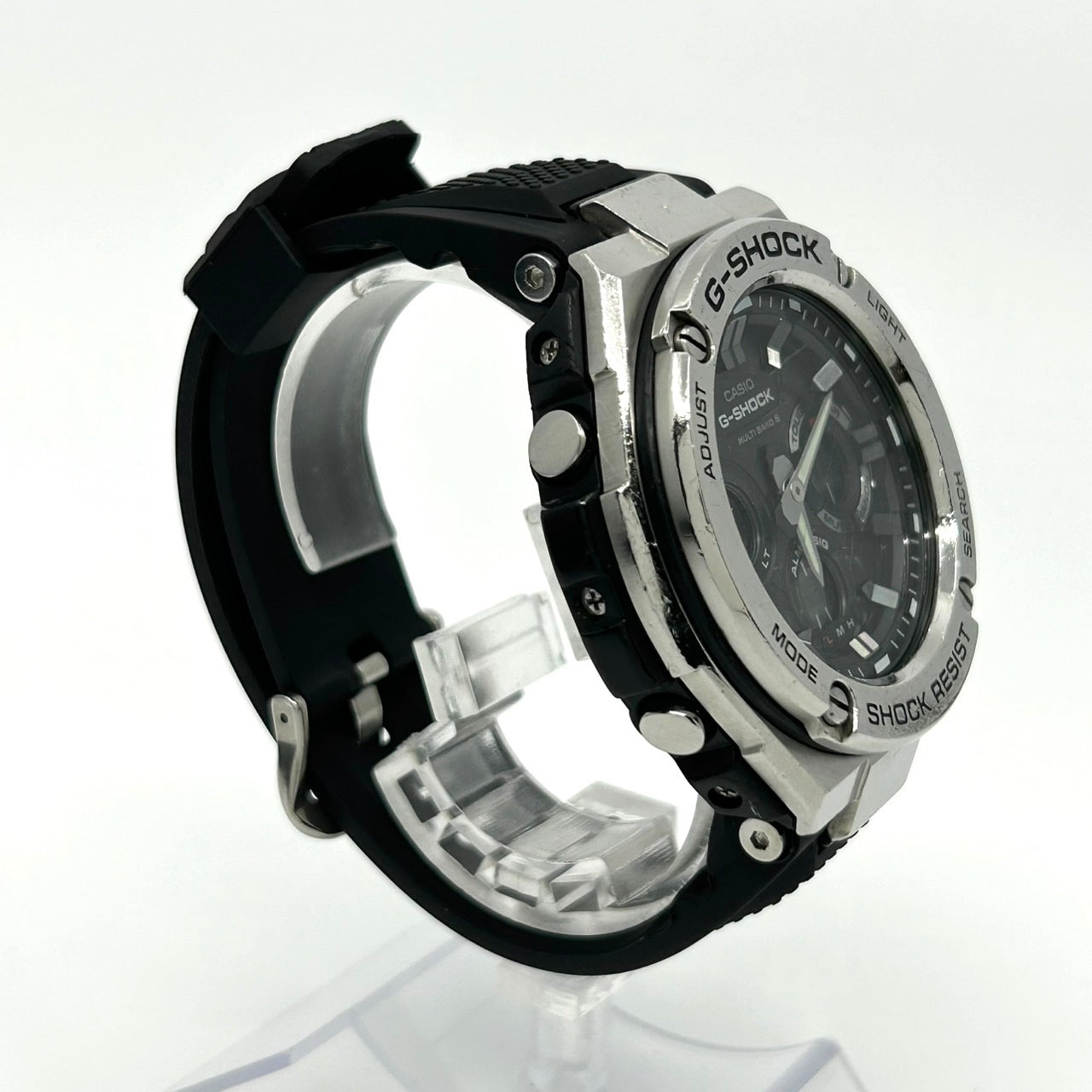 【稼働品】カシオ Gショック Gスチール 腕時計 GST-W110 メンズ タフソーラー 電波ソーラー デジアナ MULTI BAND 6 ブラック シルバー ラバーベルト ラウンド 高機能 耐衝撃構造 ストリート アウトドア カジュアル クリーニング済 G3