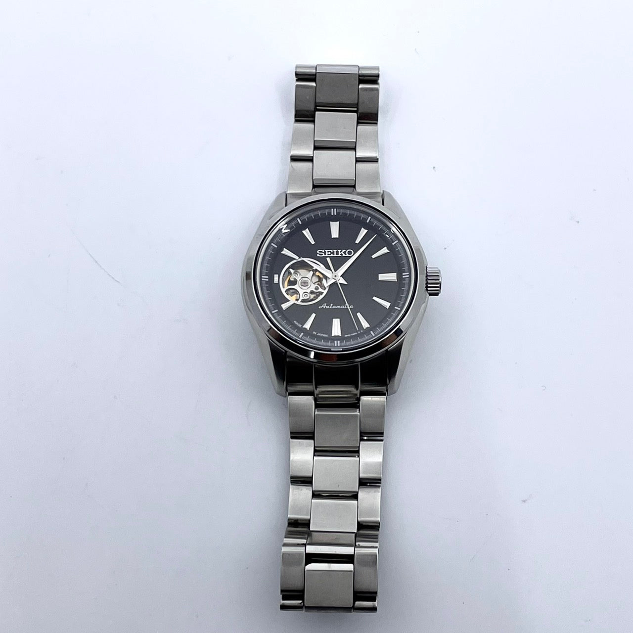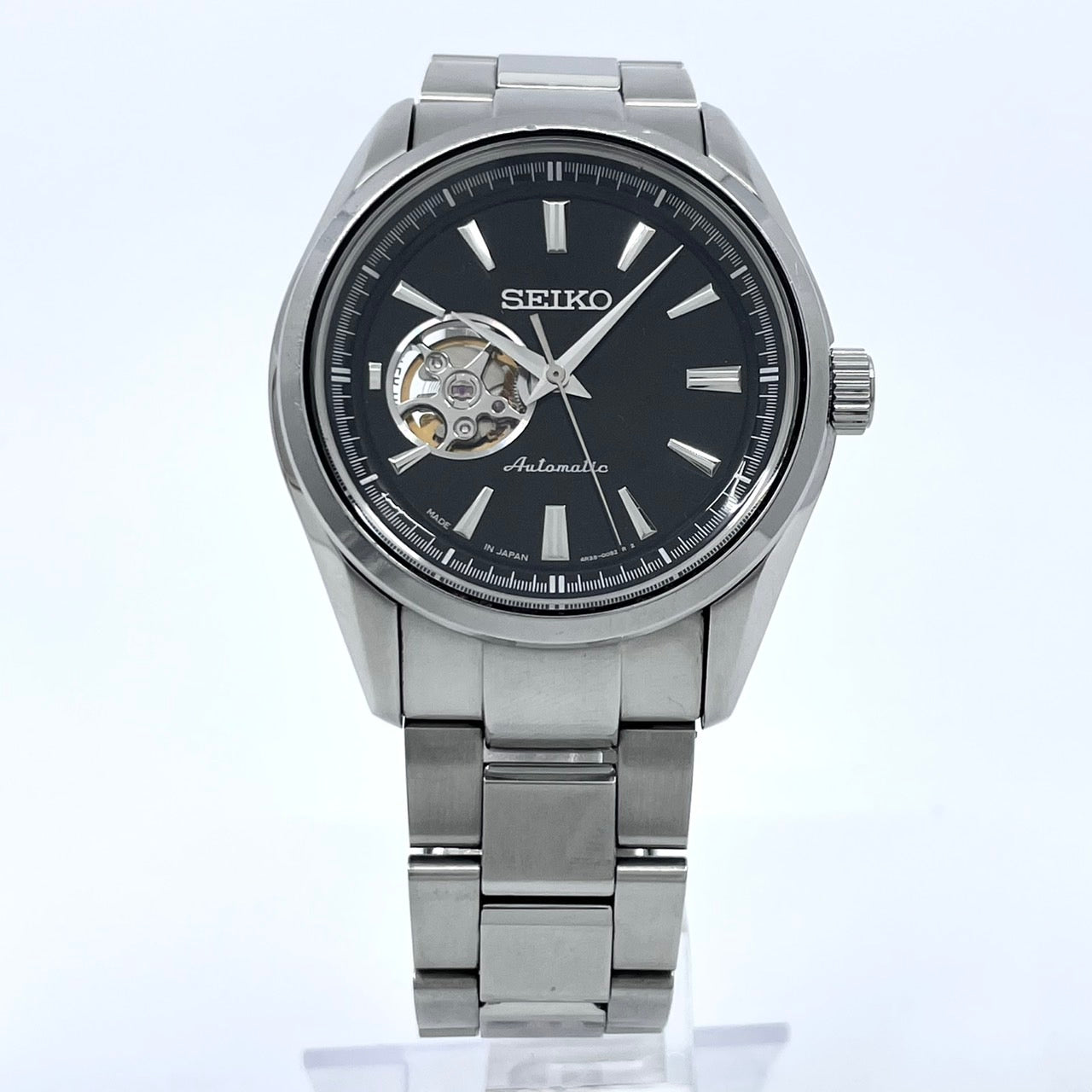 SEIKO セイコー プレサージュ メカニカル 4R38-00S0 メンズ 腕時計 自動巻き オープンハート スケルトン ブラック文字盤 シルバー ステンレススチール アナログ 裏スケ シースルーバック ドレスウォッチ ビジネス G4