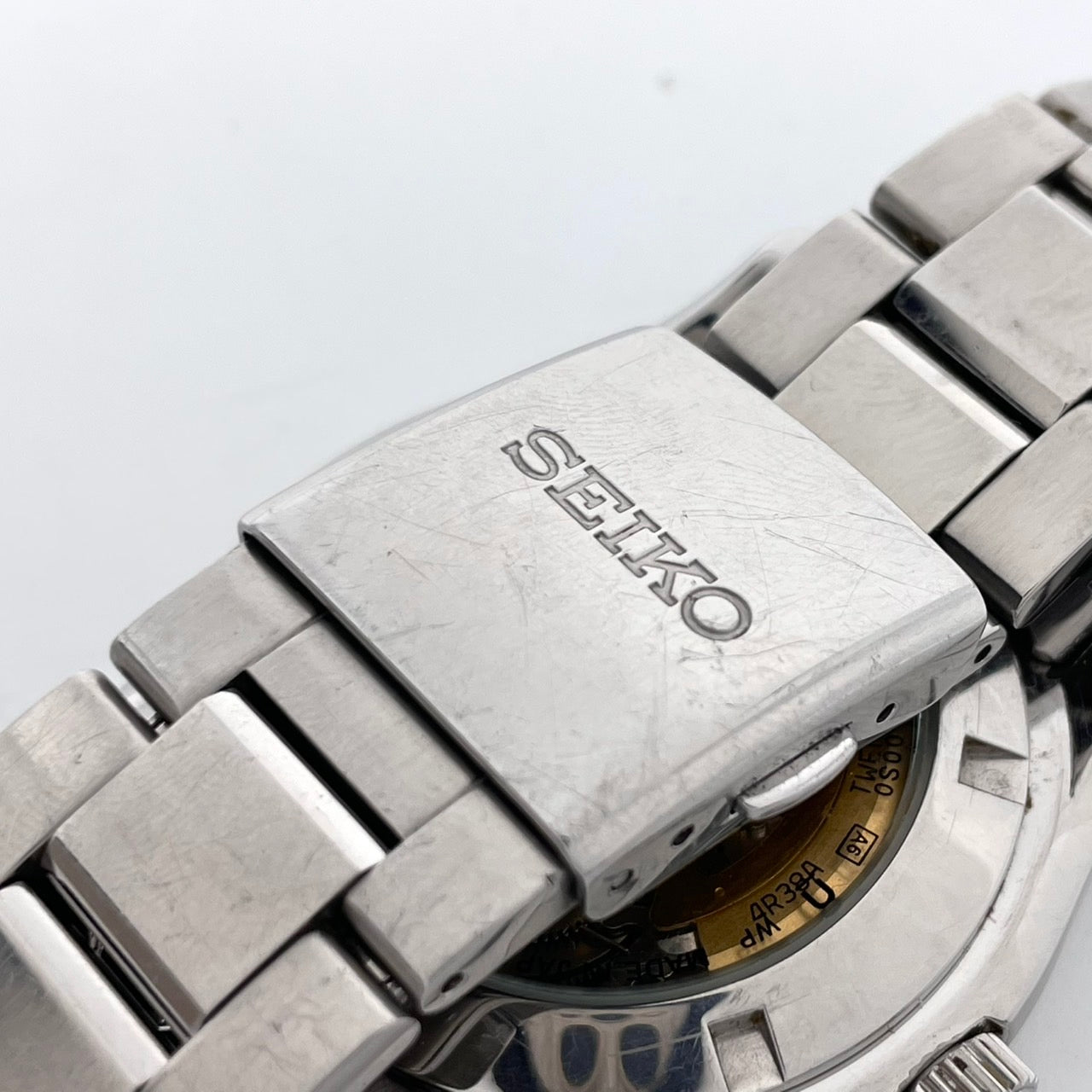| 商品説明 | SEIKO(セイコー)のプレサージュシリーズ、メカニカルモデル「4R38-00S0」自動巻き腕時計。9時位置に配置されたオープンハートから精巧なムーブメントの動きを堪能できるスケルトン仕様で、機械式時計の魅力を存分に楽しめます。裏蓋はシースルーバックとなっており、両面からムーブメントを眺められる設計です。 ブラック文字盤にシルバーのインデックスと針が映えるデザインは、モダンかつエレガントな雰囲気を演出。ラウンド型のケースはクラシックな印象を持ちつつ、ビジネスからドレスシーンまで幅広く対応できるスタイル性を備えています。ステンレススチールのケースとブレスレットが、耐久性と高級感を両立しています。 本モデルは日本の精密技術が詰まった自動巻きキャリバー「4R38」を搭載し、24石のメカニカルムーブメントならではの確かな精度と信頼性を誇ります。クリーニング済みで稼働状態にあり、日常使いから特別な場面まで安心してご使用いただける一本です。 ・ブランド:SEIKO(セイコー) ・シリーズ:プレサージュ(Presage) ・モデル:4R38-00S0 ・ムーブメント:自動巻き(Automatic/24 Jewels) ・ケース形状:ラウンド ・ケースカラー:シルバー ・文字盤カラー:ブラック ・素材:ステンレススチール ・仕様:オープンハート/スケルトン/シースルーバック/アナログ表示 ・状態:稼働品/クリーニング済み 洗練されたデザインとメカニカルのロマンを兼ね備えた逸品で、時計愛好家やビジネスマンにおすすめのモデルです。 |
