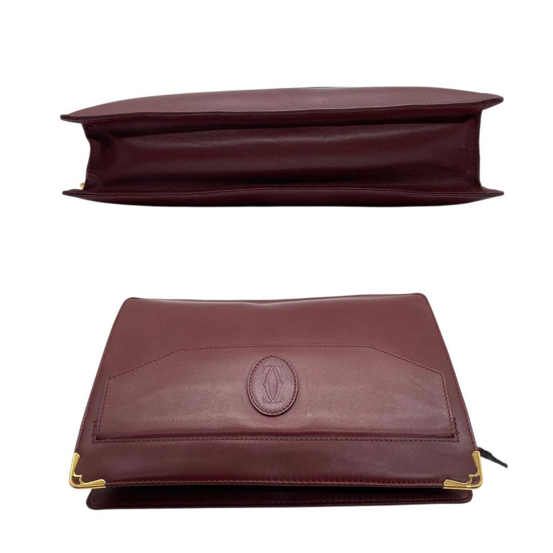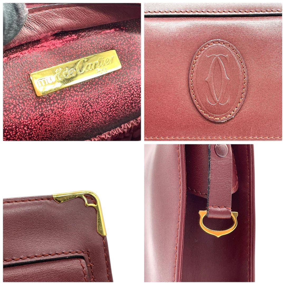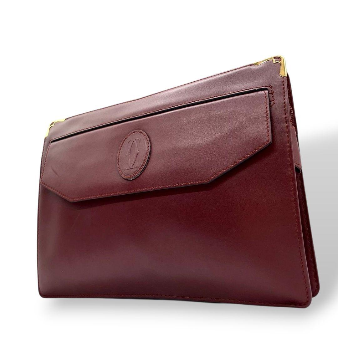 カルティエ セカンドバッグ ワインレッド 赤 レッド マストライン ロゴ フラップ クラッチバッグ レザー 本革 ゴールド金具 ロゴプレート Cartier 高級感 上品 通勤 通学