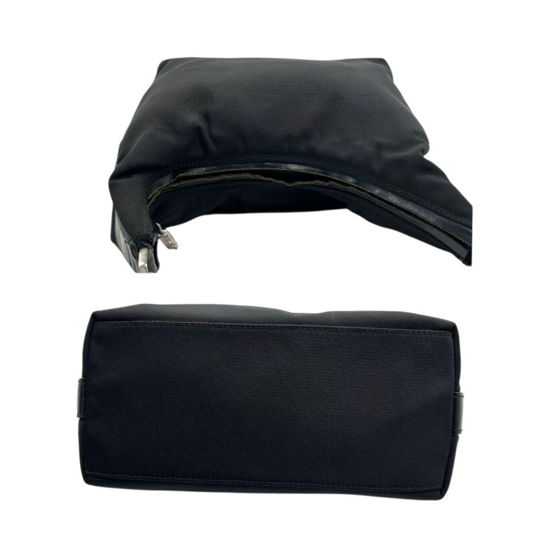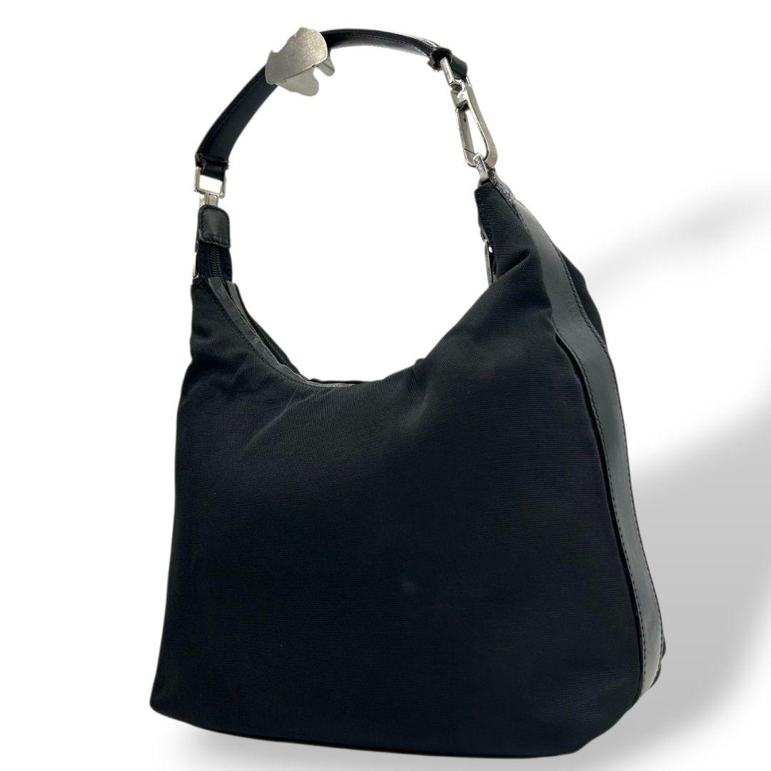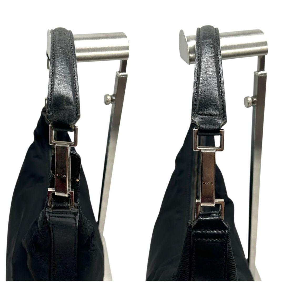 グッチ ハンドバッグ 黒 ワンショルダー ナイロン レザー GUCCI トートバッグ 自立可 肩掛け可 ブラック 本革 シルバー金具 0013766 002058