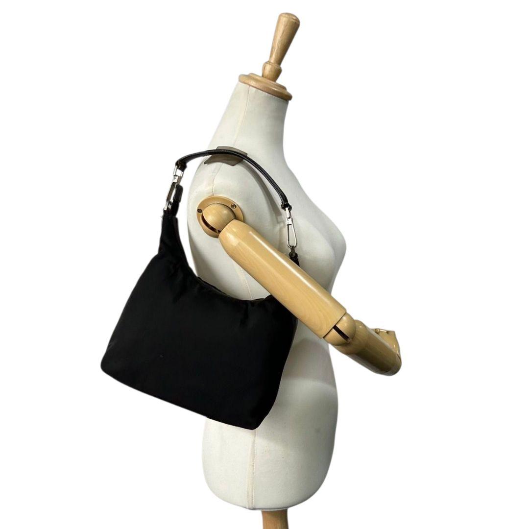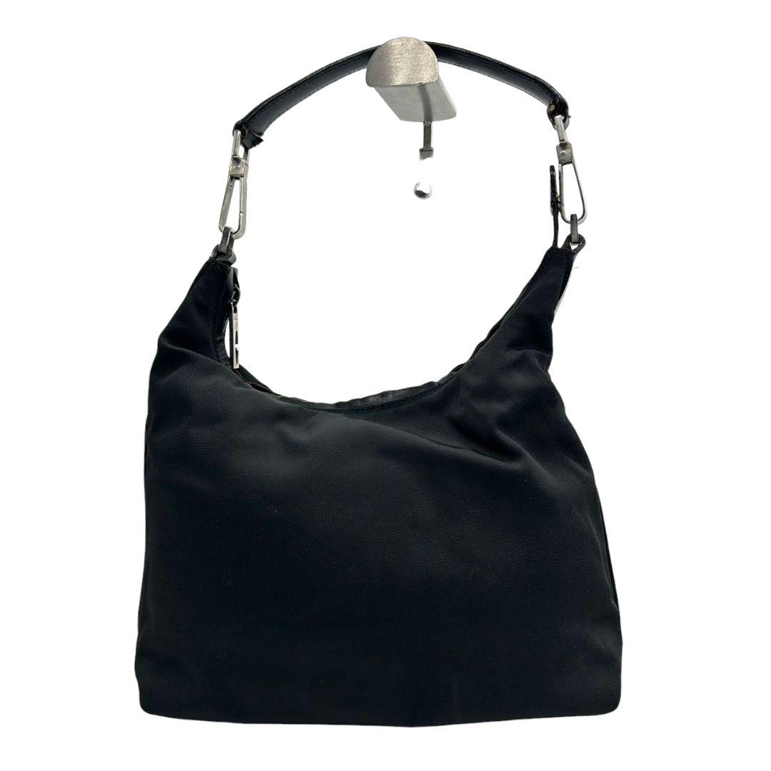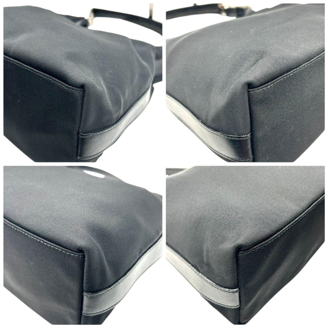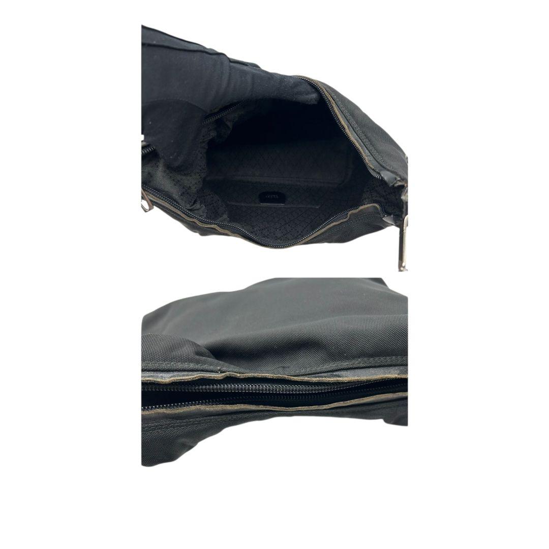 グッチ ハンドバッグ 黒 ワンショルダー ナイロン レザー GUCCI トートバッグ 自立可 肩掛け可 ブラック 本革 シルバー金具 0013766 002058