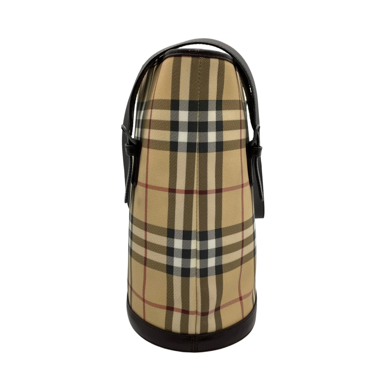 美品 BURBERRY バーバリー ノバチェック バケツ型 ショルダーバッグ トートバッグ PVC レザー ベージュ レッド ダークブラウン メンズ レディース 肩掛け C3