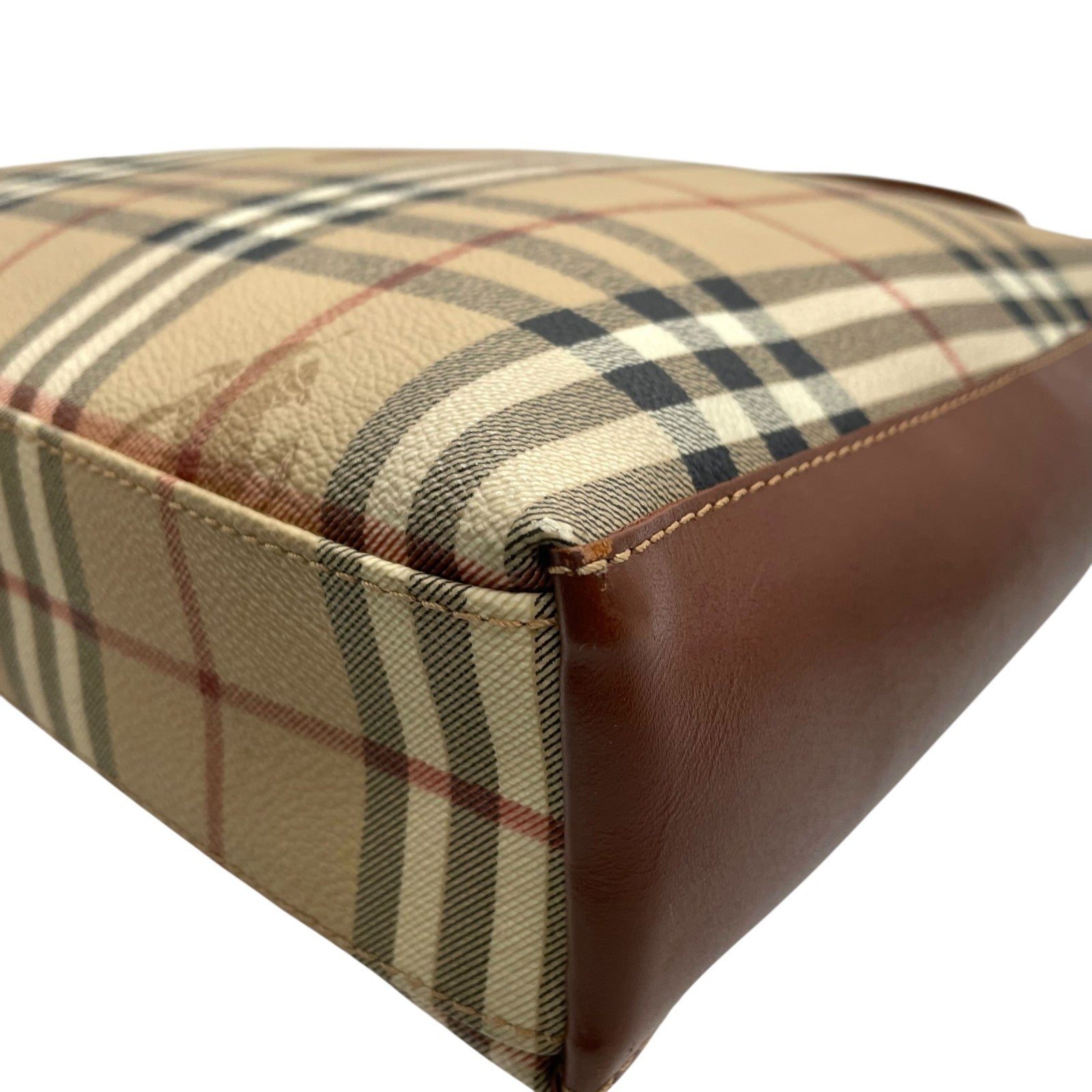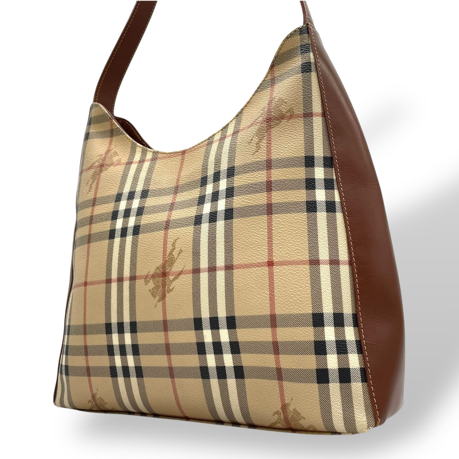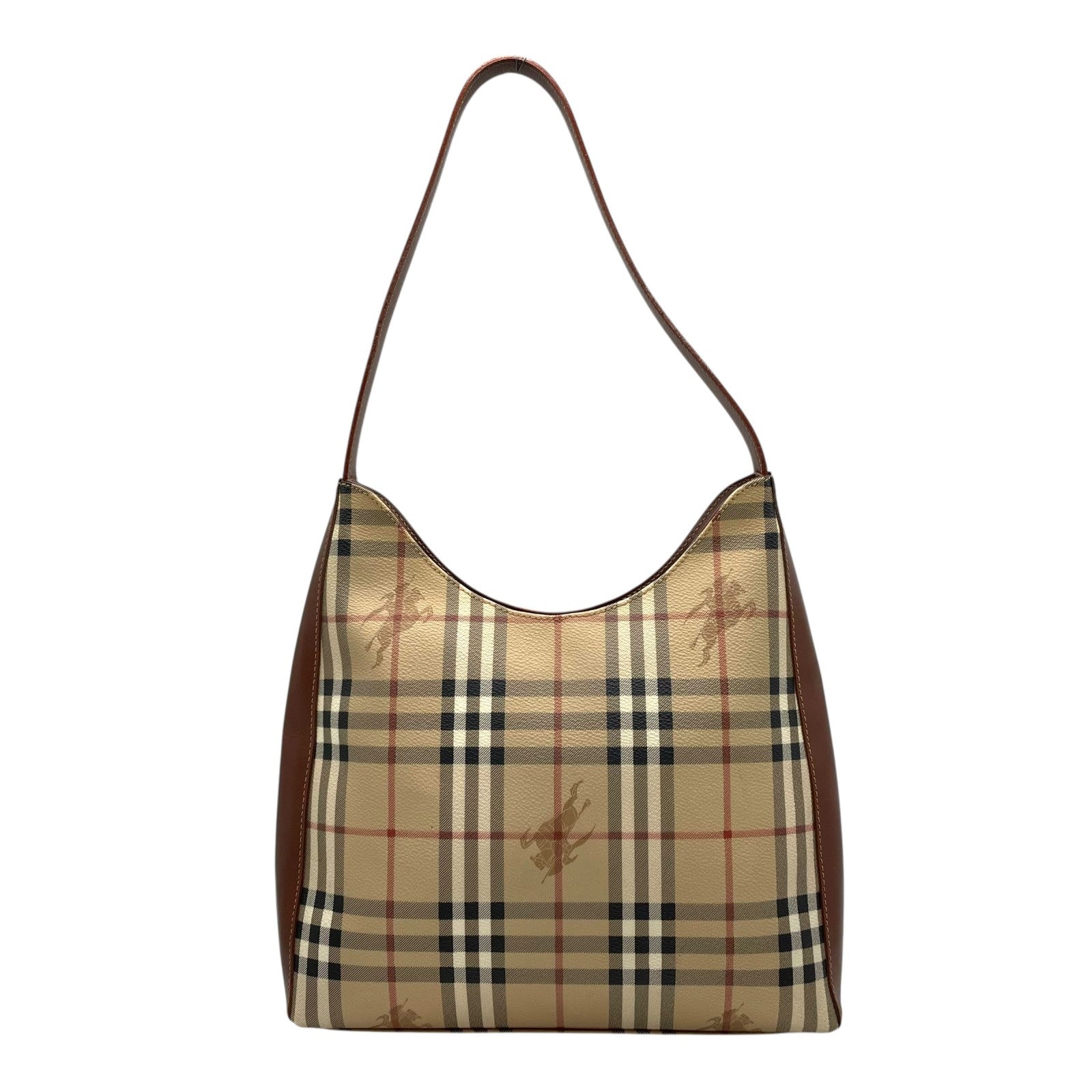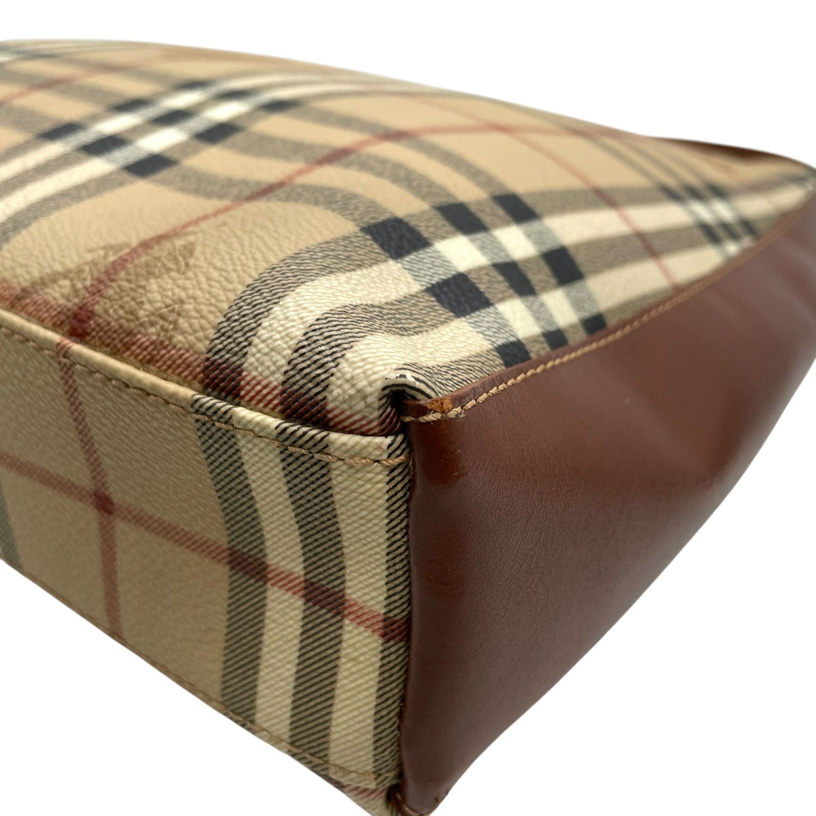 美品 BURBERRY バーバリー ノバチェック シャドーホース ワンショルダーバッグ ショルダーバッグ PVC×レザー ブラウン ヴィンテージ ゴールド金具 肩掛け C7