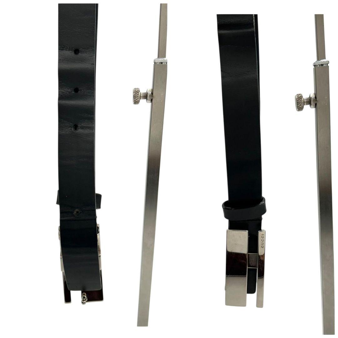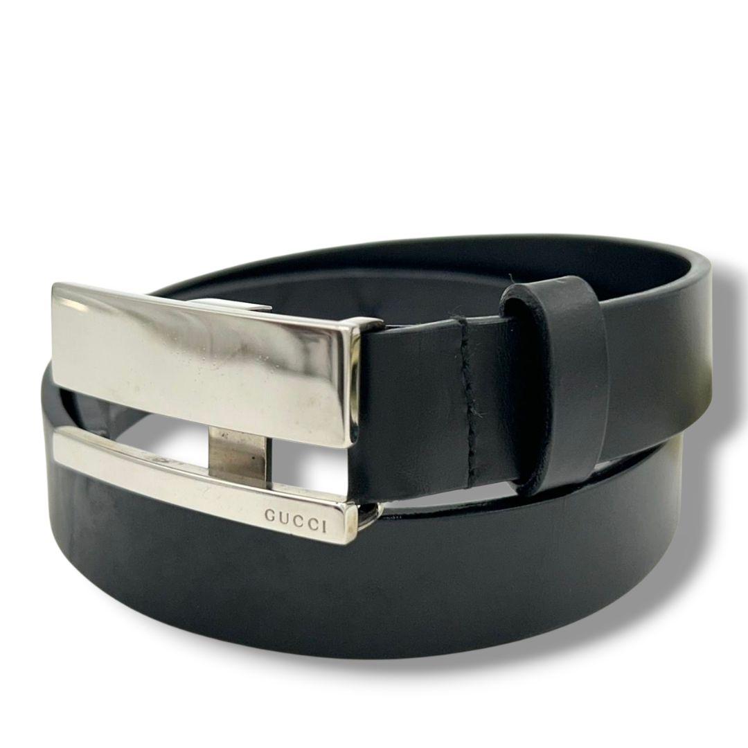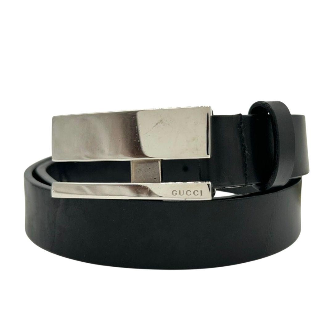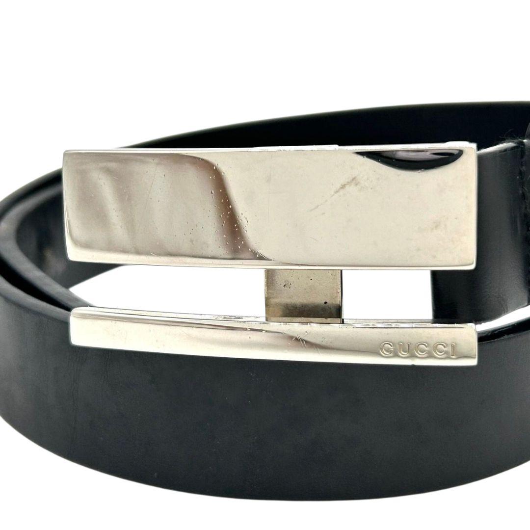 グッチ ベルト 黒 ブラック ロゴプレート PX-3 レザー 本革 シルバー金具 高級 ブランド メンズ 036-1766-1391 GUCCI
