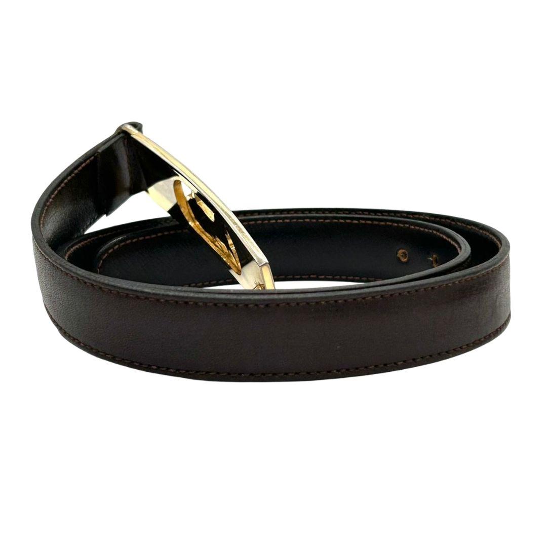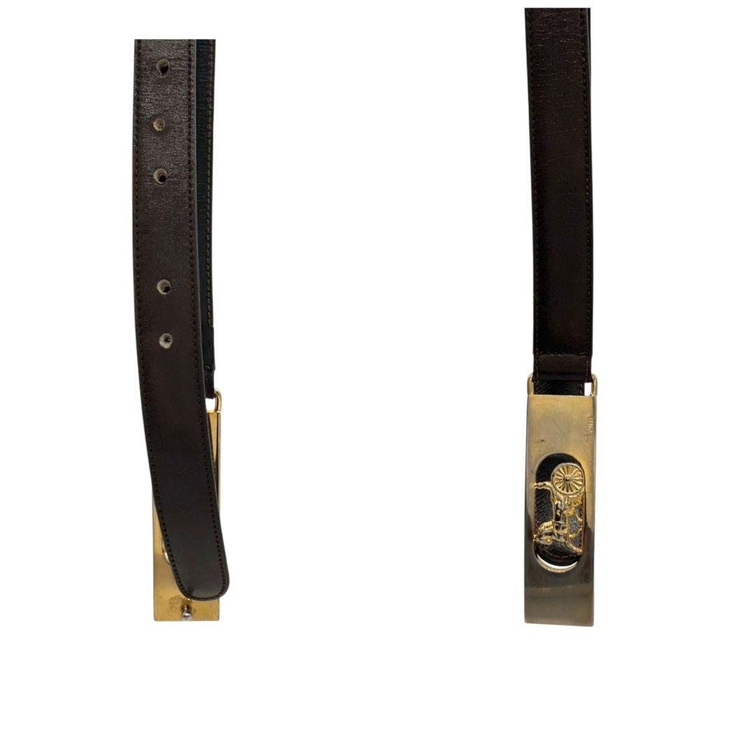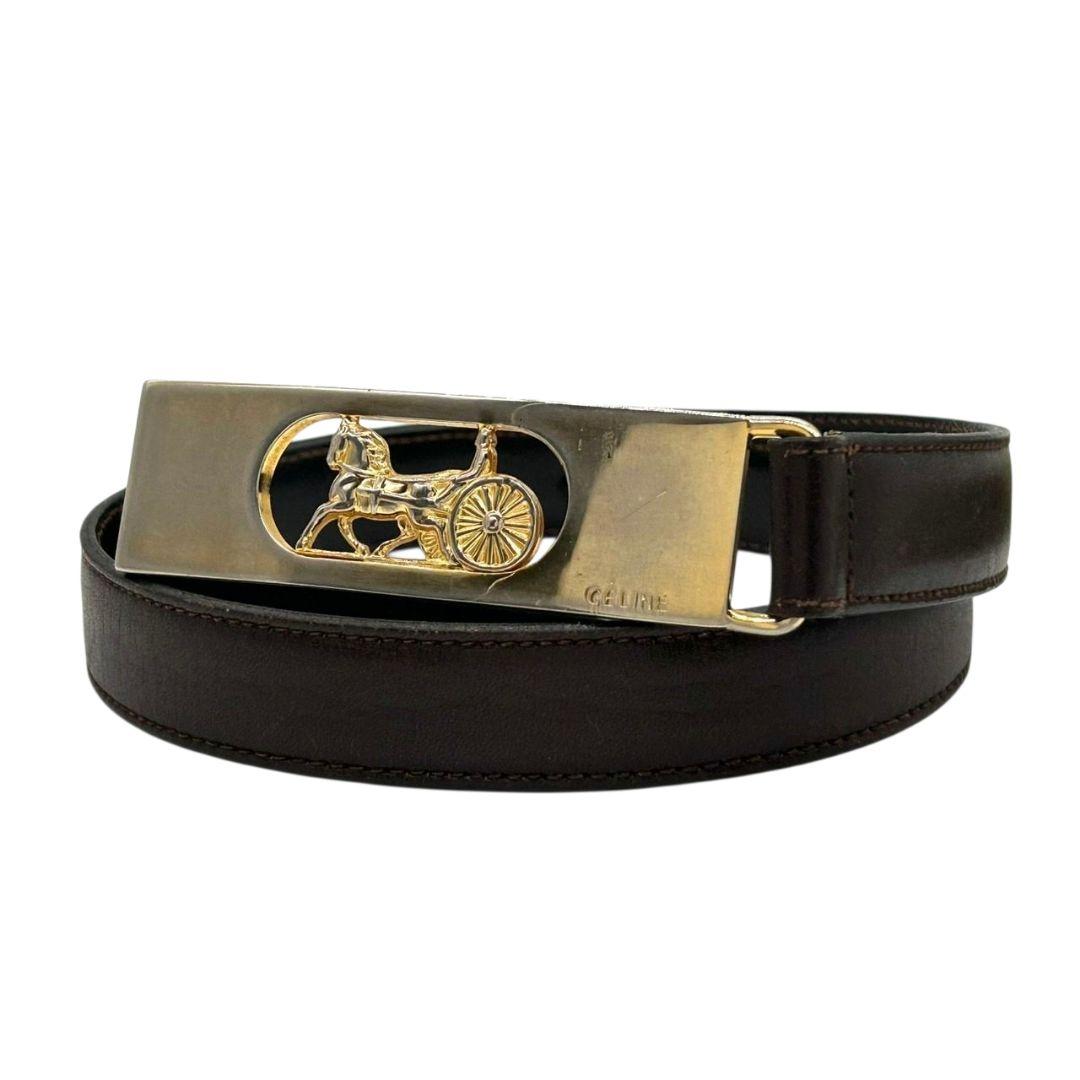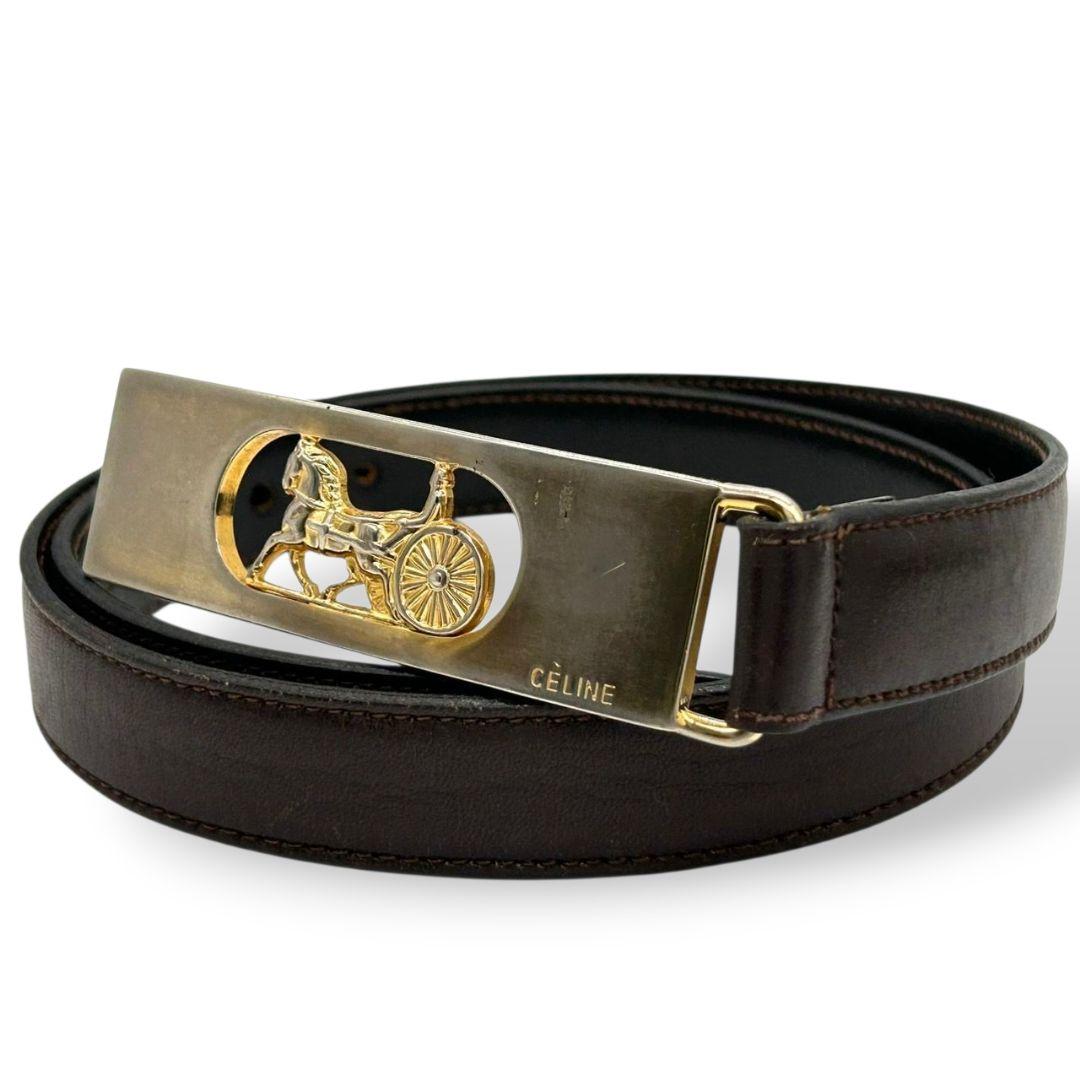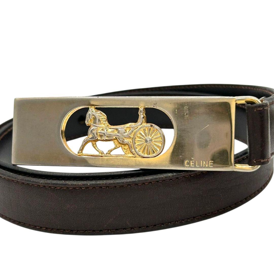 セリーヌ ベルト 茶 ブラウン サルキー 馬車金具 PX-2 レザー 本革 ゴールド金具 ロゴ 高級 ブランド レディース メンズ CELINE