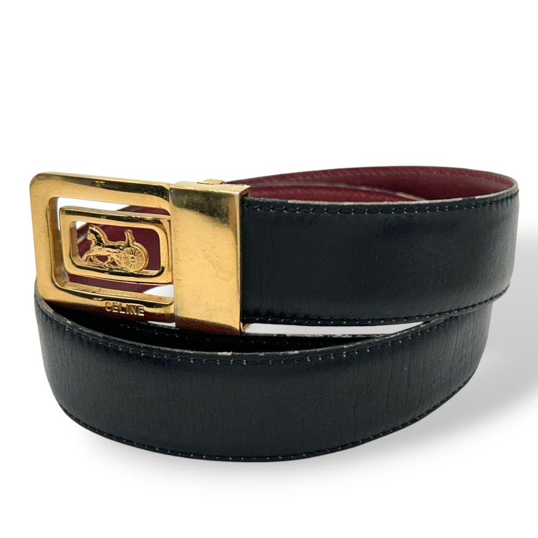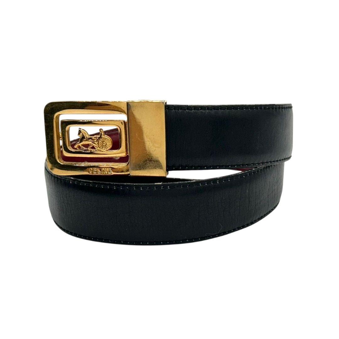 セリーヌ ベルト 黒 ブラック 赤 レッド サルキー 馬車金具 PX-2 レザー 本革 ゴールド金具 ロゴ 高級 ブランド CELINE