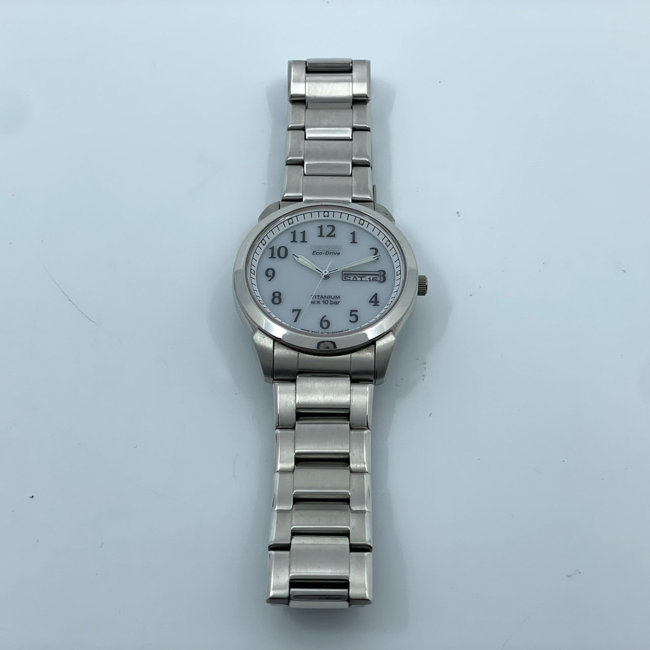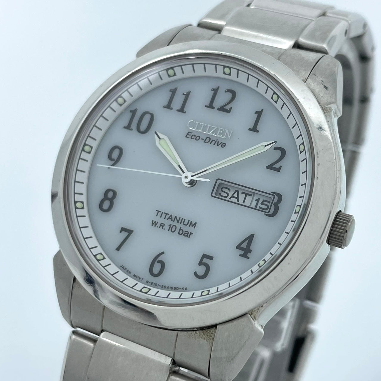【稼働品/未使用級】シチズン 腕時計 GN-4W-S エコドライブ チタン メンズ アナログ デイデイト カレンダー 白文字盤 シルバー シンプル ビジネス カジュアル 軽量 高視認性 W.R. 10 BAR クリーニング済み G5
