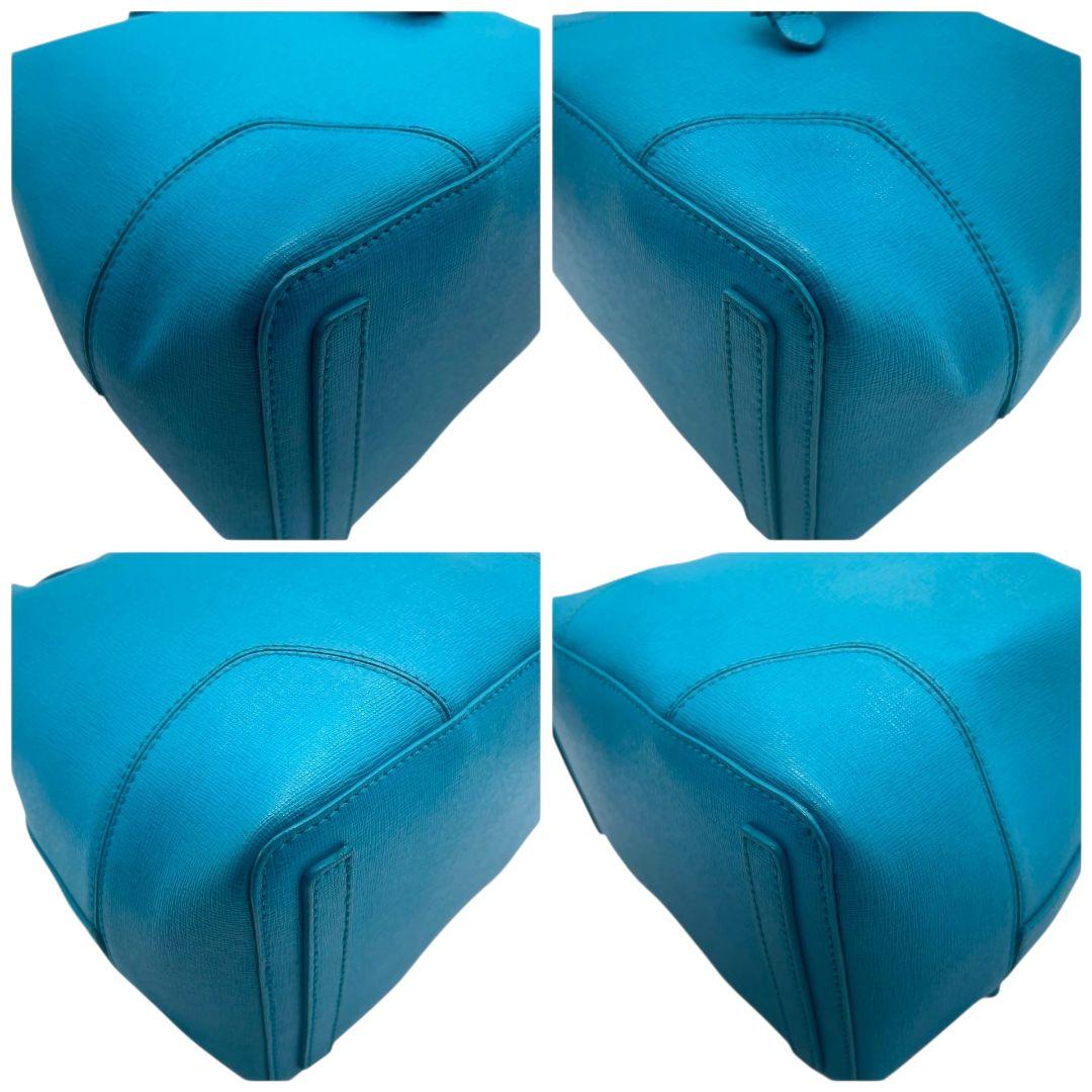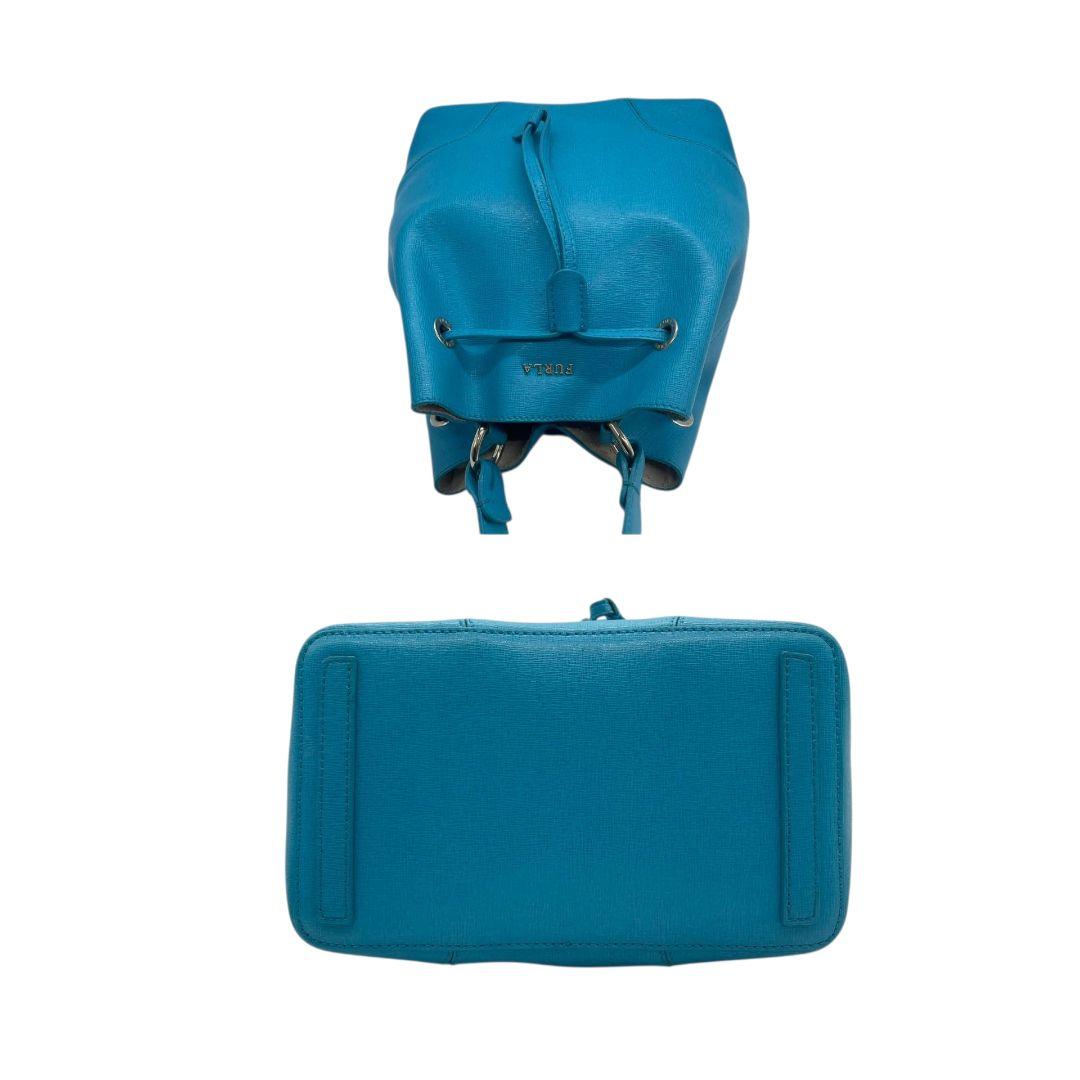 FURLA フルラ ショルダーバッグ バケツ型 巾着 2way 斜め掛け可 レザー 本革 ブルー系 ゴールド金具 ロゴ ハンドバッグ トート u14