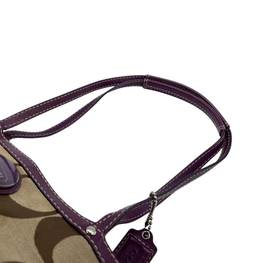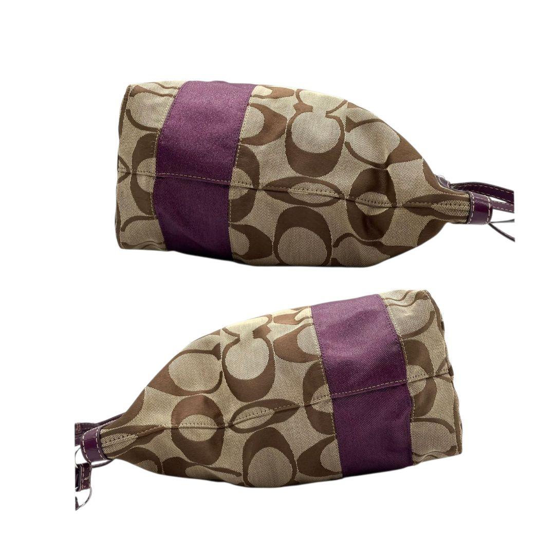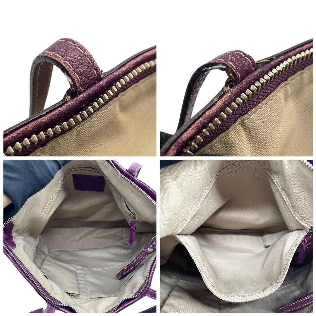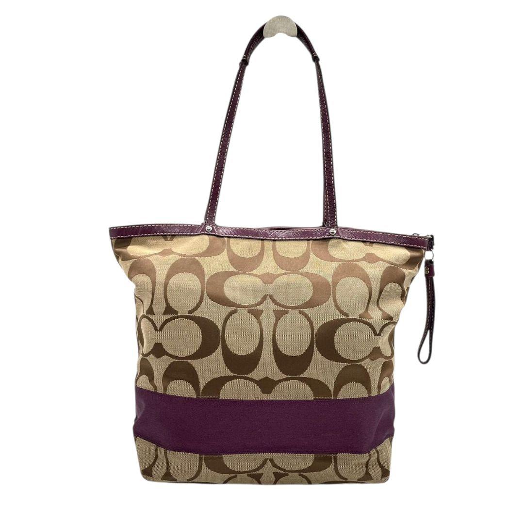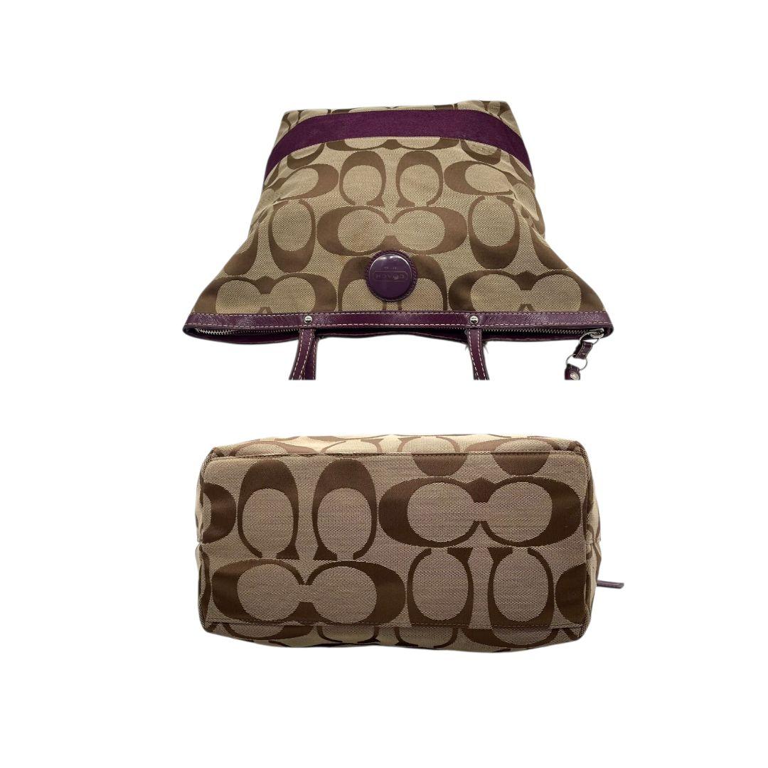 コーチ トートバッグ 茶 ブラウン パープル シグネチャー ワンショル A4収納可 ハンドバッグ キャンバス レザー 本革 肩掛け可 シルバー金具 ロゴタグ ロゴプレート COACH F15110