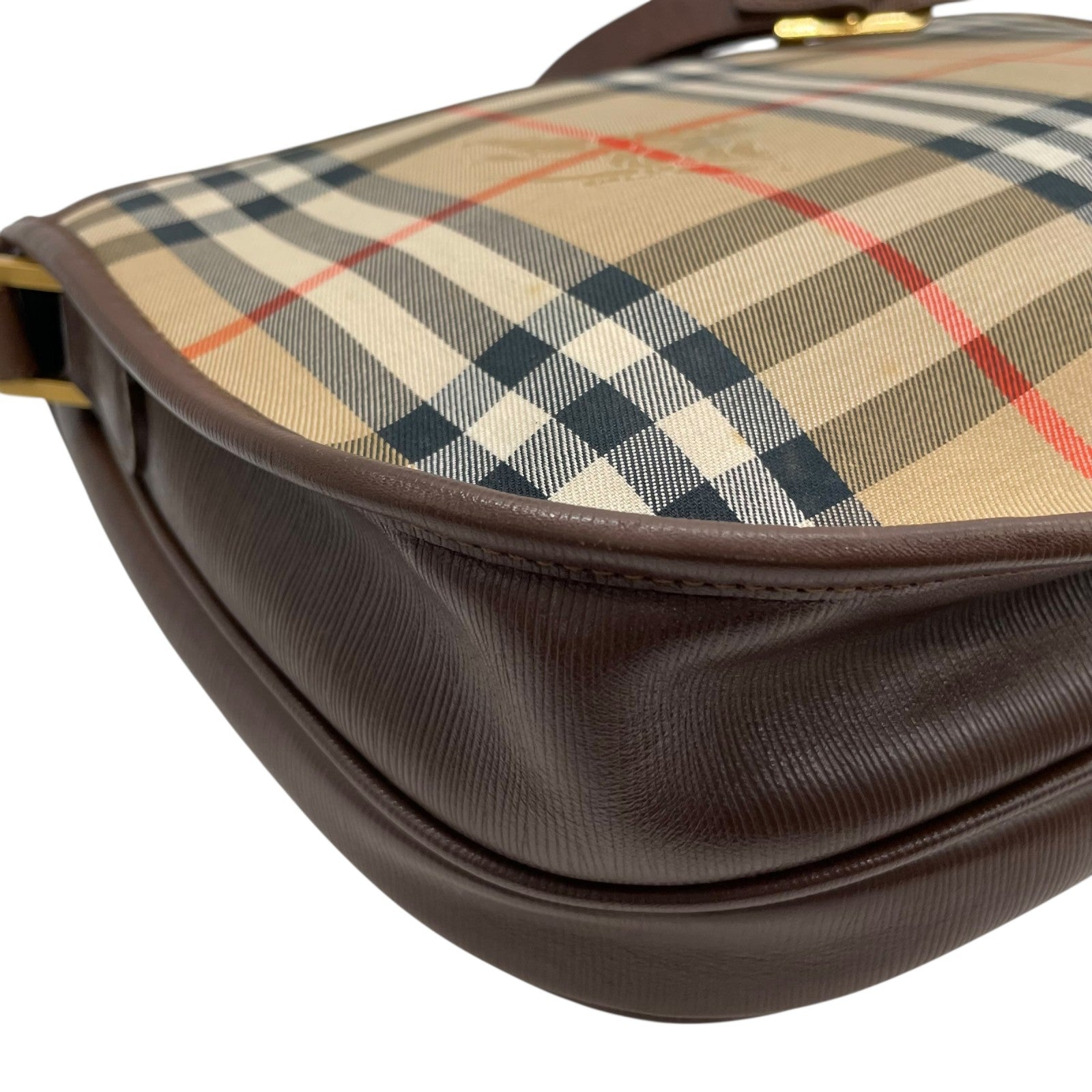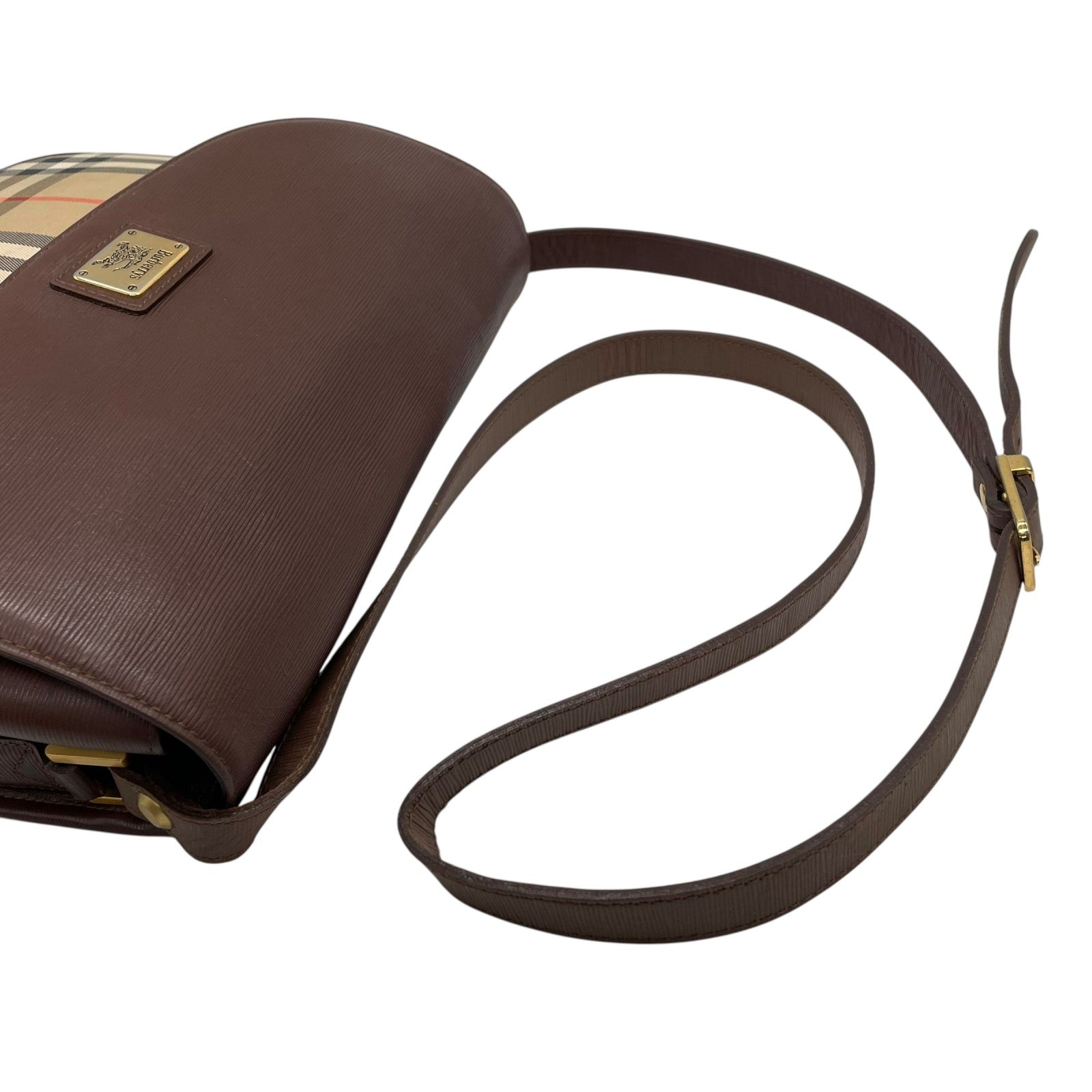 BURBERRY バーバリー ショルダーバッグ ノバチェック シャドーホース ホースロゴ 茶 ブラウン ベージュ キャンバス レザー ゴールド金具 ポシェット 斜め掛け可 ヴィンテージ レディース K13