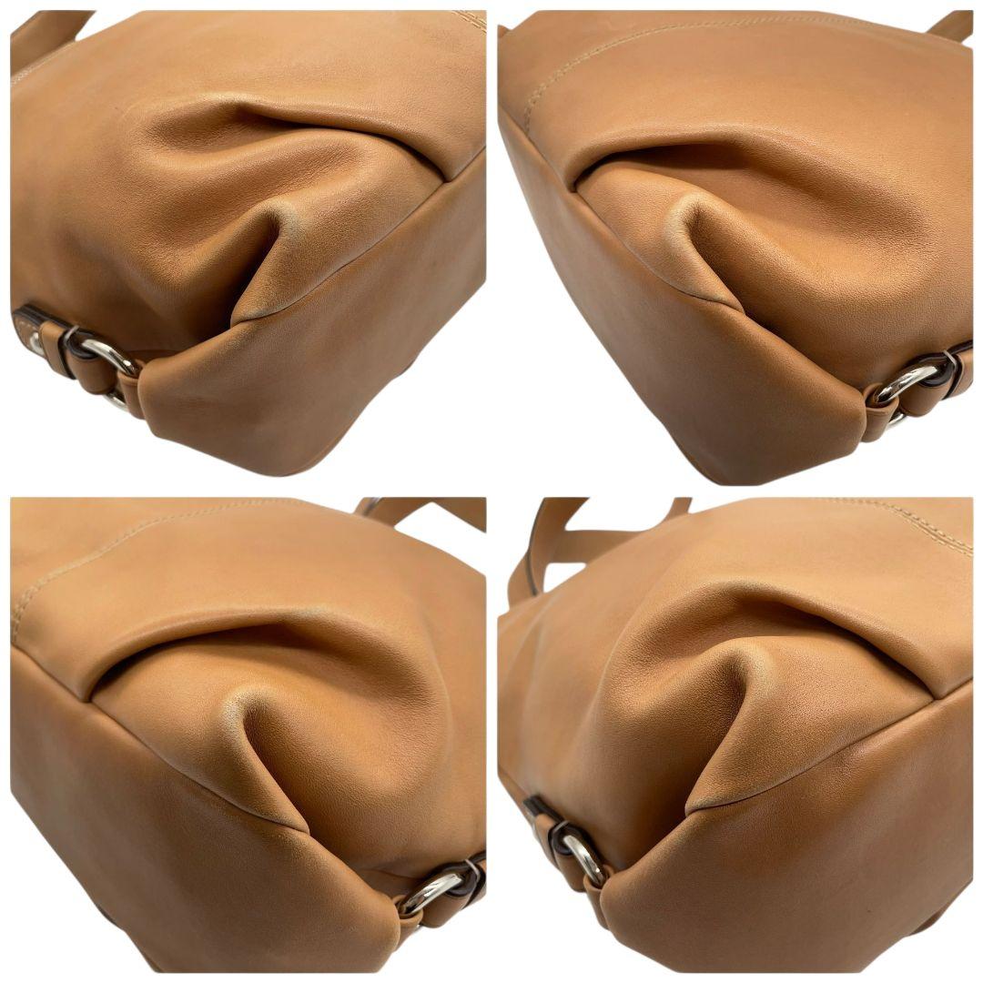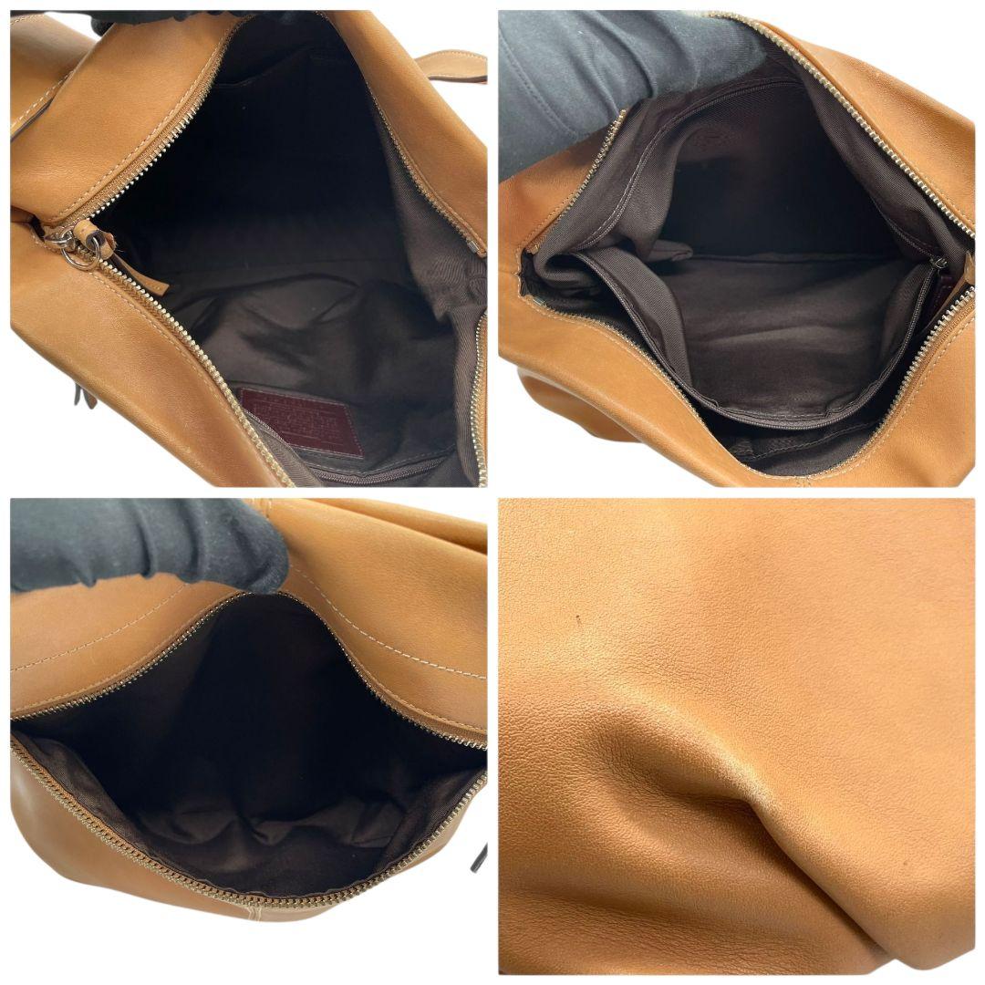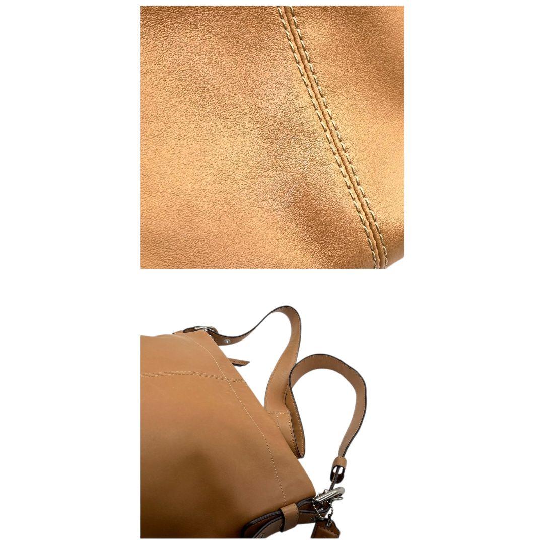 美品 コーチ ショルダーバッグ ベージュ レザー 本革 斜め掛け可 F15064 u11 ホーボー ロゴタグ シルバー金具 COACH シンプル 上品 デイリーユース