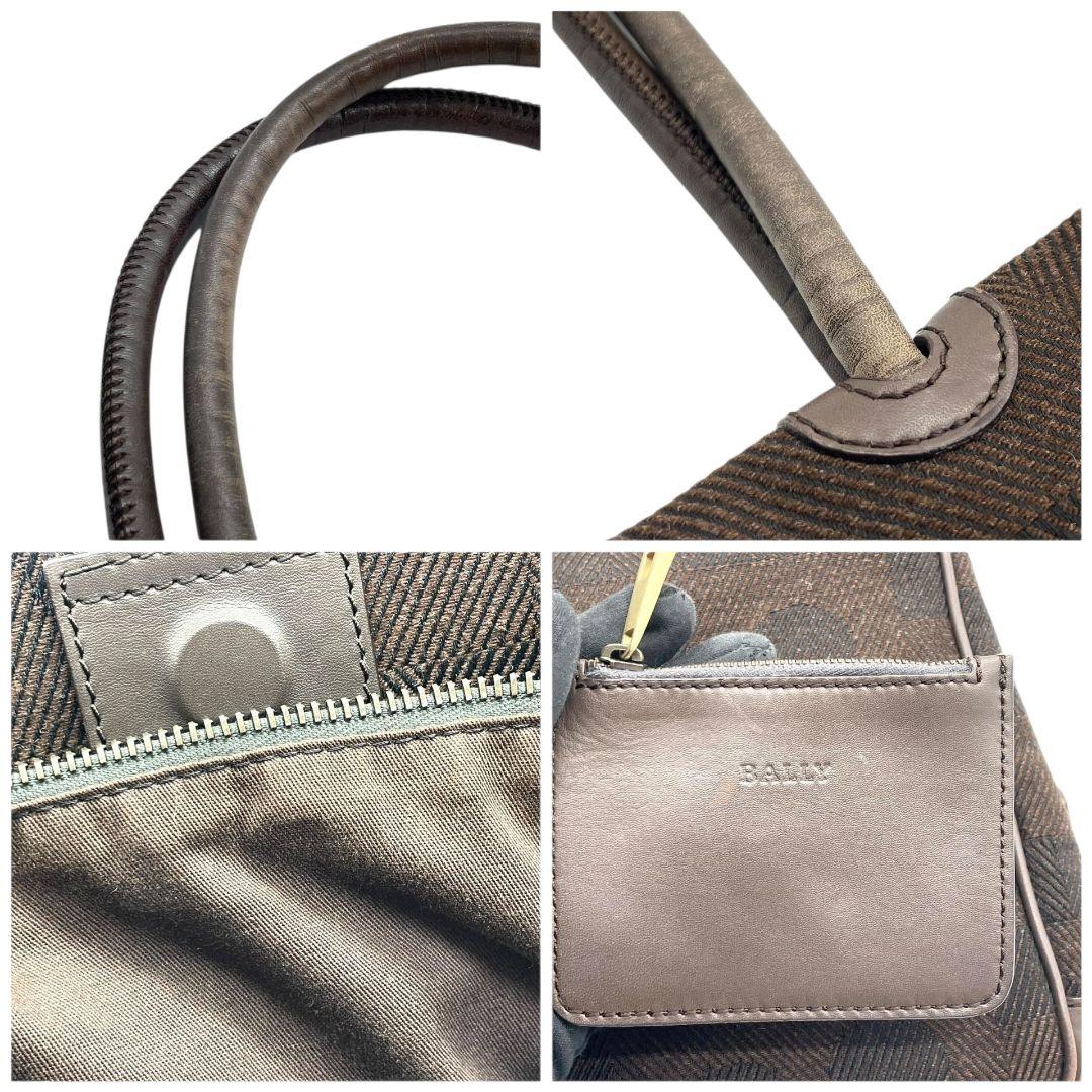 美品 バリー トートバッグ 茶 ブラウン ウール レザー 本革 ワンショル 肩掛け可 u11 ロゴ チャーム付き ゴールド金具 BALLY 上品 シンプル デイリーバッグ