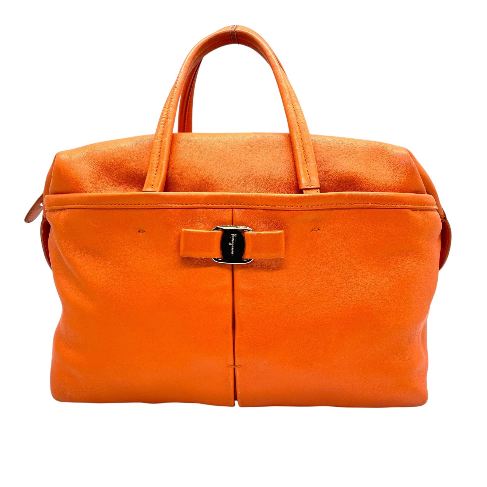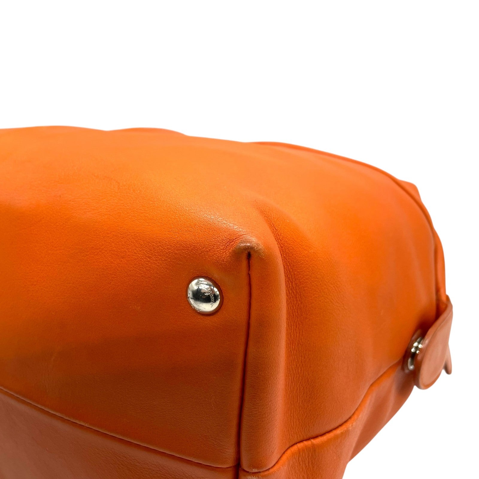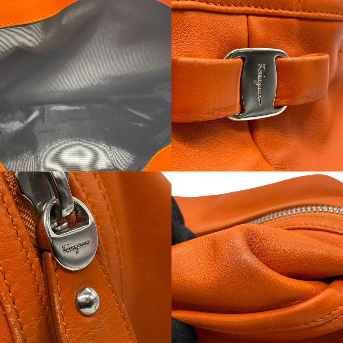 美品 Salvatore Ferragamo フェラガモ ヴァラリボン ハンドバッグ オレンジ レザー シルバー金具 レディース ヴィンテージ A